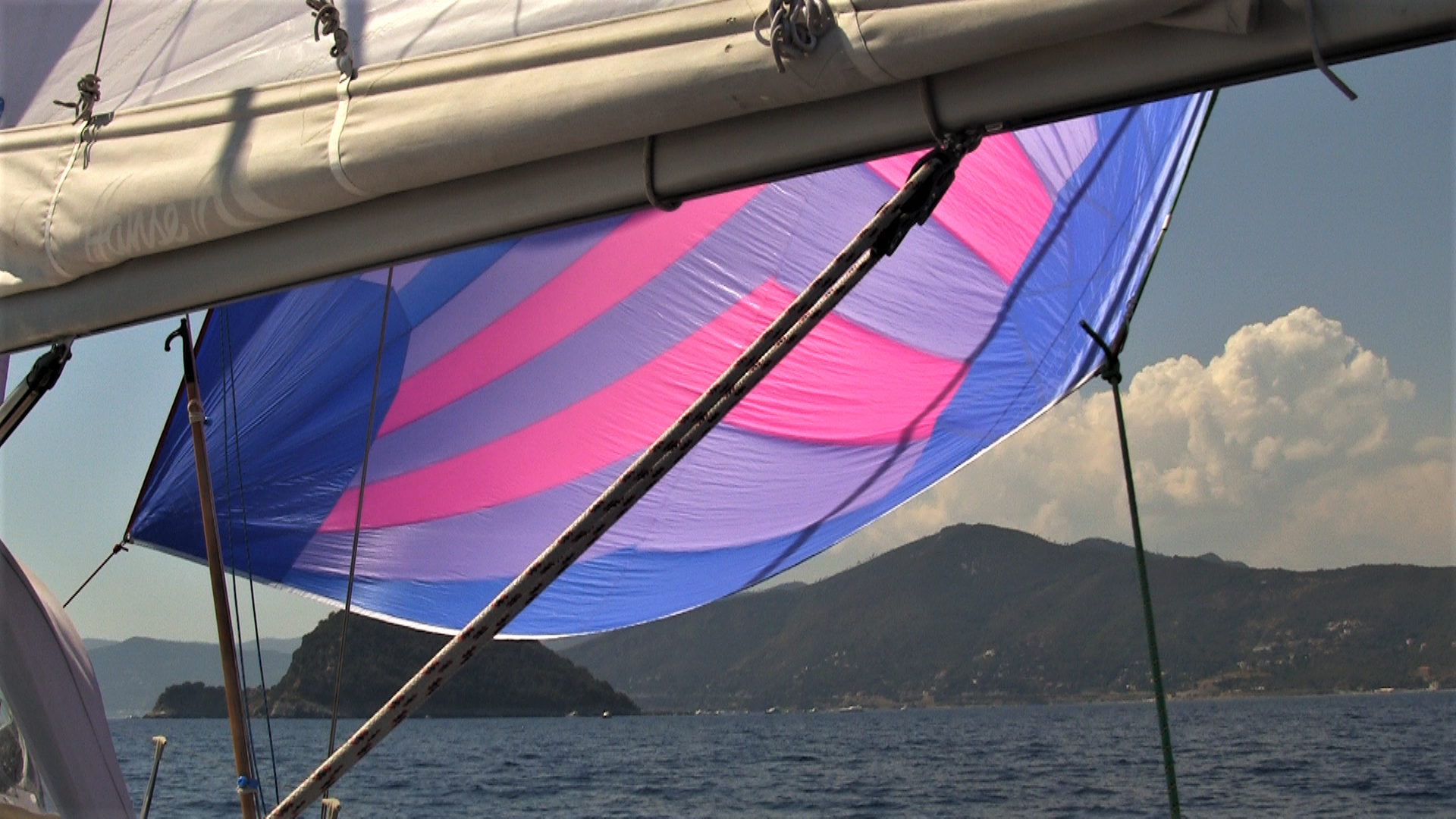Sous spi, en vue de l’îlot de GALLINARA, un peu devant ALASSIO !