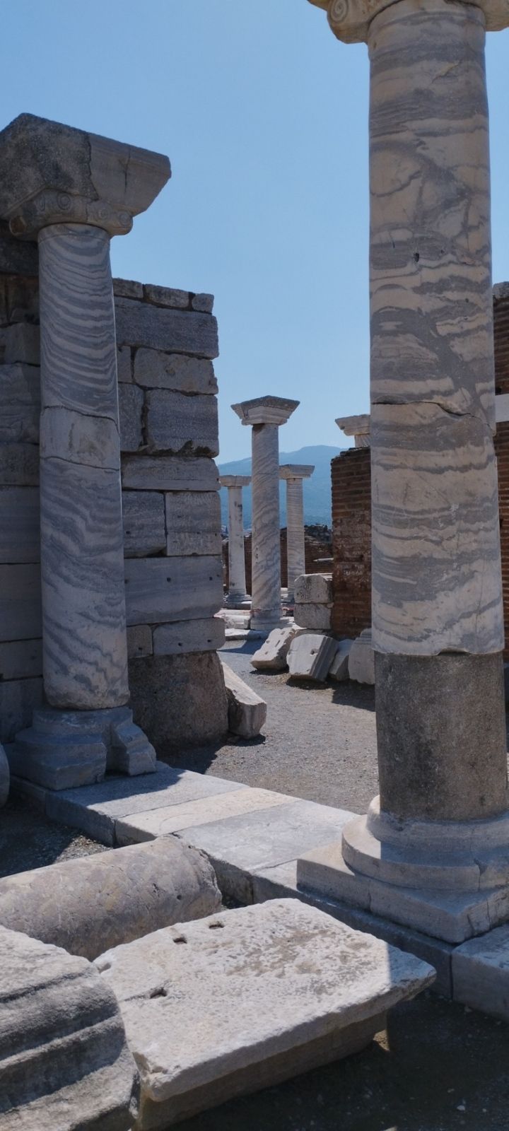 Après une courte lessive, on se trouve un endroit pour faire sécher le linge, avant de s’en faire dégager gentiment par la JANDARMA, parce qu’on campe dans le site d’ÉPHÈSE !