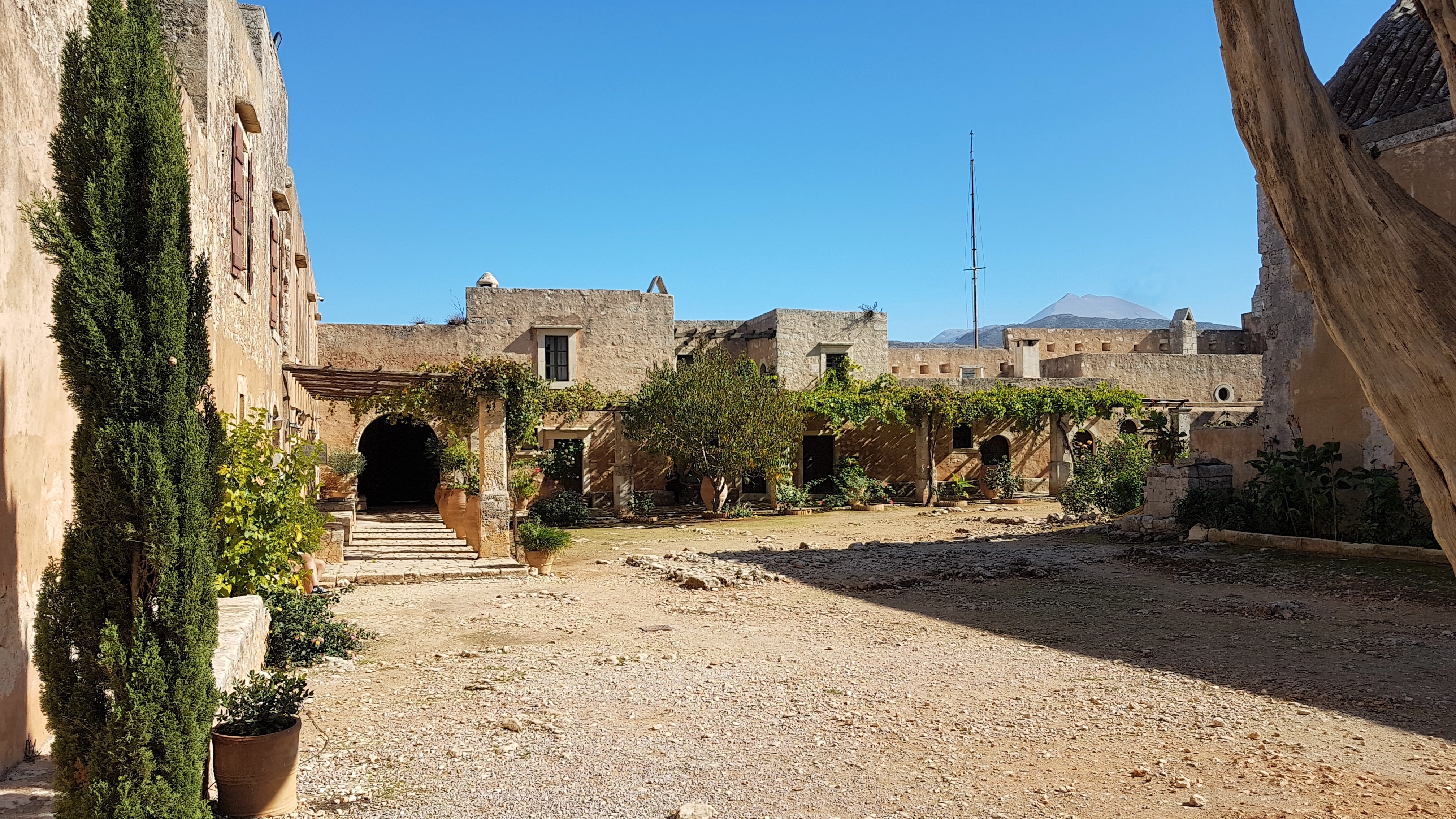 C'est un des très beaux monastères de la CRETE ! Et donc, pour une très rare fois, on a payé la visite ! Ce n'est pas faute d'avoir essayé d'en faire le tour pour trouver une entrée dérobée, ou de creuser un tunnel, ou d'y atterrir en delta plane, ou de se déguiser en pope, ou de prétendre être en visite officielle, ou de dire qu'on est des inspecteurs des impôts et qu'on vient voir si tout ici est bien catholique !!!