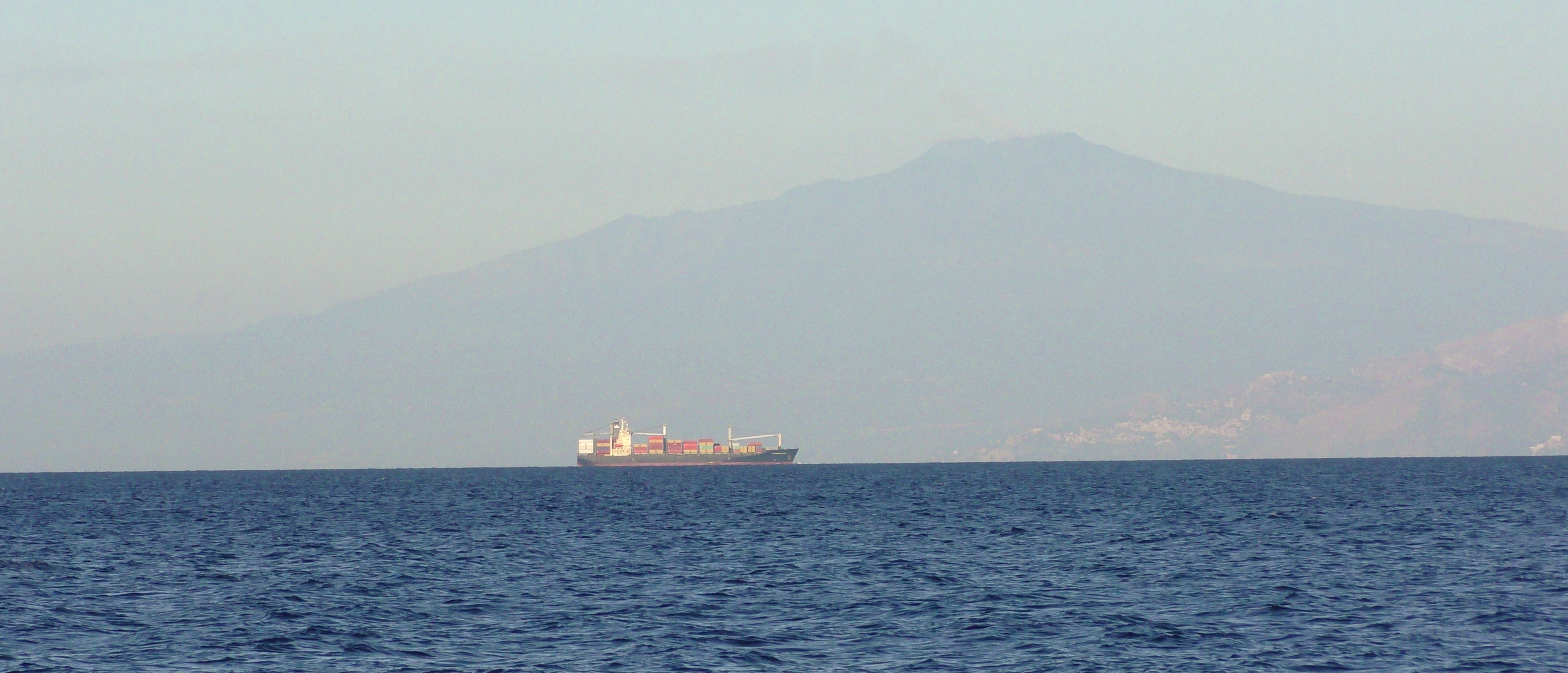 Il est 5h00 du mat', en entrant dans le détroit de MESSINE. L'ETNA fume !