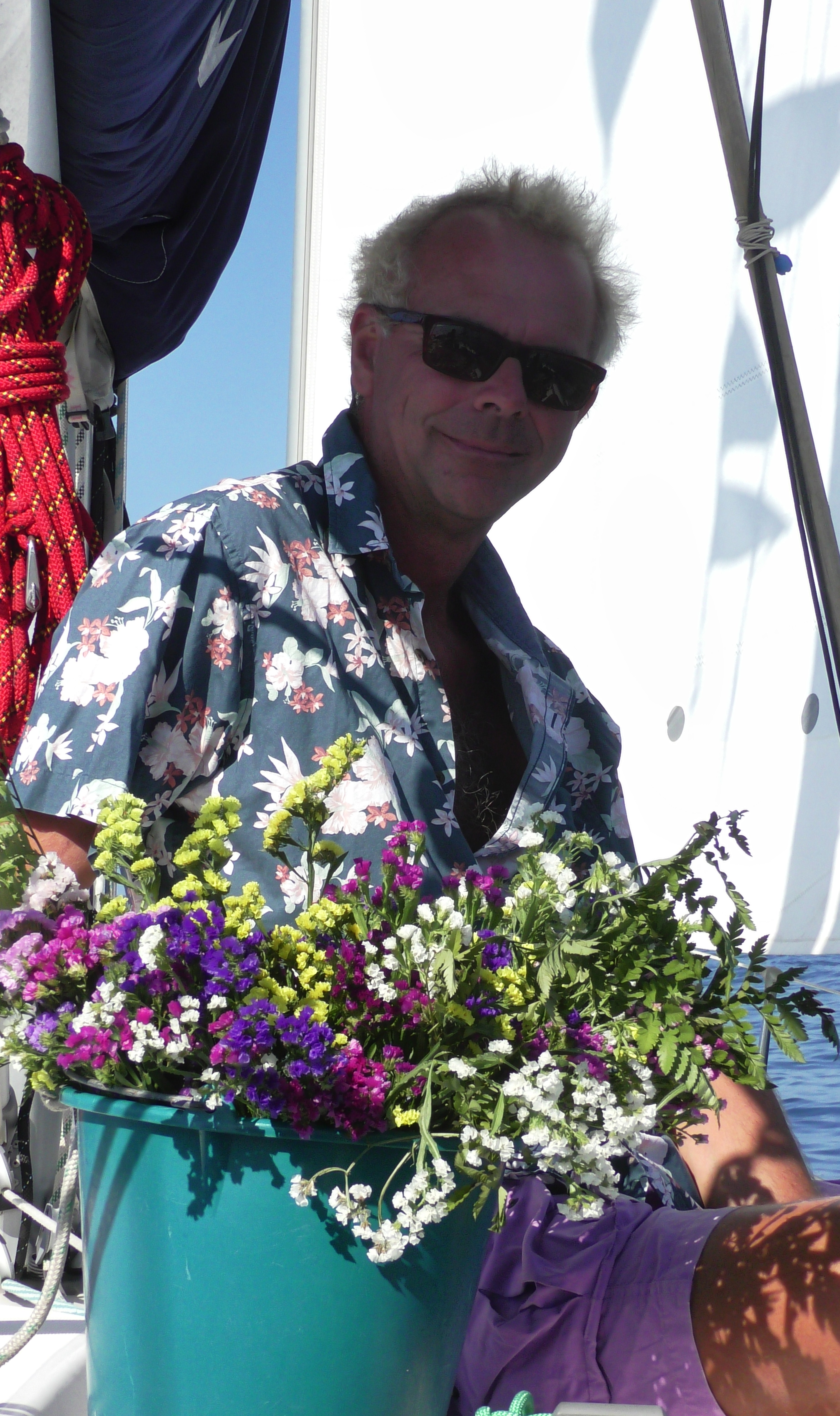 Offrandes de fleurs aux divinités !... Pour le vent qui ne nous a pas drossés à la côte. Pour la mer qui ne nous a pas fracassés contre les rochers. Pour les courants que ne nous ont pas poussés dans les bouches de SCYLLA et de CHARYBDE. Pour le ciel, parfois zébré d'éclairs, qui ne nous a pas flambés tels des bananes !