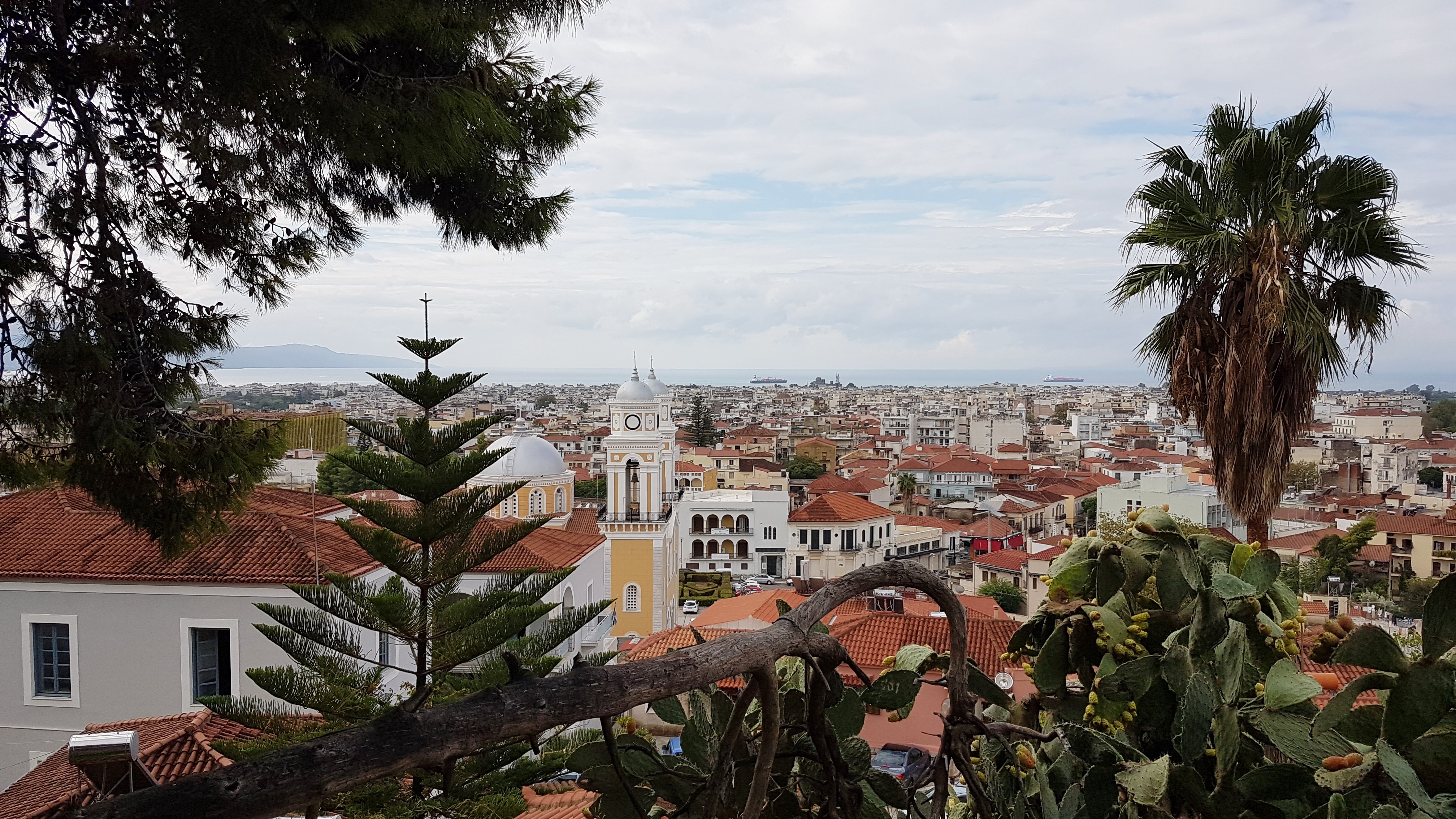 Mais revenons-en au commencement ! Au début, y'a un cyclone qui menace ! La baie de KALAMATA est encore calme, mais, indice qui ne trompe pas, en dehors du cargo sur la photo, y'a d'autres navires de commerce qui sont venus mouiller dans la rade, en attente !...