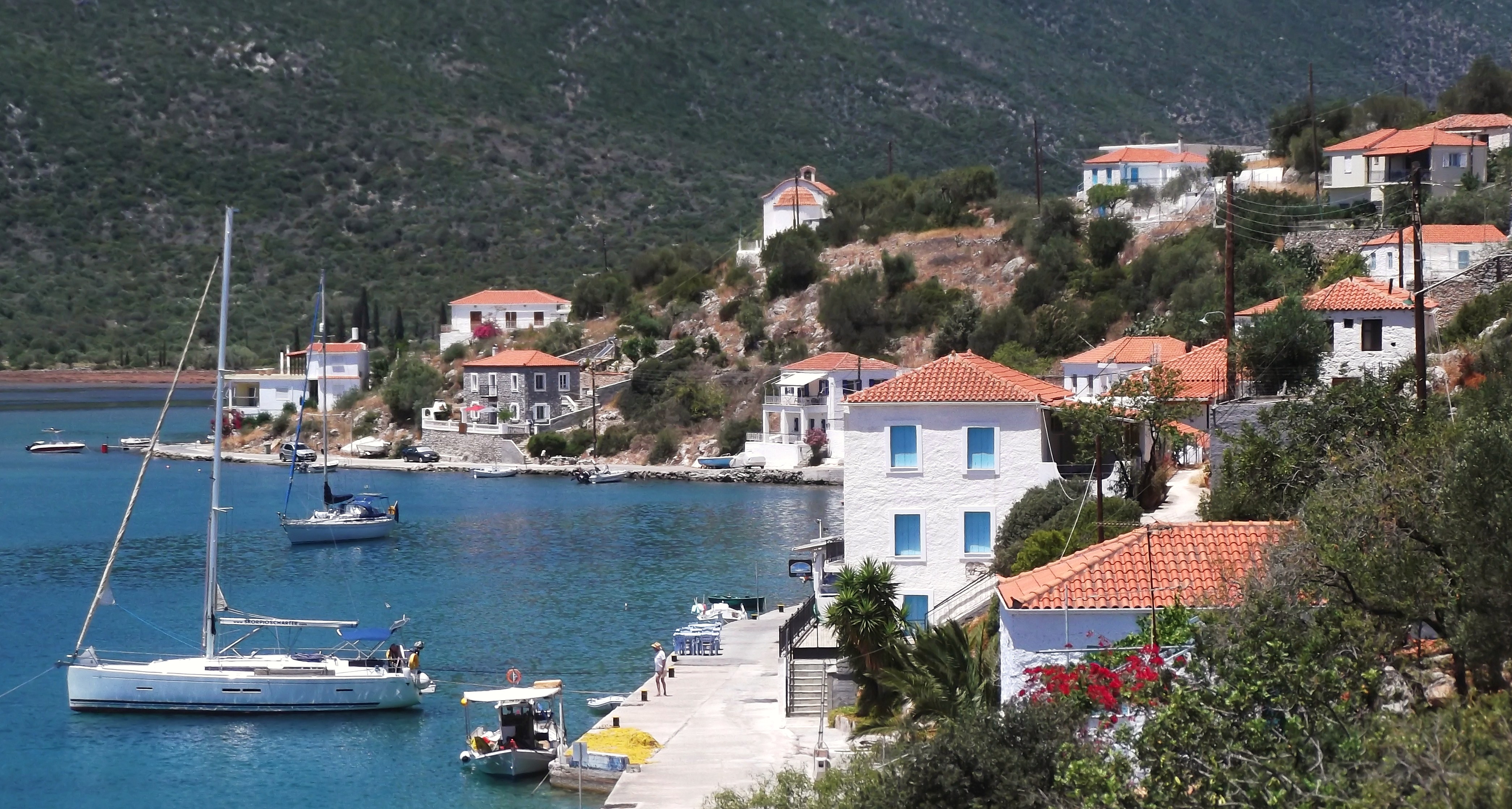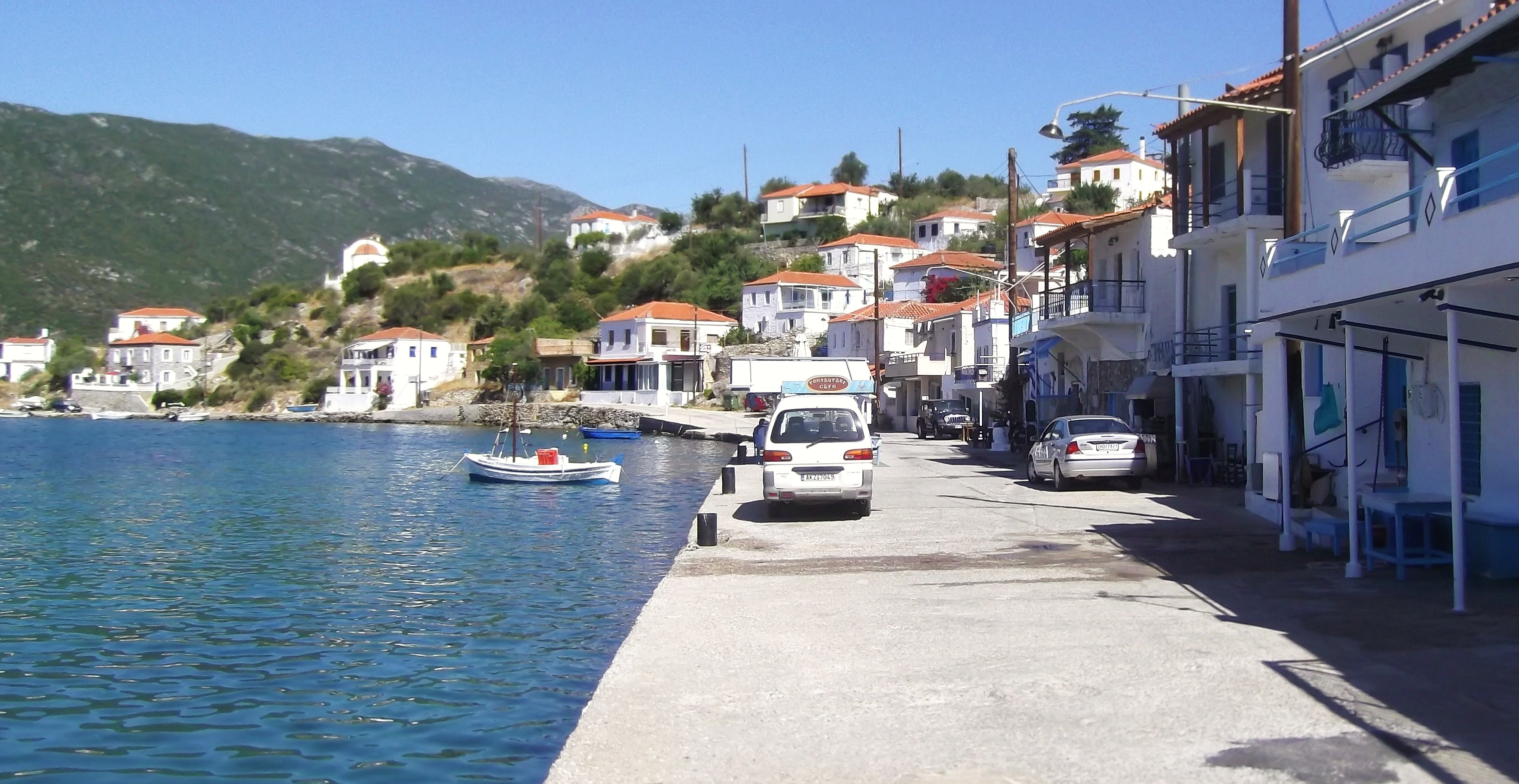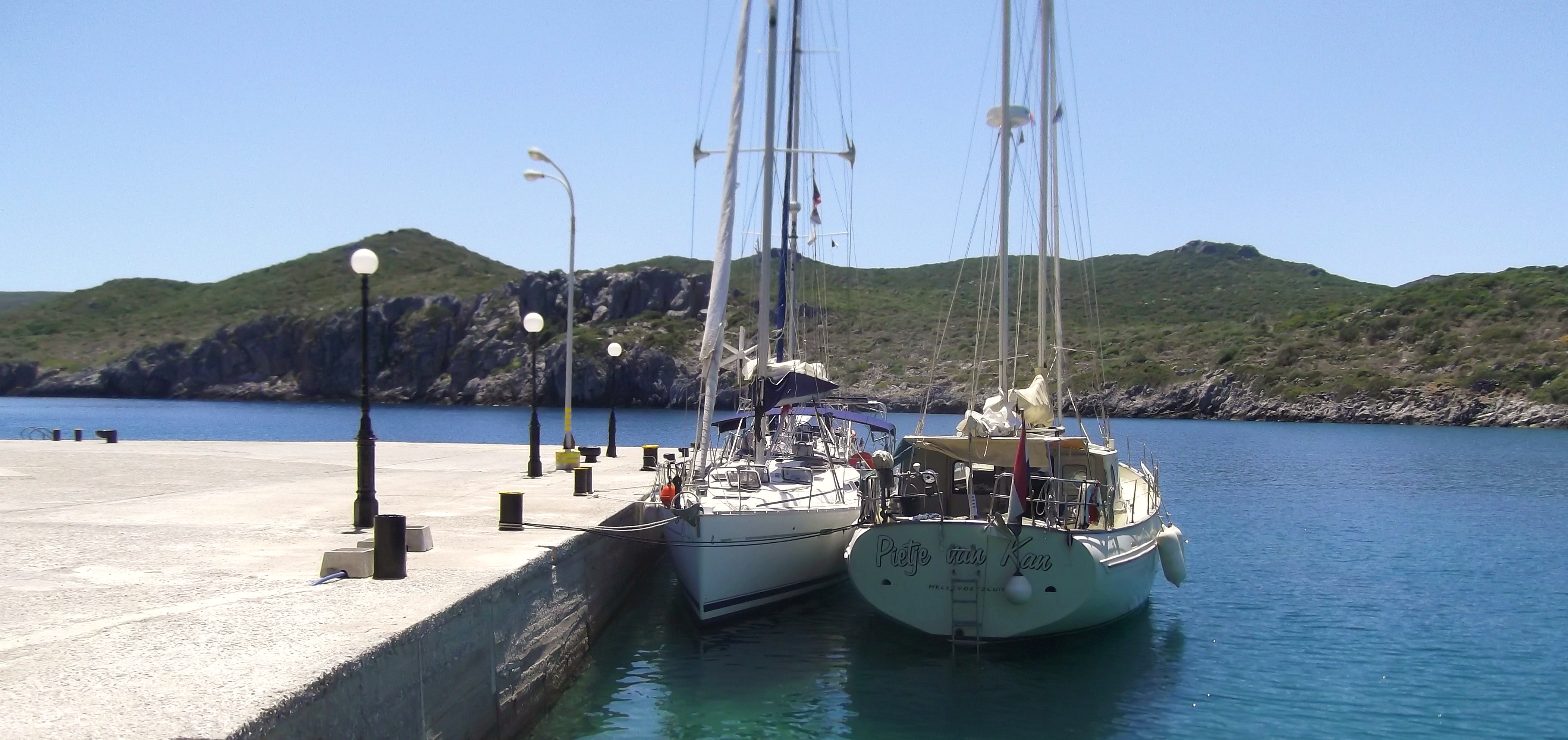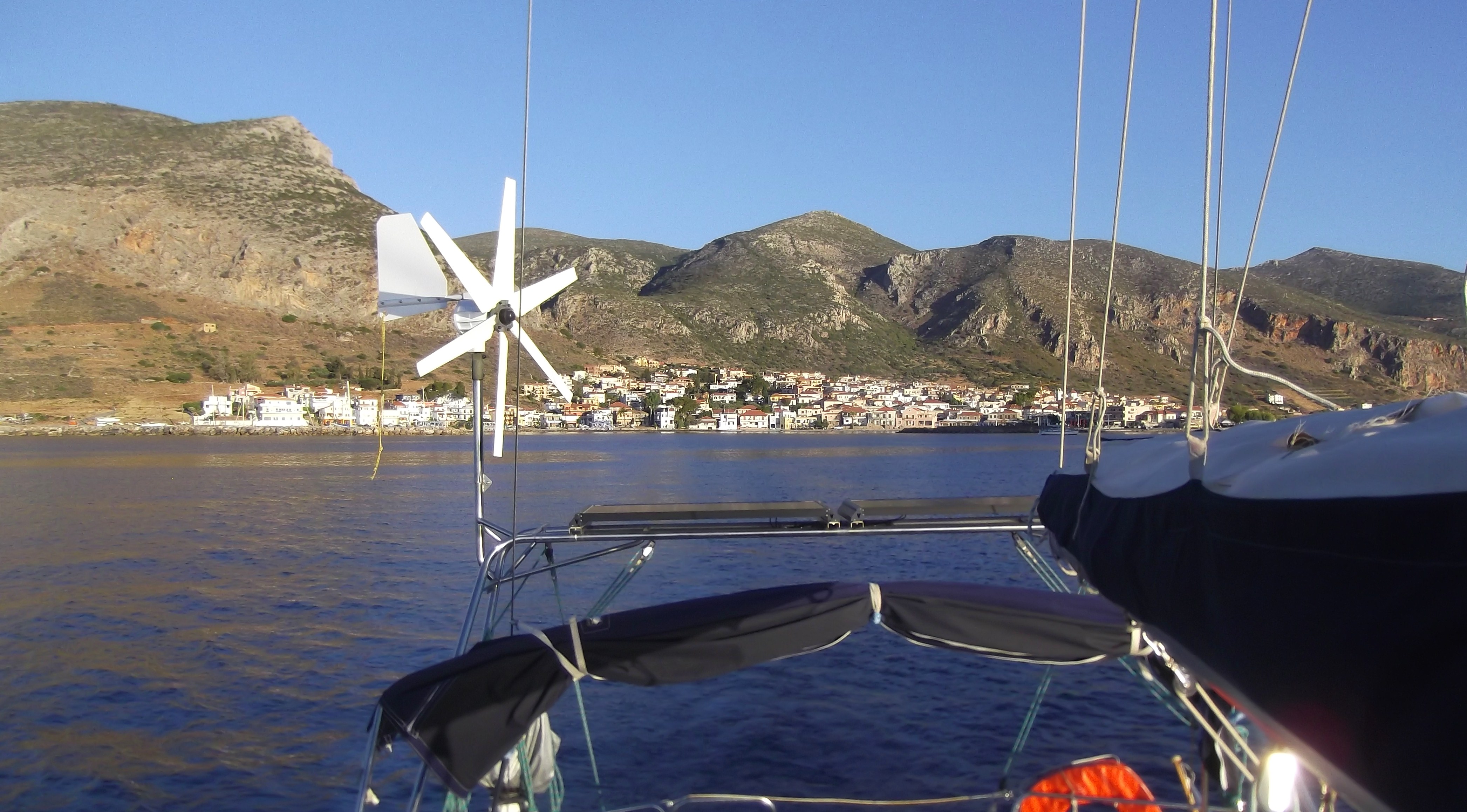 7 petits miles après MONEMVASIA, je m'arrête à nouveau dans le minuscule port de GERAKAS. Il y a un petit quai ou 2 bateaux seulement peuvent se mettre along side...