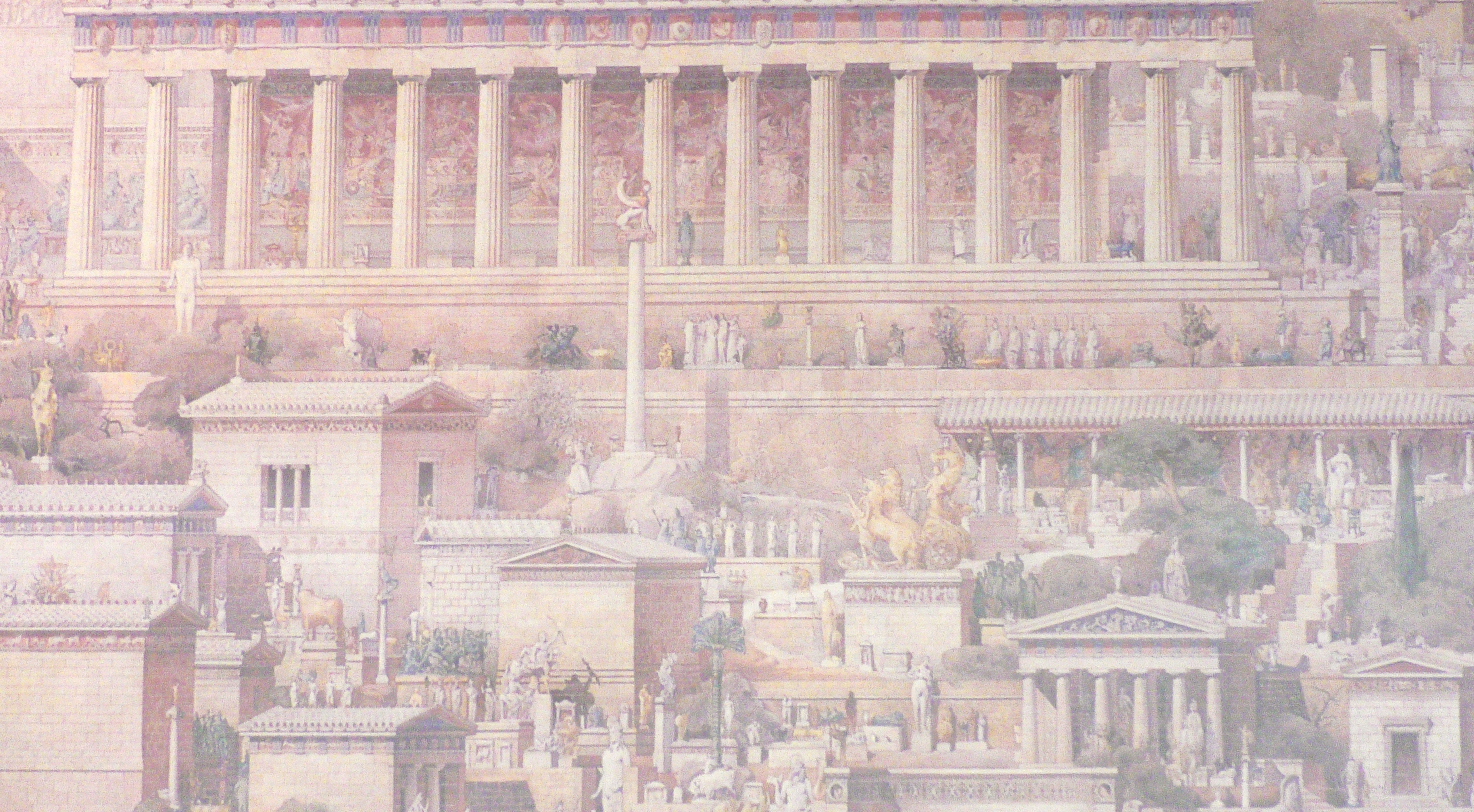 La vue d'ensemble à l'époque ou Apollon, dieu de la lumière et des arts, déambulait dans son temple en quête de son mignon Hyacinthe. ! Ouh, ouh, où es tu ? Mignon, mignon, mignon !! (A prononcer sur le même ton que minou, minou, minou !)