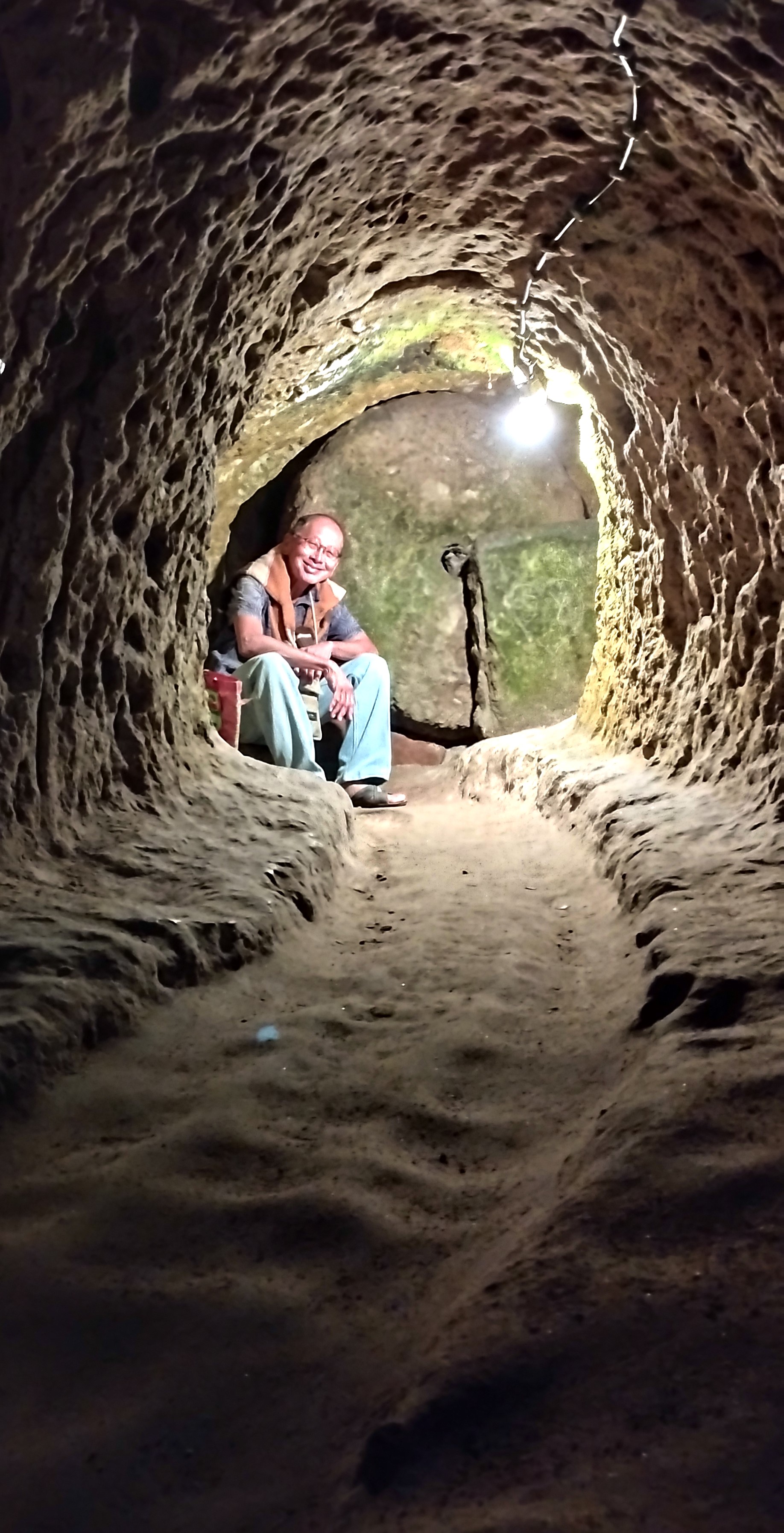 Il faut imaginer ces tunnels pleins de vie (20 000 habitants !!!), les lampes à huile qui fument à tout va pour éclairer toute la cité, les couloirs où il est quasi impossible de se croiser, et où tenir debout, me concernant, est impossible !!!