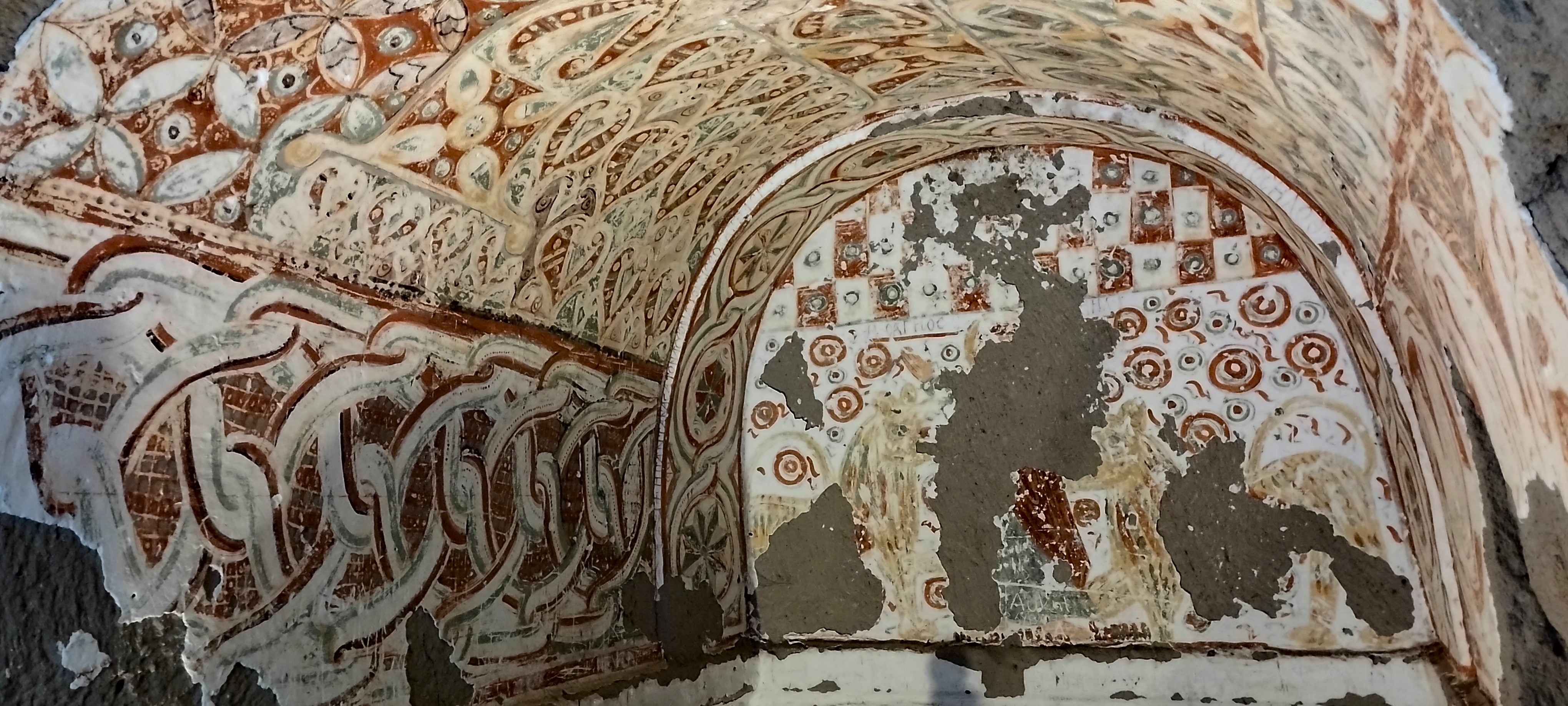 On est dans l'AĞAÇALTI KILESESI et son plafond aux motifs géométriques qui accordent parfaitement les sépia, ocre jaune et vert manganèse !