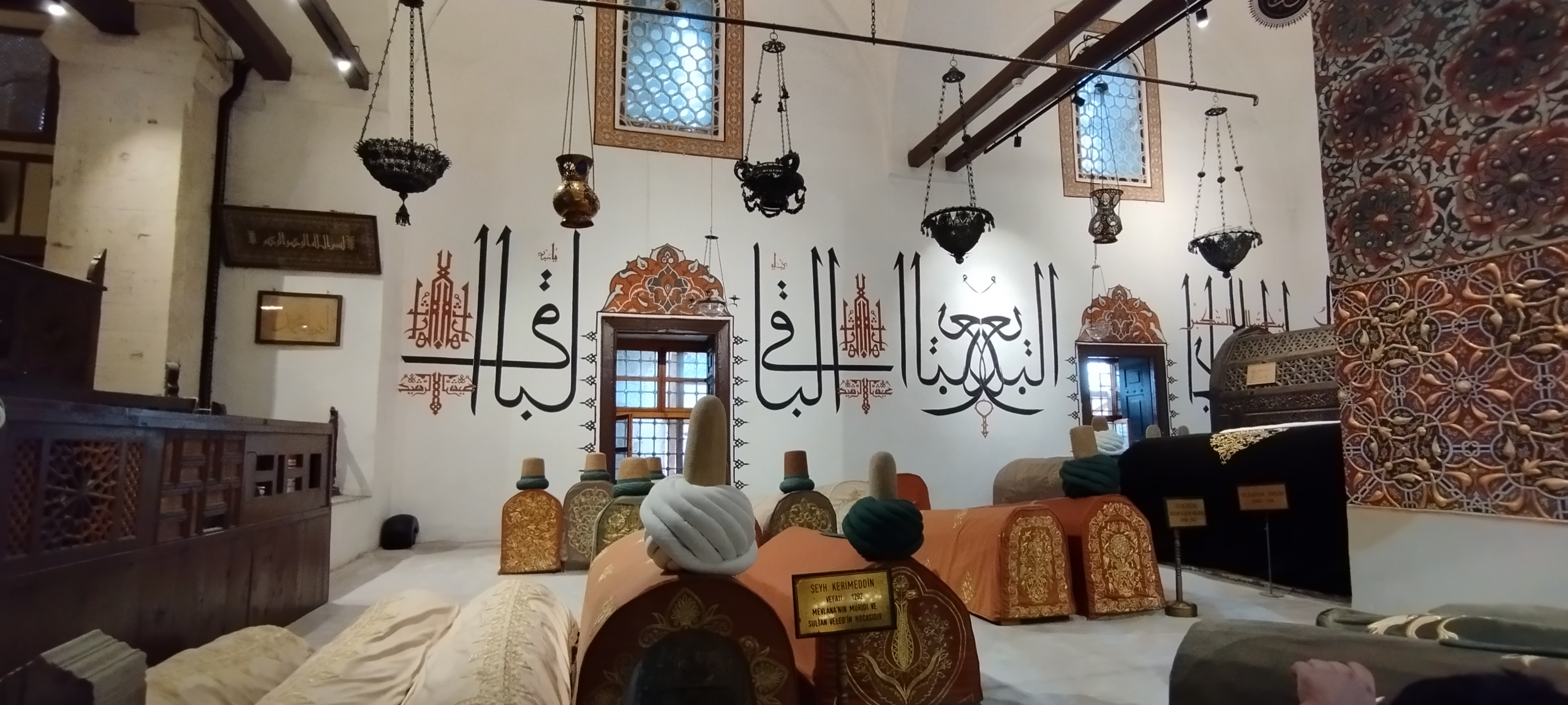 Cette beauté toute bleue de céramique (à ce qu'il paraît, elle est pas bleue mais verte... Bof. Je dois pas bien voir le truc, moi), c'est le TEKKE (Le couvent) de MEVLANA, l'un des hauts-lieux du mysticisme musulman, qui a été édifié au XIII ème siècle.