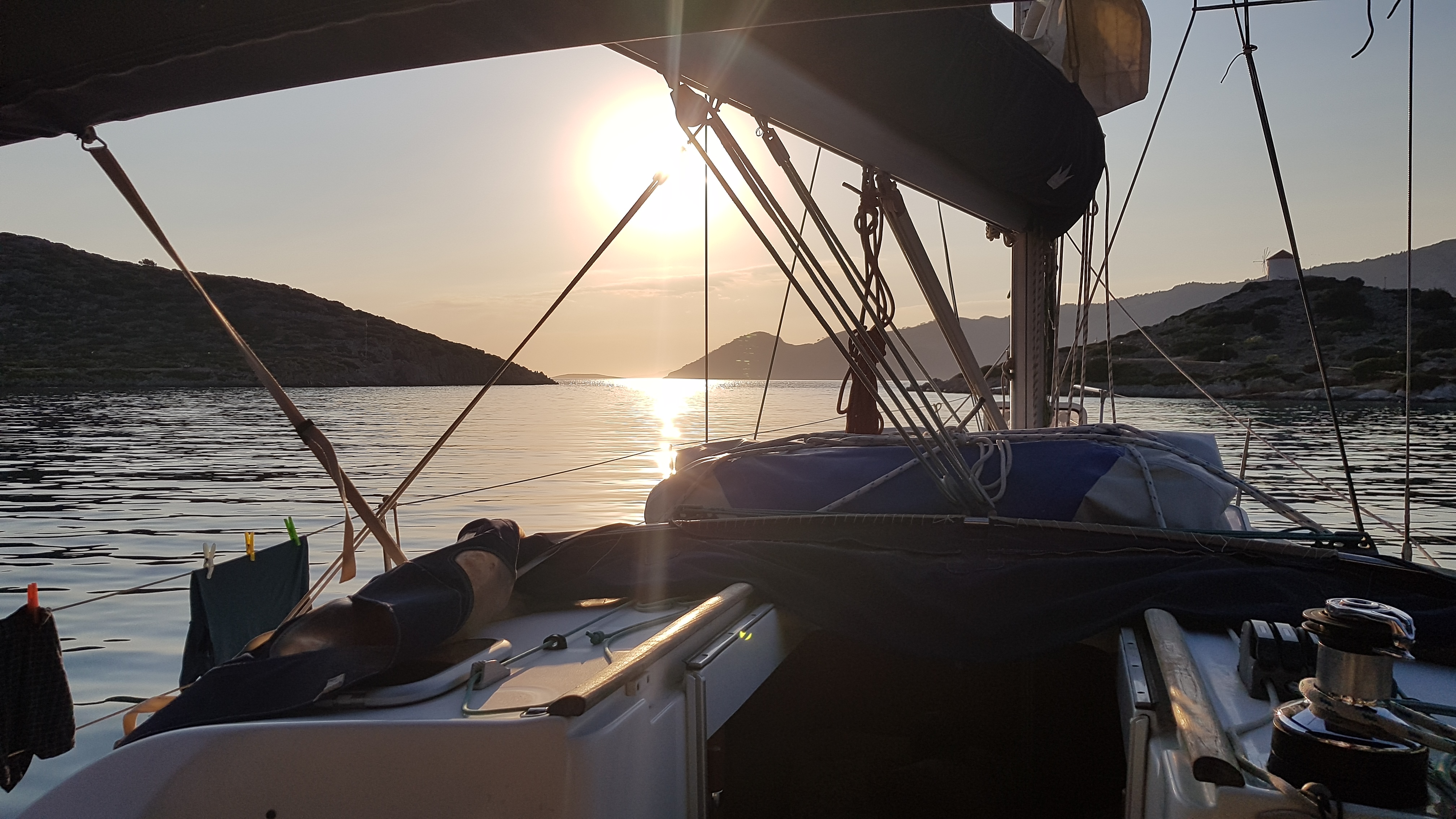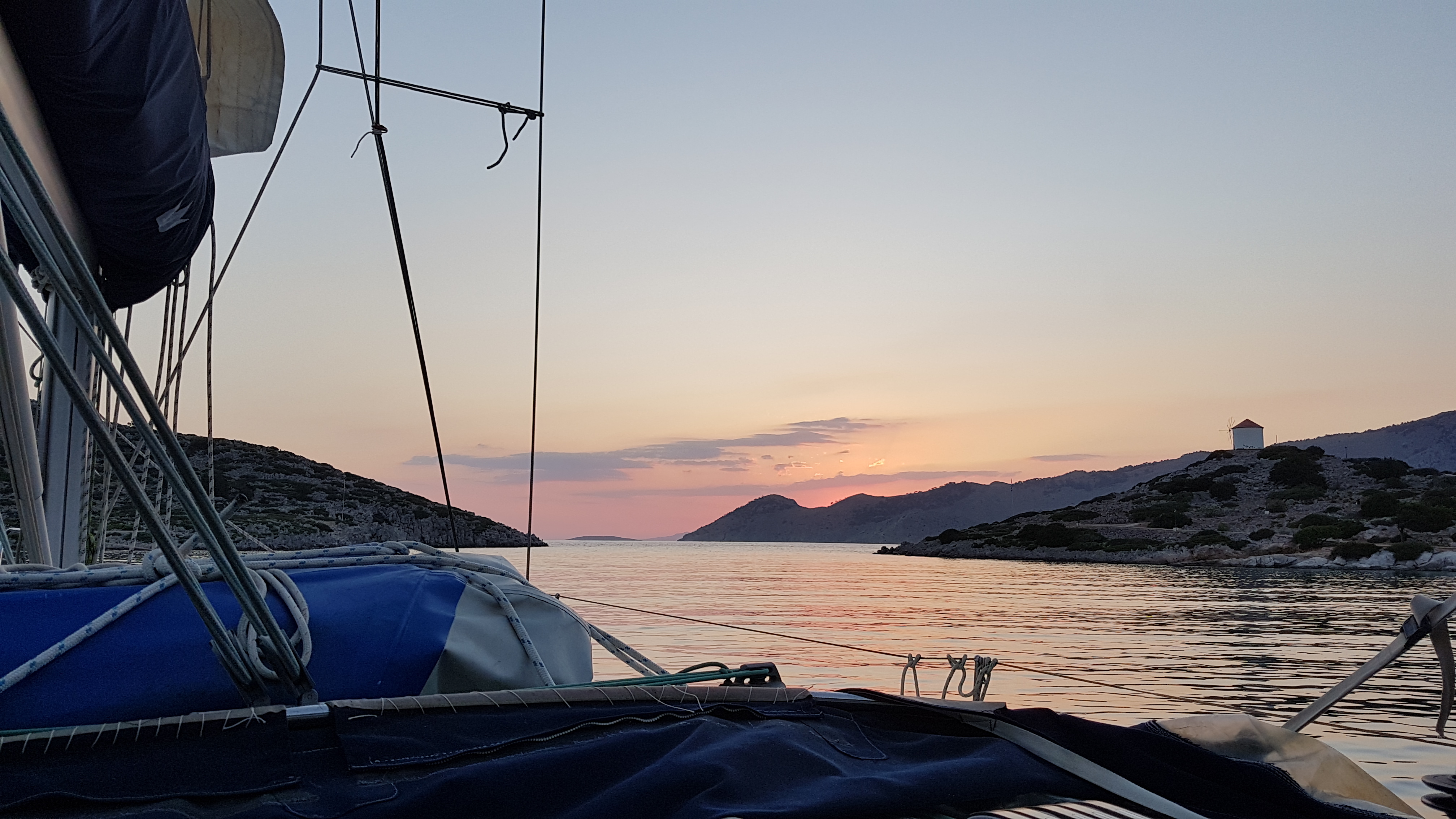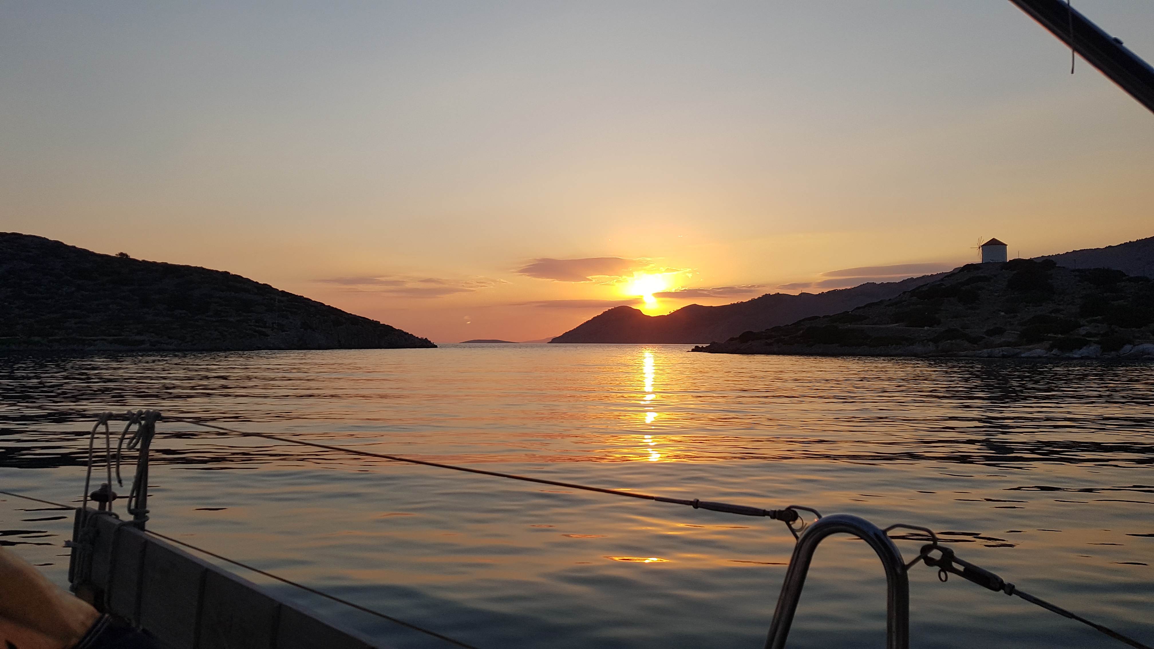 L'avantage de cette position au Sud-Ouest de SYMI, c'est que pour le lendemain, on s'ouvre un bel angle de vent pour naviguer à la voile au portant !