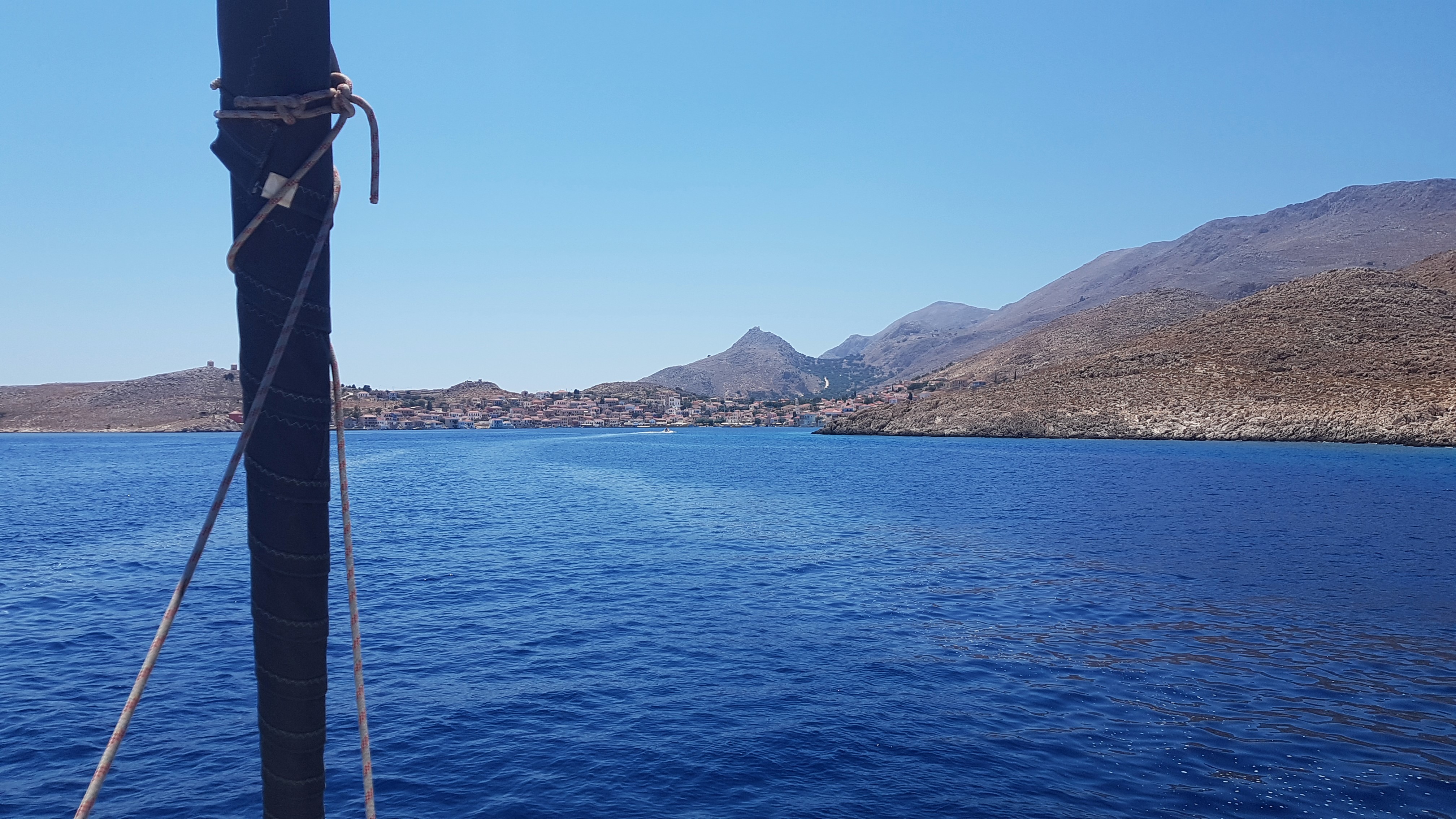 Laissant définitivement l'île de RHODES derrière nous, à c'qu'on croit..., le vent nous oblige à un long détour pour atteindre l'île de KHALKI.
