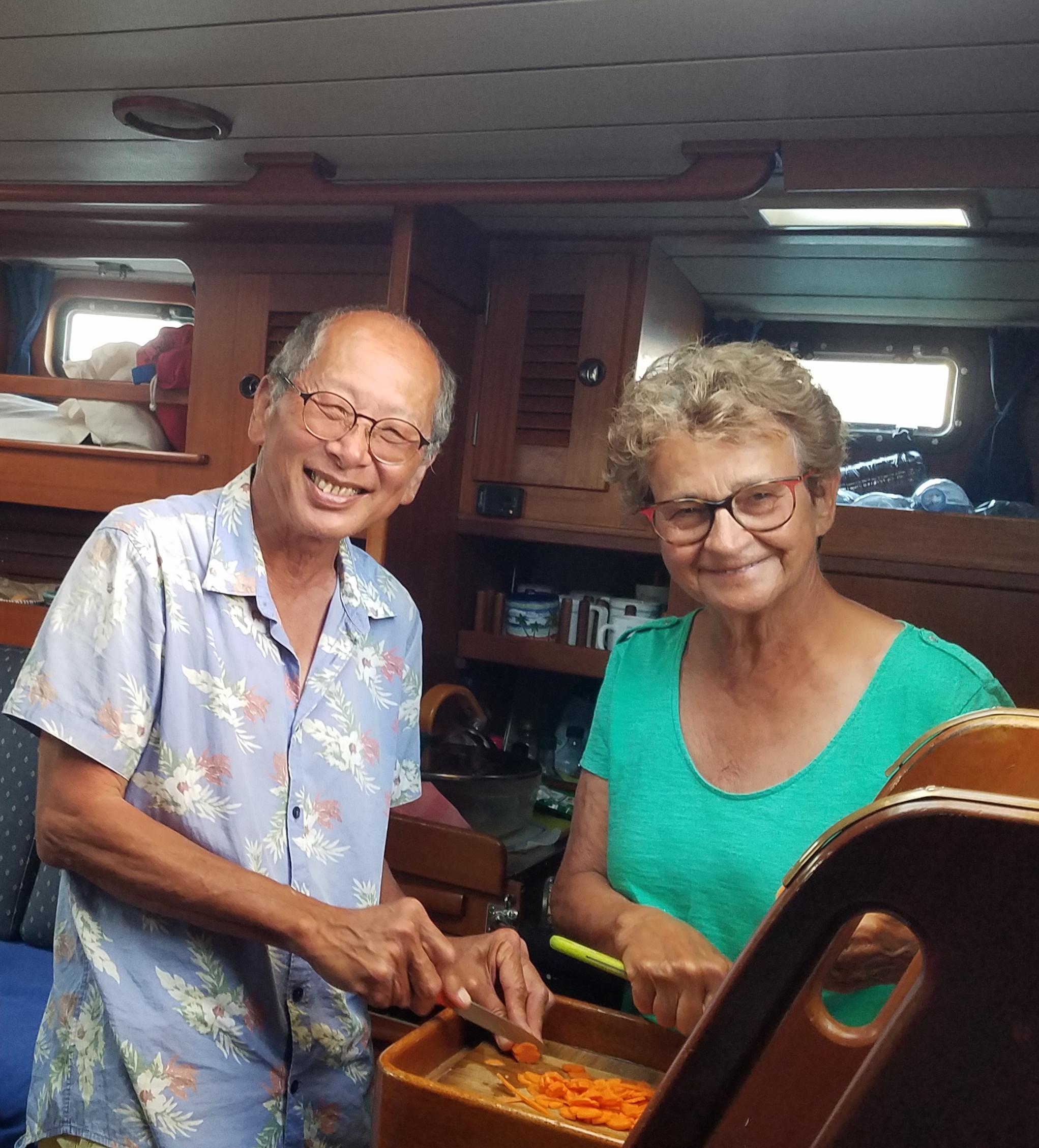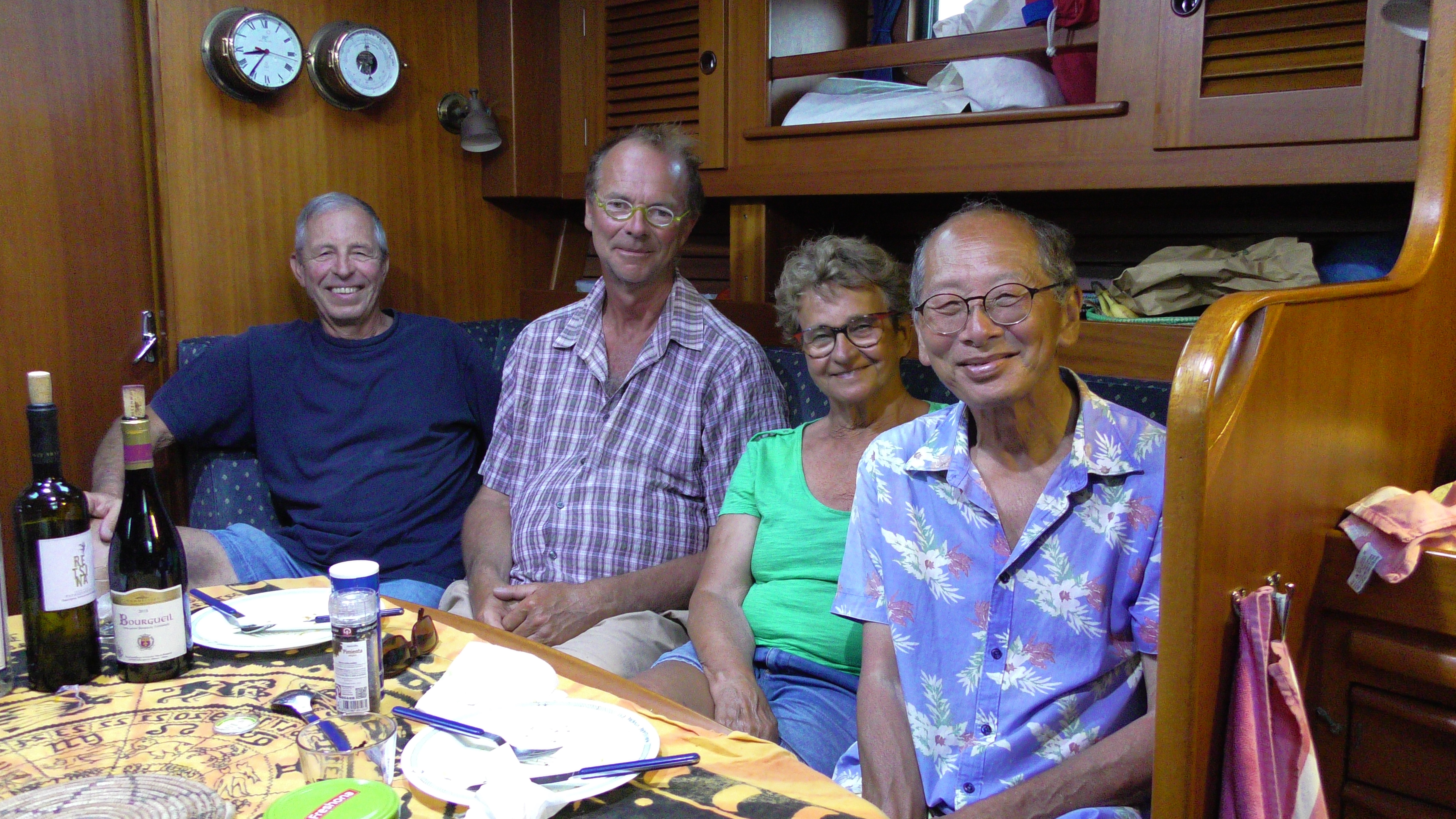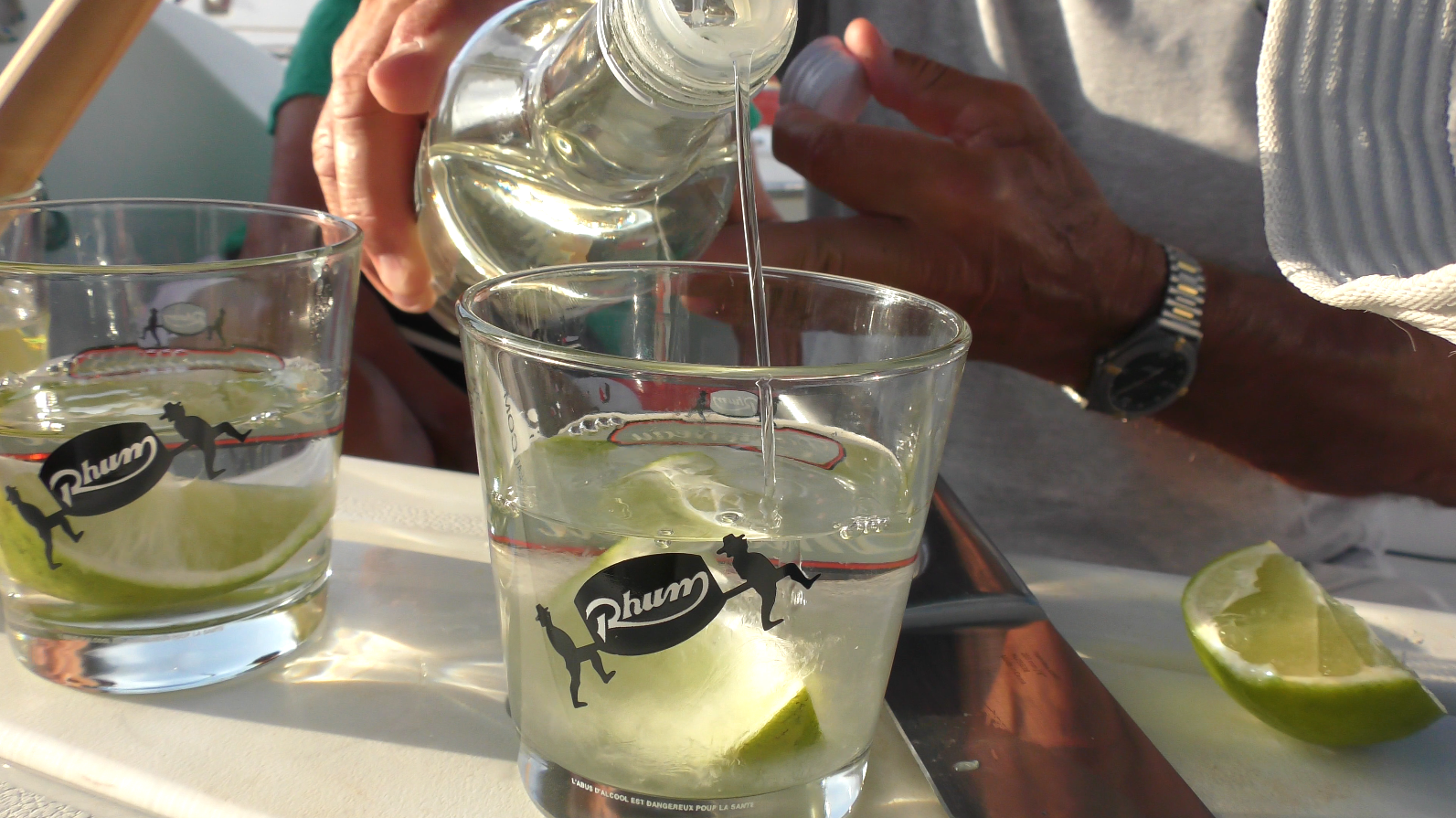 Pour accompagner ce breuvage original, le mousse a improvisé au wok un sauté de légumes al dente. L'ardeur des deux équipages à fêter cette délicieuse fraternité rendait l'instant extrêmement ludique.