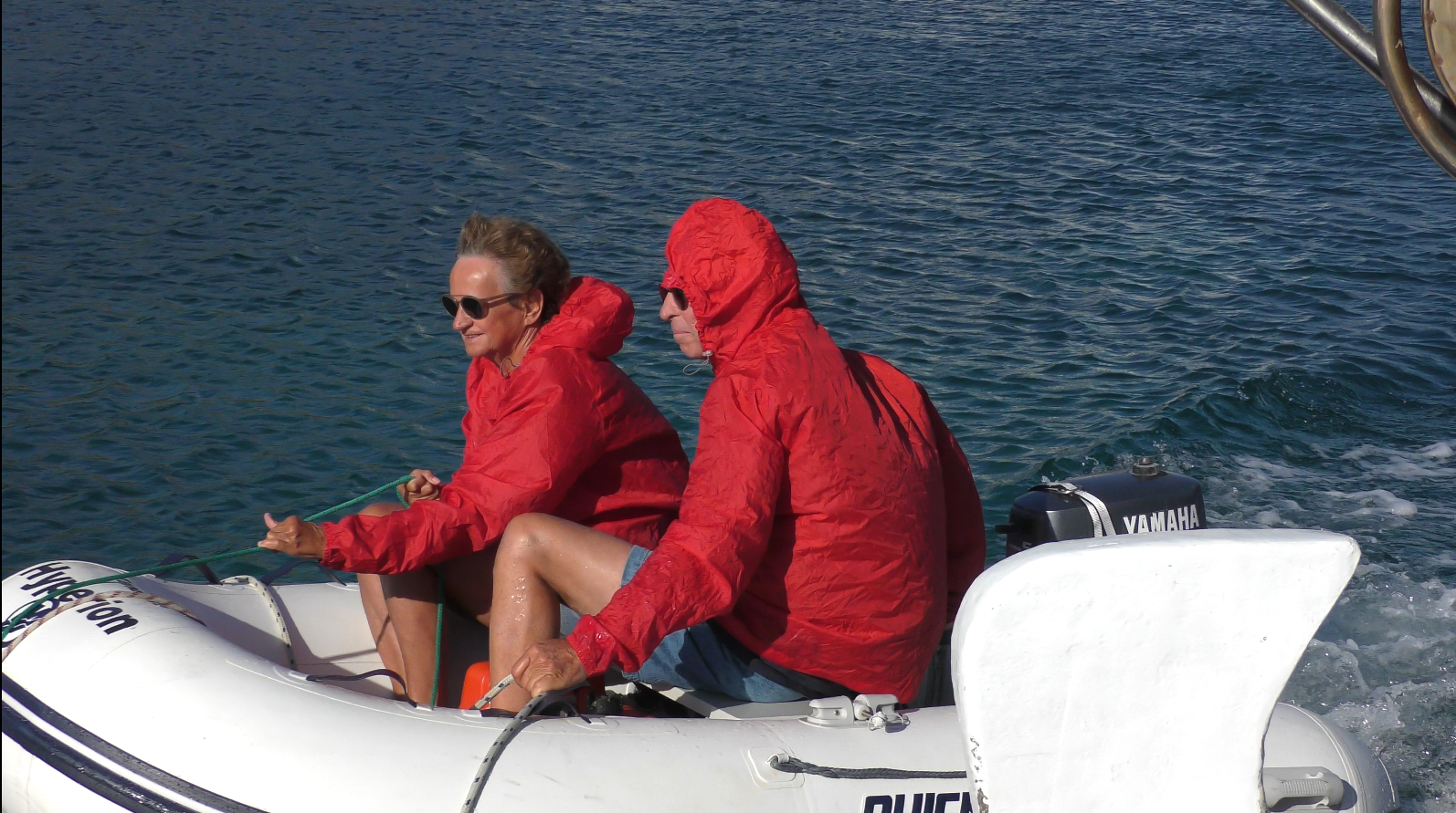 Cheveux au vent, l'Amirale et le barreur sont venus nous chercher avec l'annexe du Hypérion. Quel romantisme ! On dirait Michèle Morgan et Gérard Philippe dans la baie de Cannes.