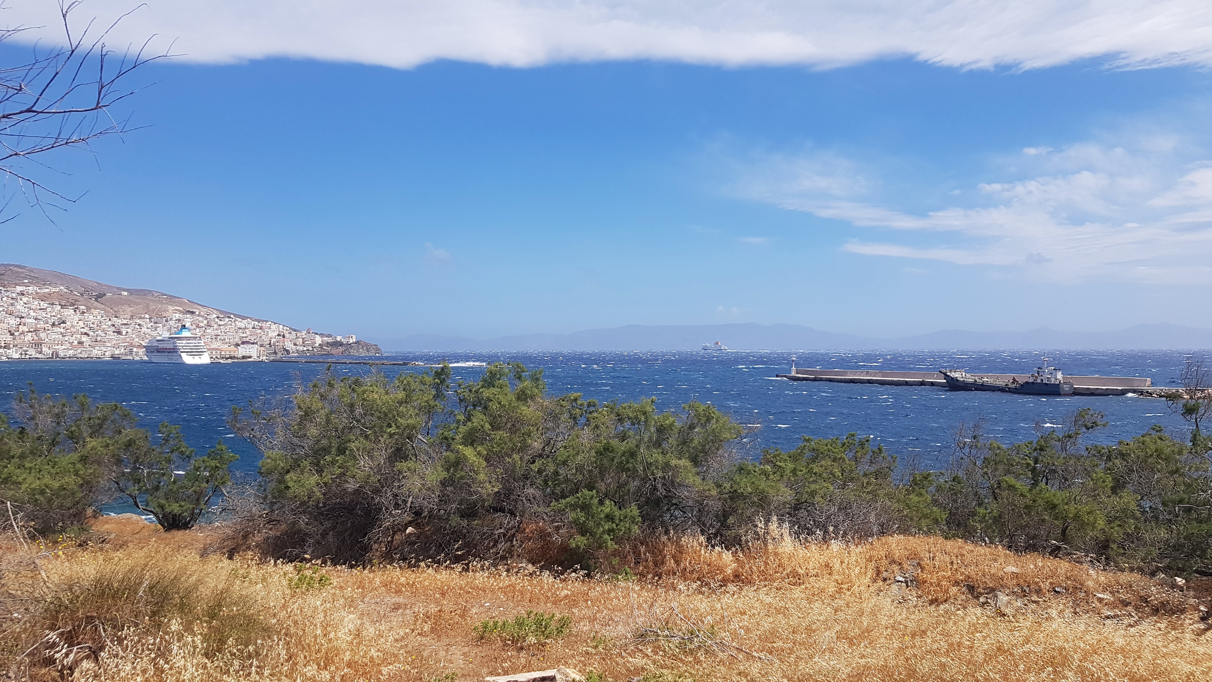 Et donc, après ces quelques jours d'attente fort ventée, on a repris la route. Direction l'un des nombreux mouillages sur l'île de RINEIA, voisine de l'île de DELOS qui abrite le plus beau sanctuaire antique de toute la GRECE !
