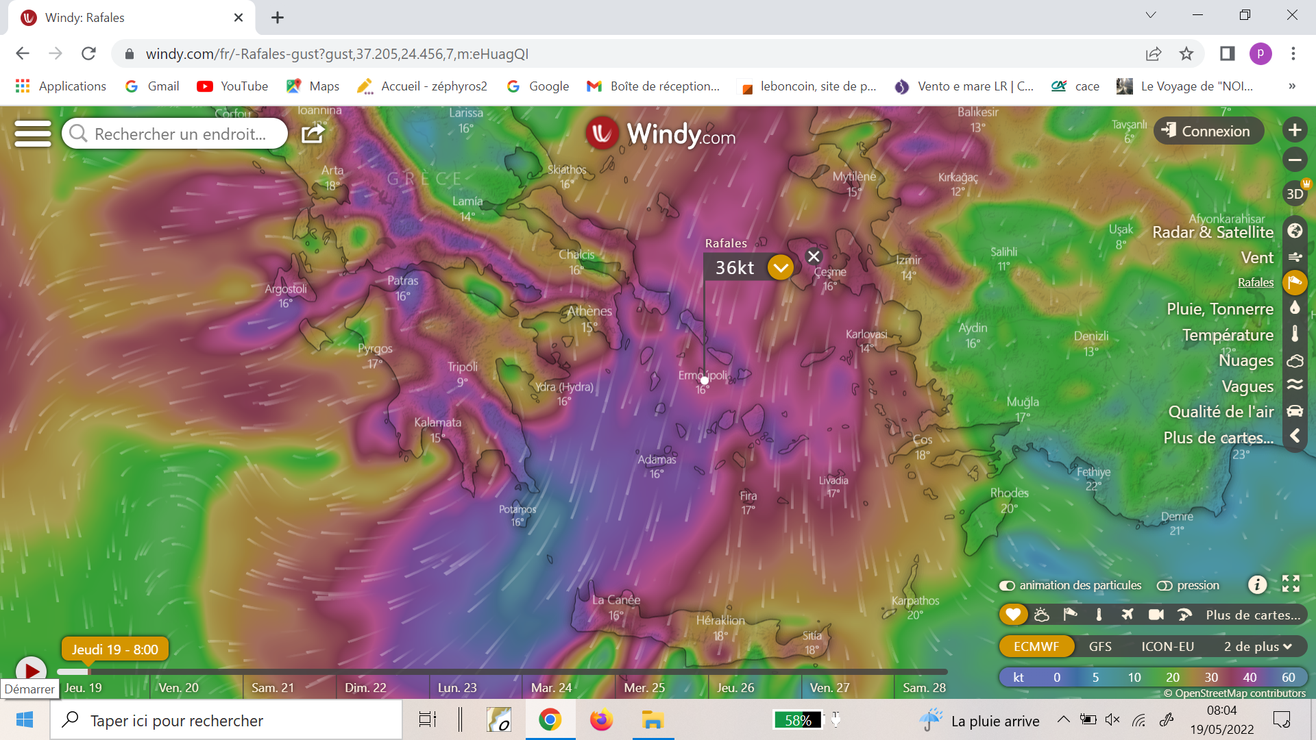 Au second aussi ! J'ai mis tout un tas de ficelles (FRANCIS de la marine de guerre appréciera mes formulations), fermé toutes les fenêtres, mis tout un tas de machins en plastique pour protéger la coque, replié la tente au dessus de là où on conduit, et, on a attendu sagement que EOLE se déchaîne !