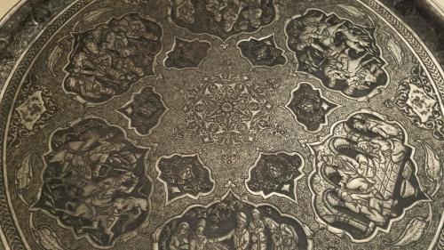 Les vêtements amples, la longueur des pans, la manière dont les étoffes flottaient au vent, les volutes qui incarnaient le ballet des nuages pourraient faire penser à une création en provenance de l’Empire du Milieu. Certes, l’ambiance dépeinte était susceptible d’être associée aux terres du soleil levant sur la Route de la Soie. Mais l’inscription qui apparaissait près de l’épaule droite du personnage montrait que la scène se passait en Perse.