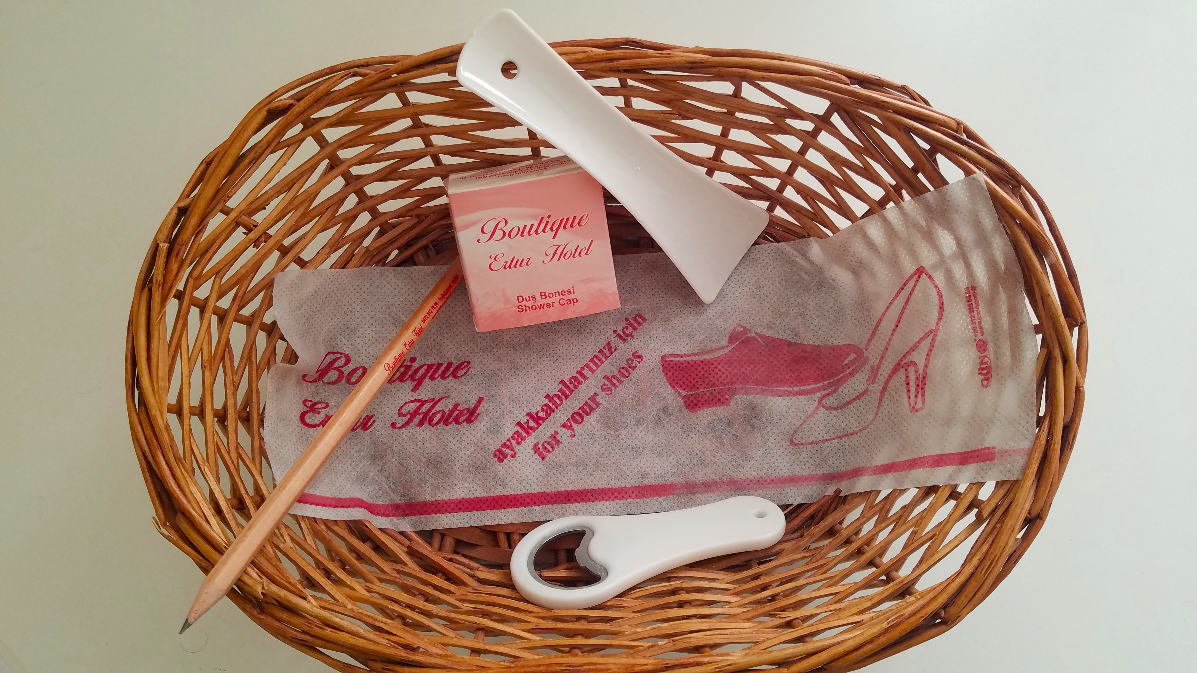 Il s’y trouvait un crayon à papier remarquablement affûté, qui portait le sceau de l’établissement : Boutique Ertur Hotel. Il y avait encore, dans une mignonne boîte rose, un bonnet pour la douche. La panoplie des objets qui contribuaient à rendre le lieu sympathique et accueillant comportait aussi un chausse-pied flambant neuf, vierge de toute trace de chaussette. Quelle délicate attention pour ce qui était tout en haut du corps et ce qui était tout en bas ! Quant à l’espace intermédiaire, situé entre le haut et le bas, avait-il droit aussi à quelque attention aimable, voire séduisante ?