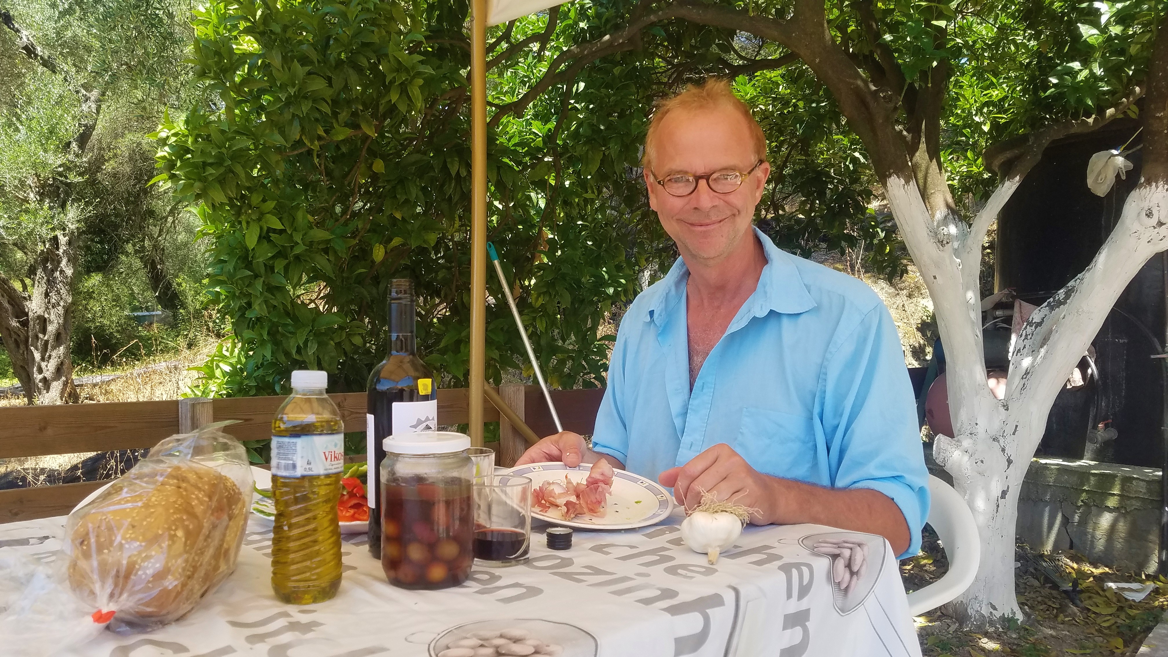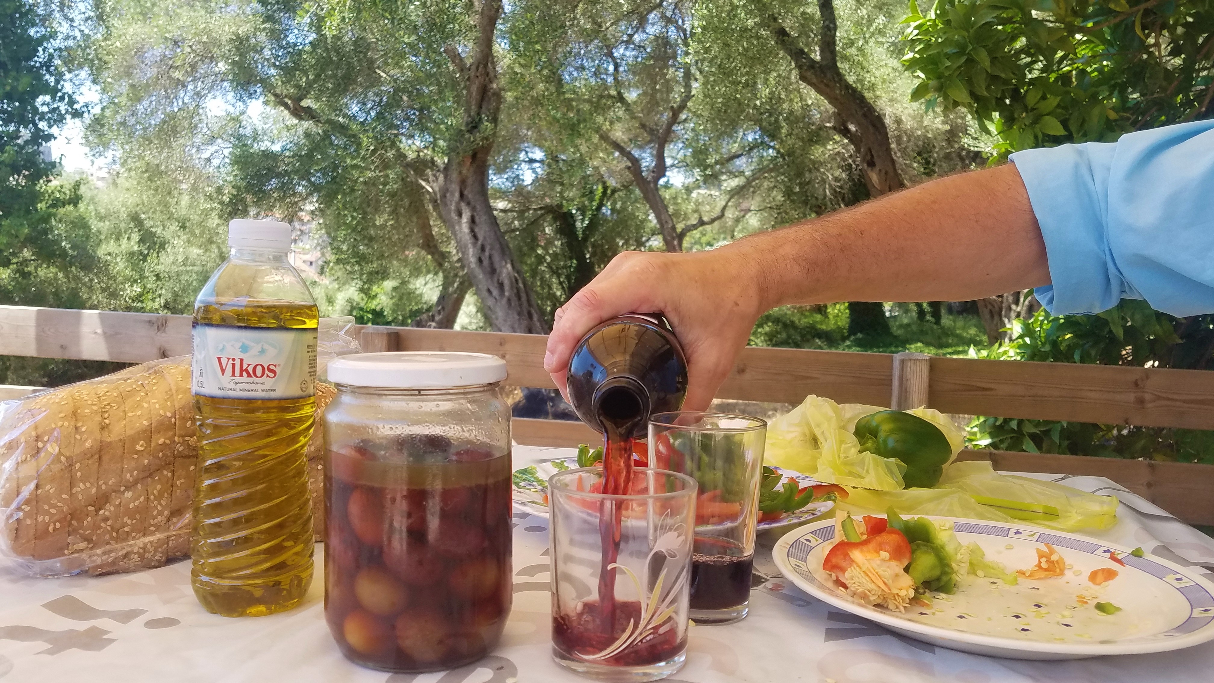 Il en était de même pour nous. À ses deux frères de passage, la muse des lieux n'a pas apporté que le flacon d'huile, mais aussi un bocal rempli d'olives bien dodues, marinées d'après une recette familiale.