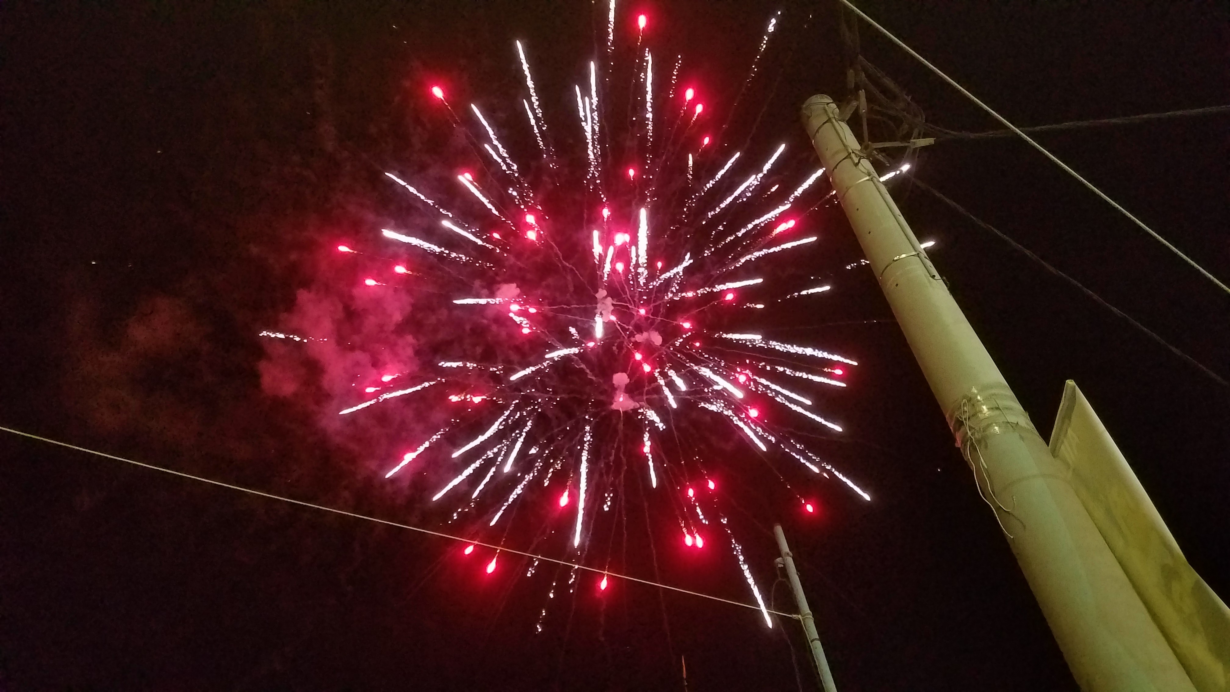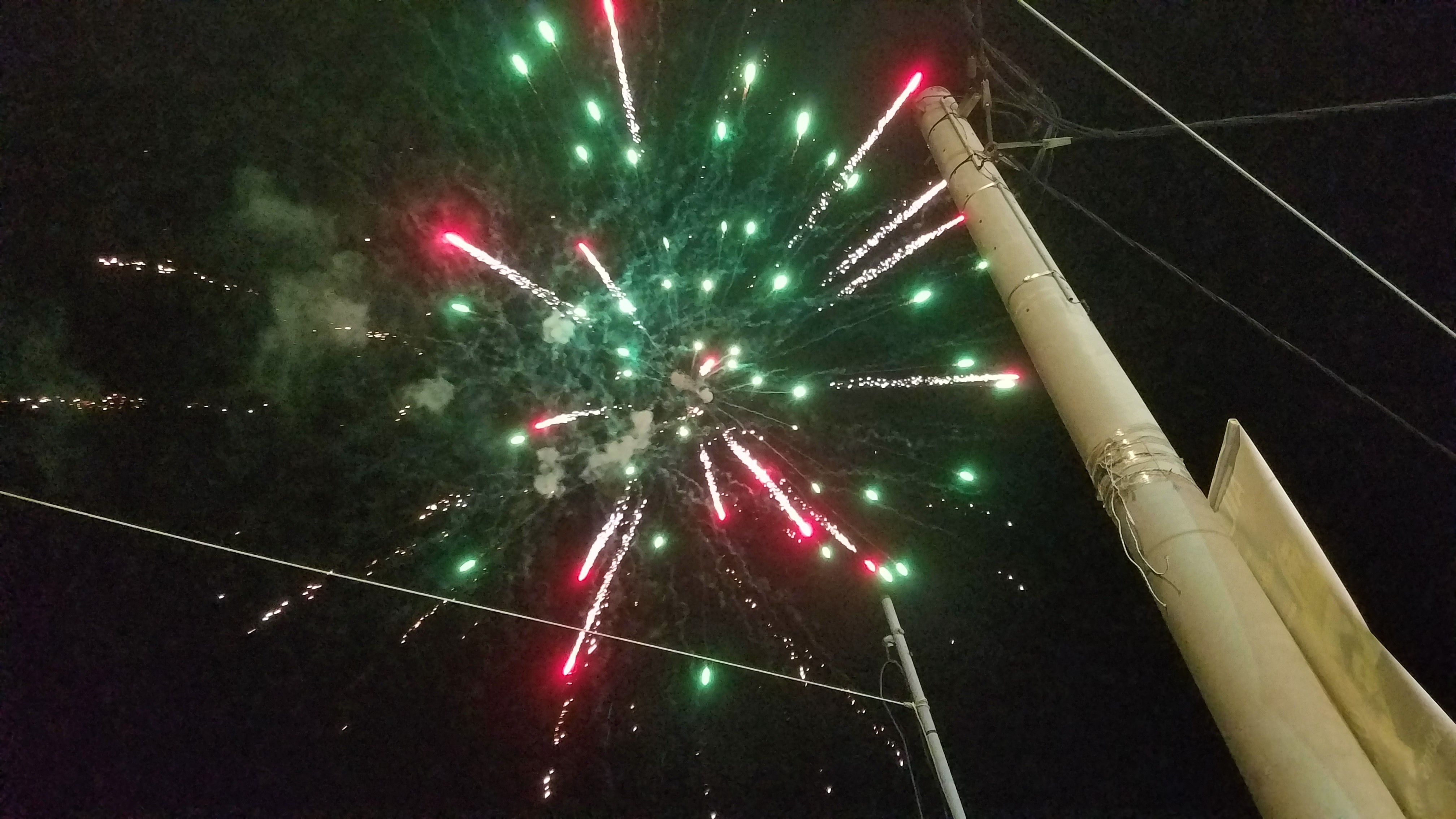 Le Capitaine du Zeph et le mousse aussi, étaient éblouis. Au sens figuré comme au sens propre. En effet, lorsque nous nous sommes mis en chemin pour régaler notre estomac, un feu d’artifice nous a servi de dais.