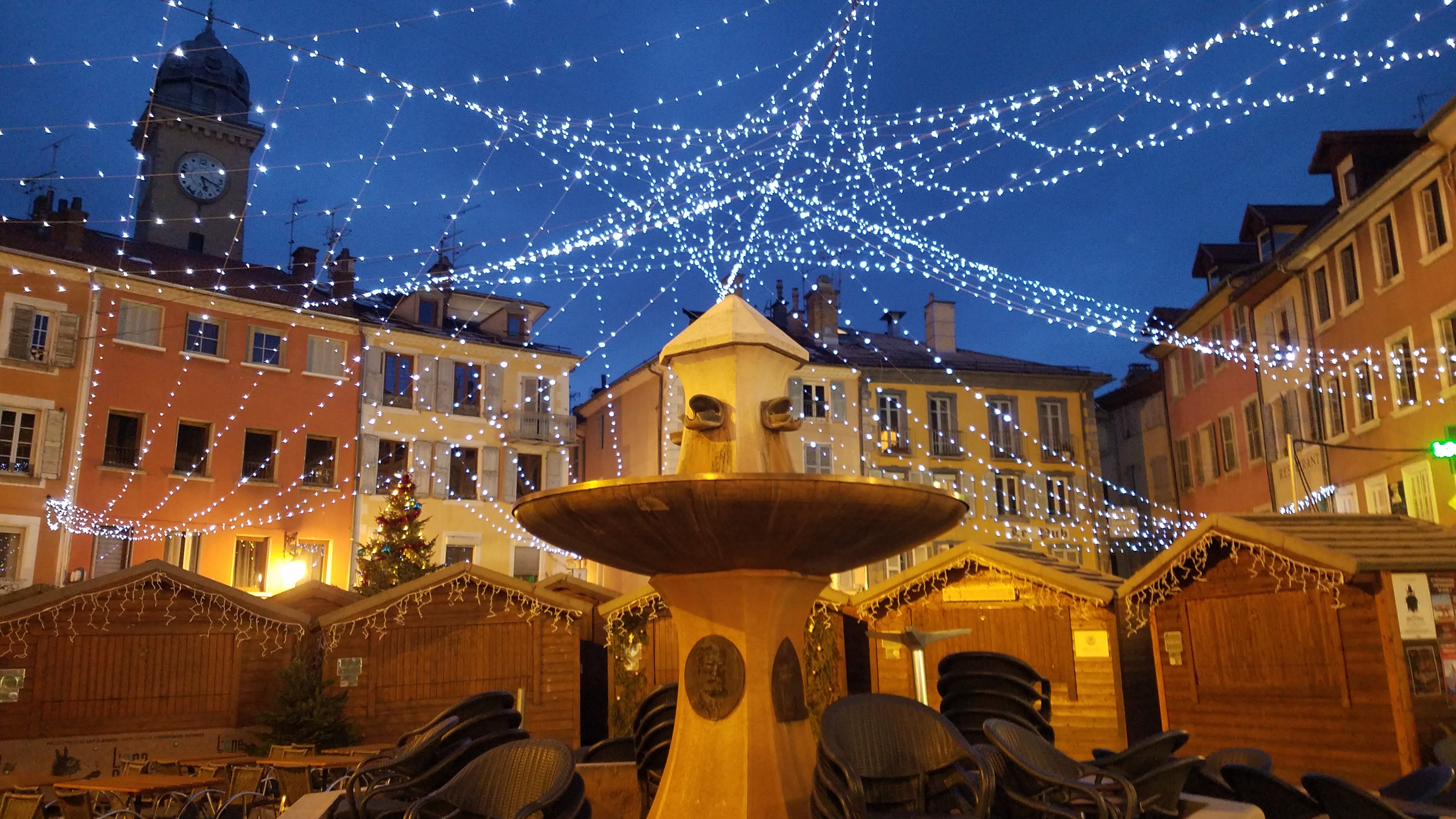 La première expérience a eu lieu sur la place Jean Marcellin. Le mousse cherchait à capter la finesse du scintillement des guirlandes dans la voûte céleste.