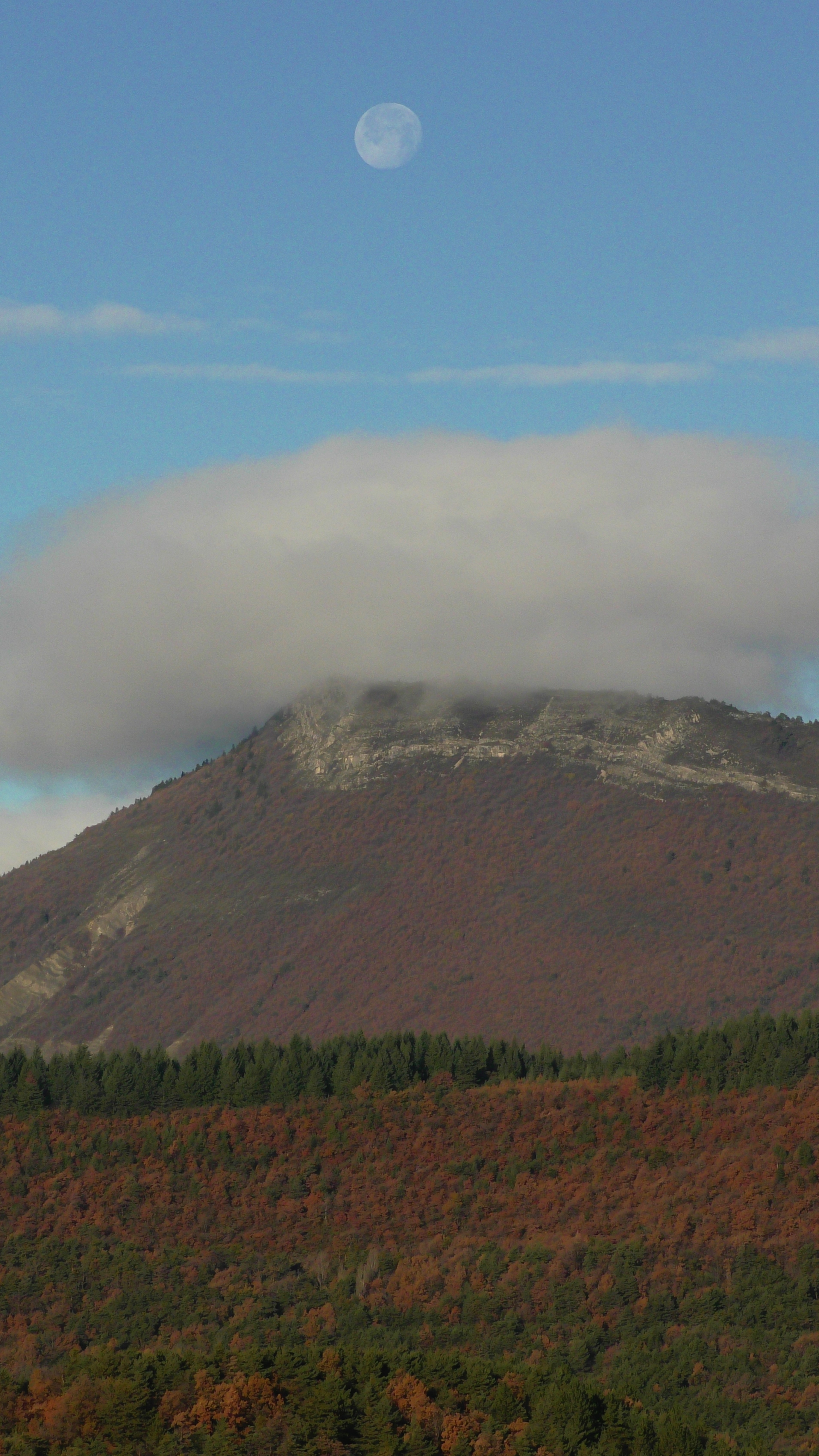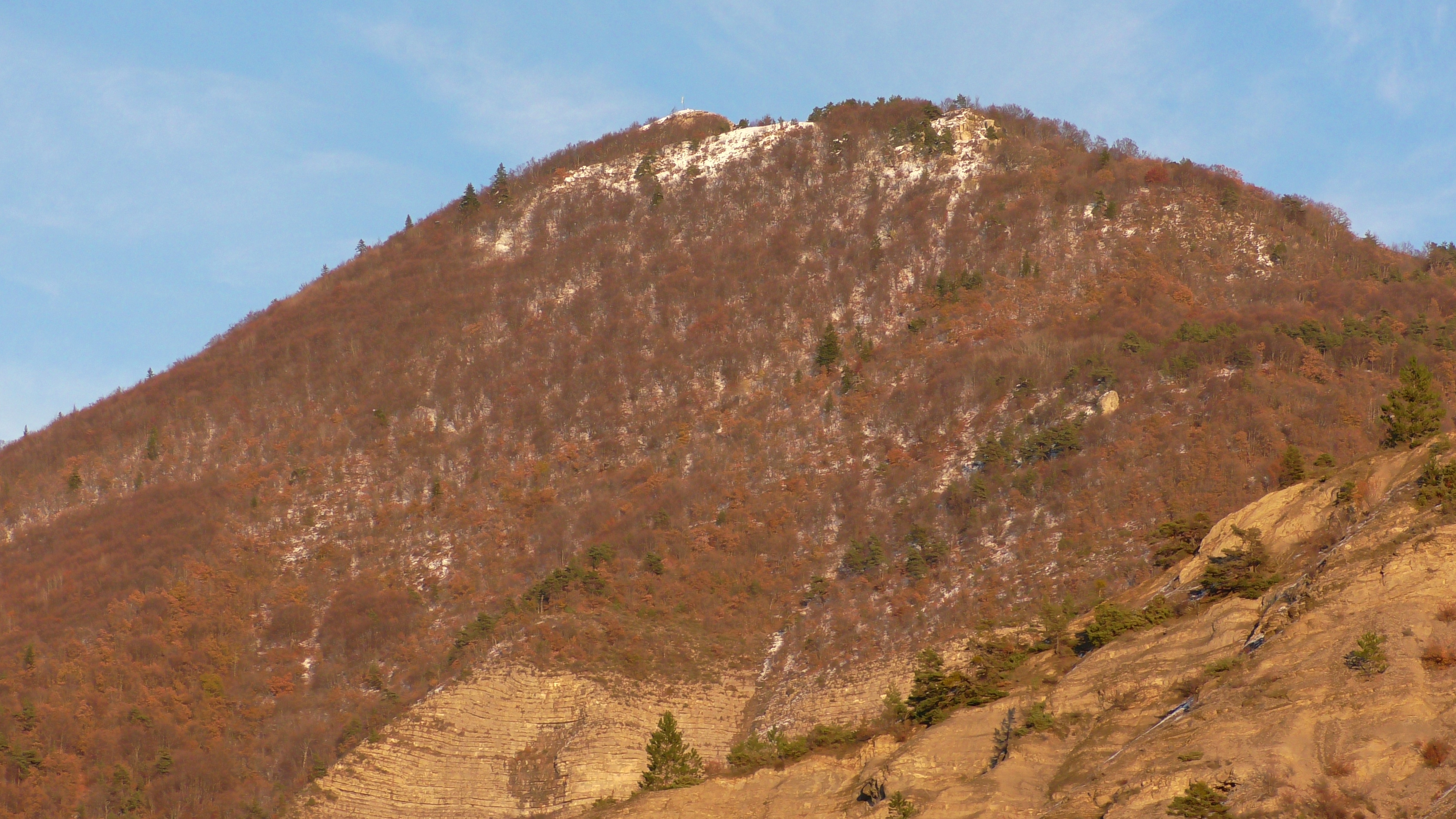 C’était la montagne d’Oule, drapée dans son manteau ocre. Il y avait de la neige par ci par là. La forme arrondie du sommet conférait un caractère bienfaisant à ce voisinage.