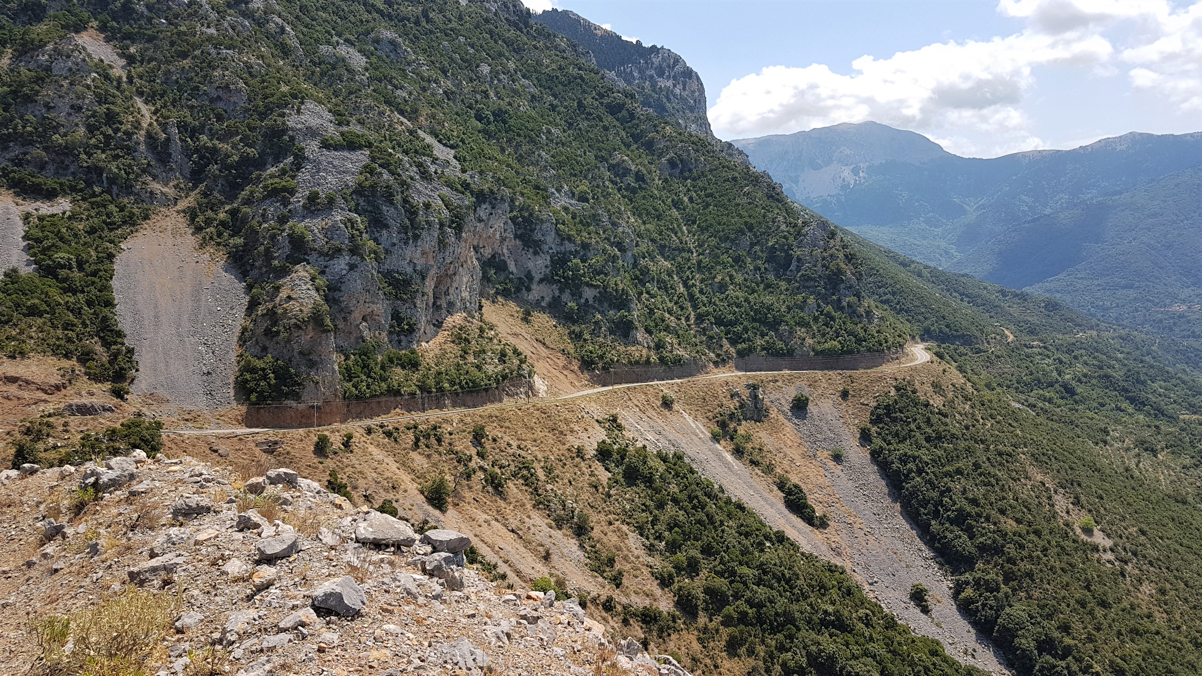 Je me suis régalé sur ces routes aériennes... Même si parfois, le risque de se manger un rocher sur la tête n'est jamais très loin ! En témoigne les nombreux blocs de pierre qui parsèment la chaussée... Et puis, quand tu vois la barrière métallique qui te protège du vide, toute tordue, pliée, déchirée par endroits, lacérée par les rochers qui dégringolent de la montagne, ben c'est mieux si tu t'en prends pas un !