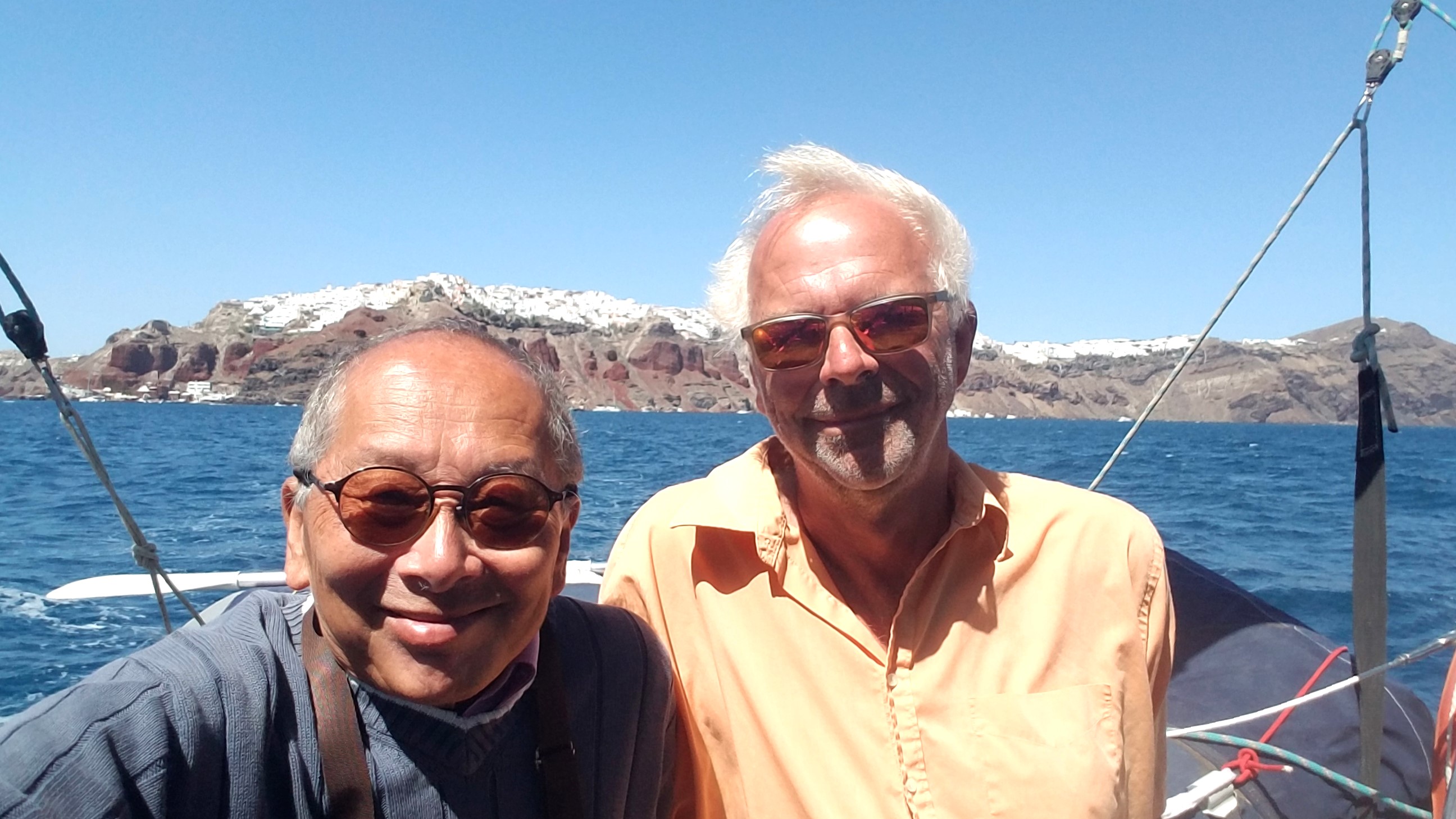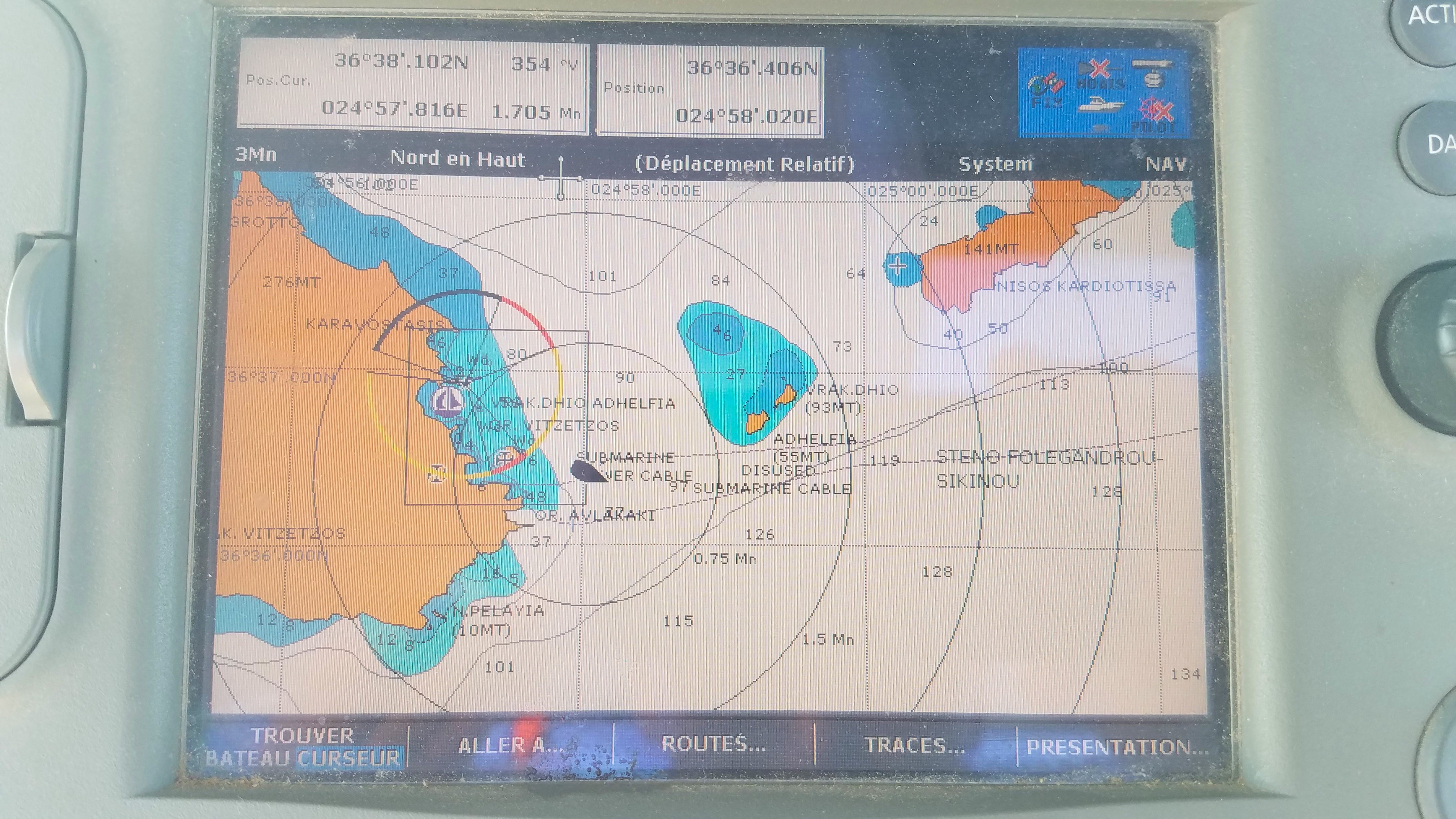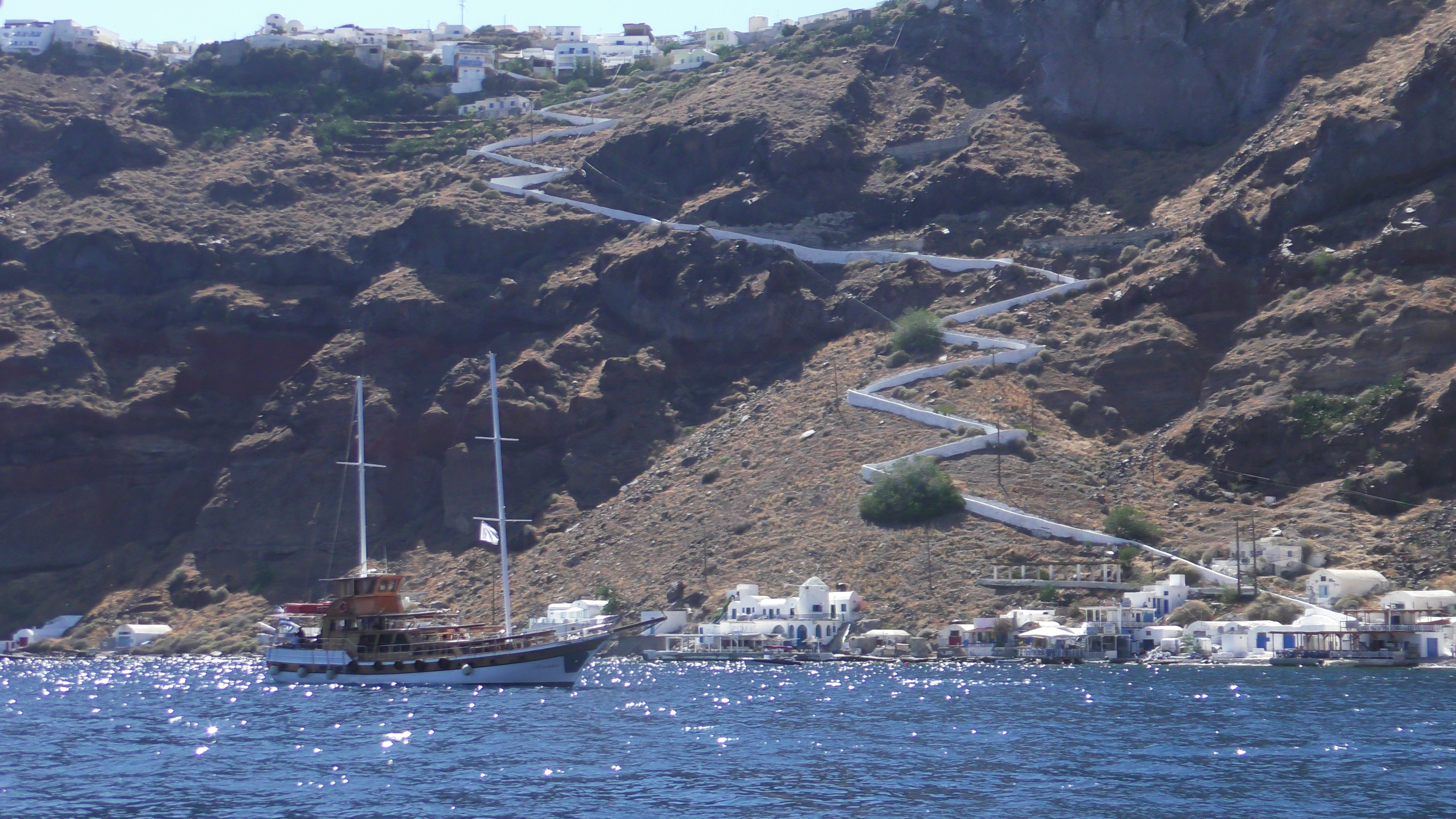 Nous sommes arrivés à Θηρασία avec plus de deux heures d’avance par rapport à l’horaire prévu. En conséquence, nous en avons profité pour faire une promenade à l’intérieur du cratère immergé, à bord de notre Zeph si brave et si coopératif.