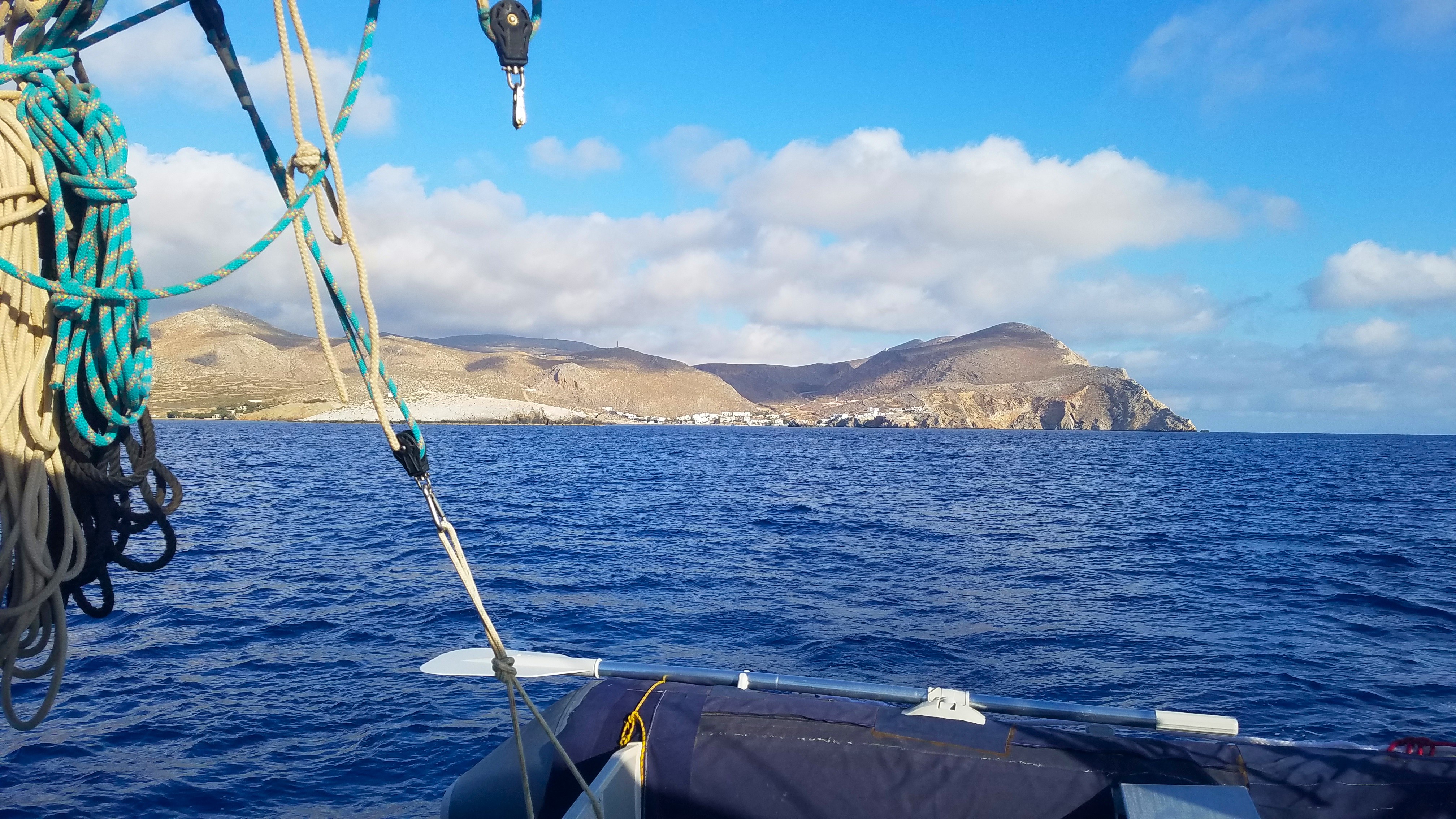 Nous avons quitté Φολέγανδρος (transcription : Folégandros), sans précipitation, mais aussi sans regret.
