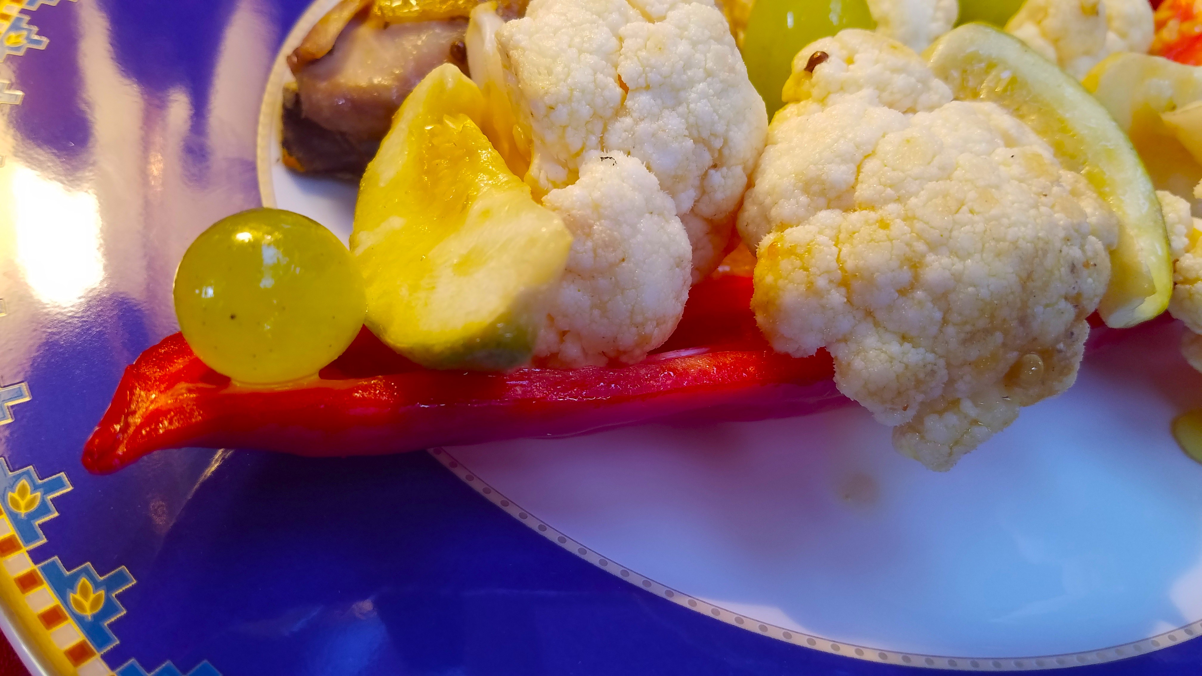 Il était impensable que les trésors du potager soient absents. Ont participé à la fête gustative, toujours sur le mode al dente, le chou-fleur, la courgette et le poivron :