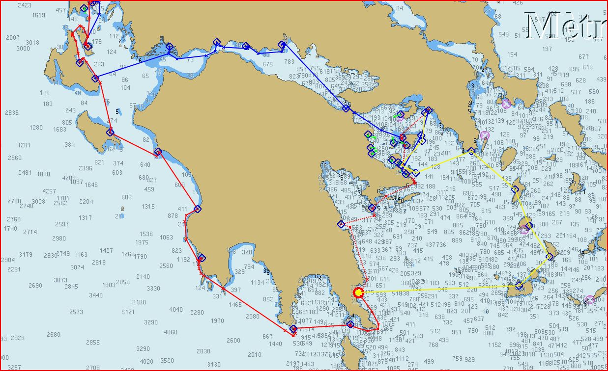 Bon. Maintenant que j'ai franchi les 3 doigts du Péloponnèse, et que j'ai un peu d'avance sur mon programme, plutôt que de longer la face Est du Pélops puis remonter sur SPETSAI puis HYDRA, je vais aller faire un petit tour dans les Cyclades. Pas loin. Avec une courte traversée de 70 miles, j'atteins MILOS (La Vénus, vous connaissez ?). De là, en de courts trajets, il y a SIFNOS, SERIFOS puis KITHNOS, avant de retraverser vers POROS pour remonter ensuite sur ATHENES. Normalement, en juin, il y a peu de Meltem... Même s'il peut y en avoir !