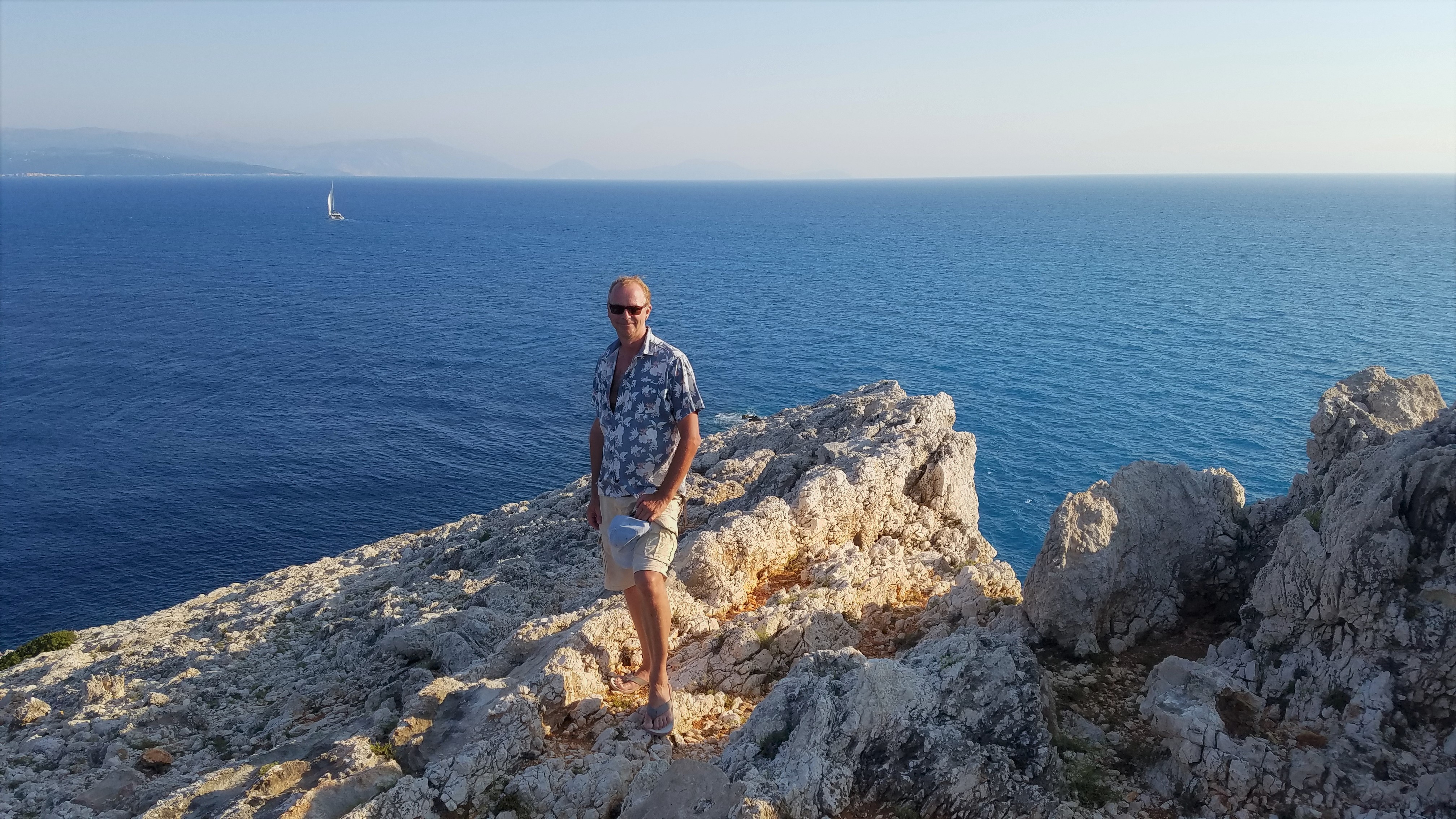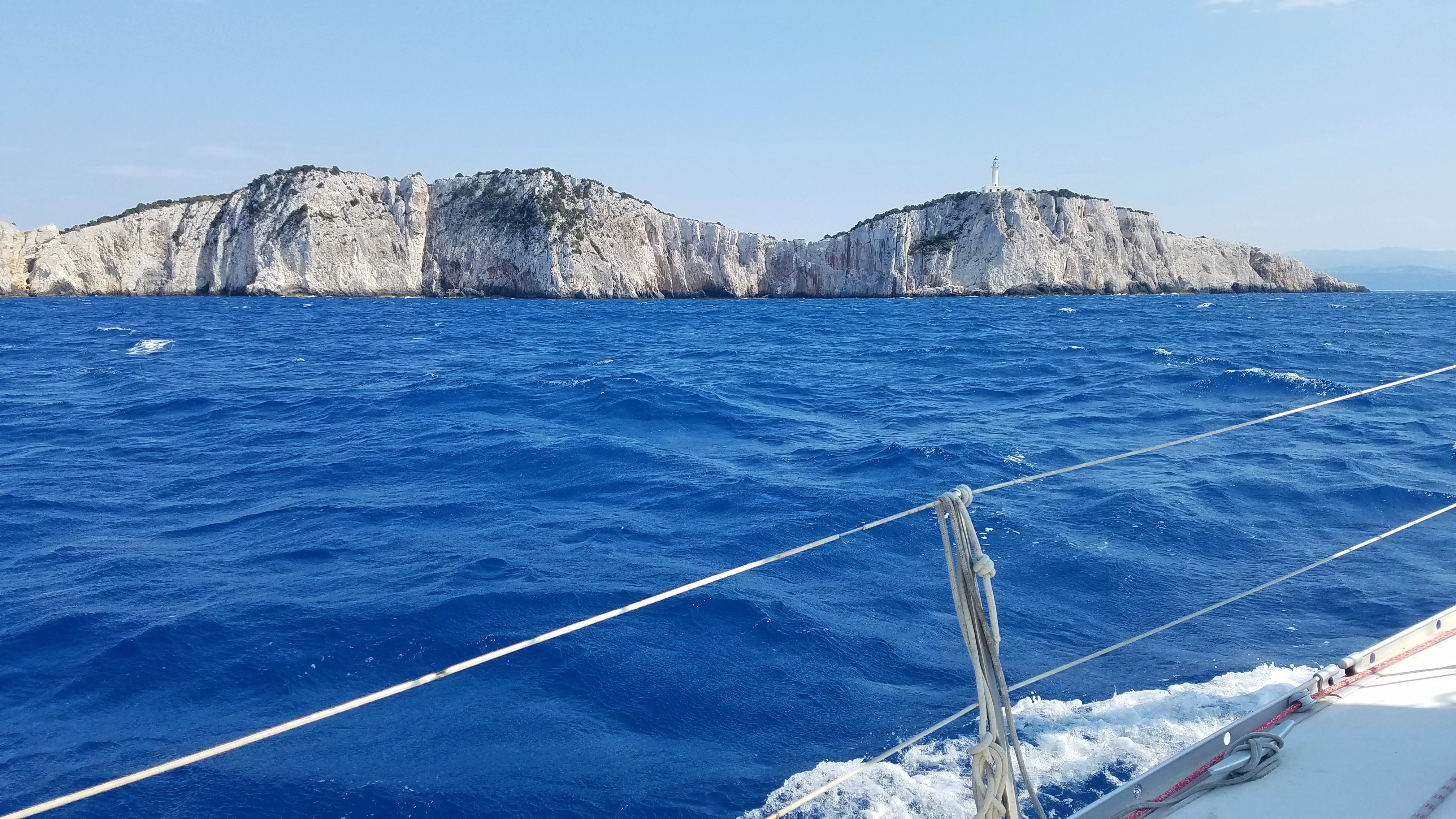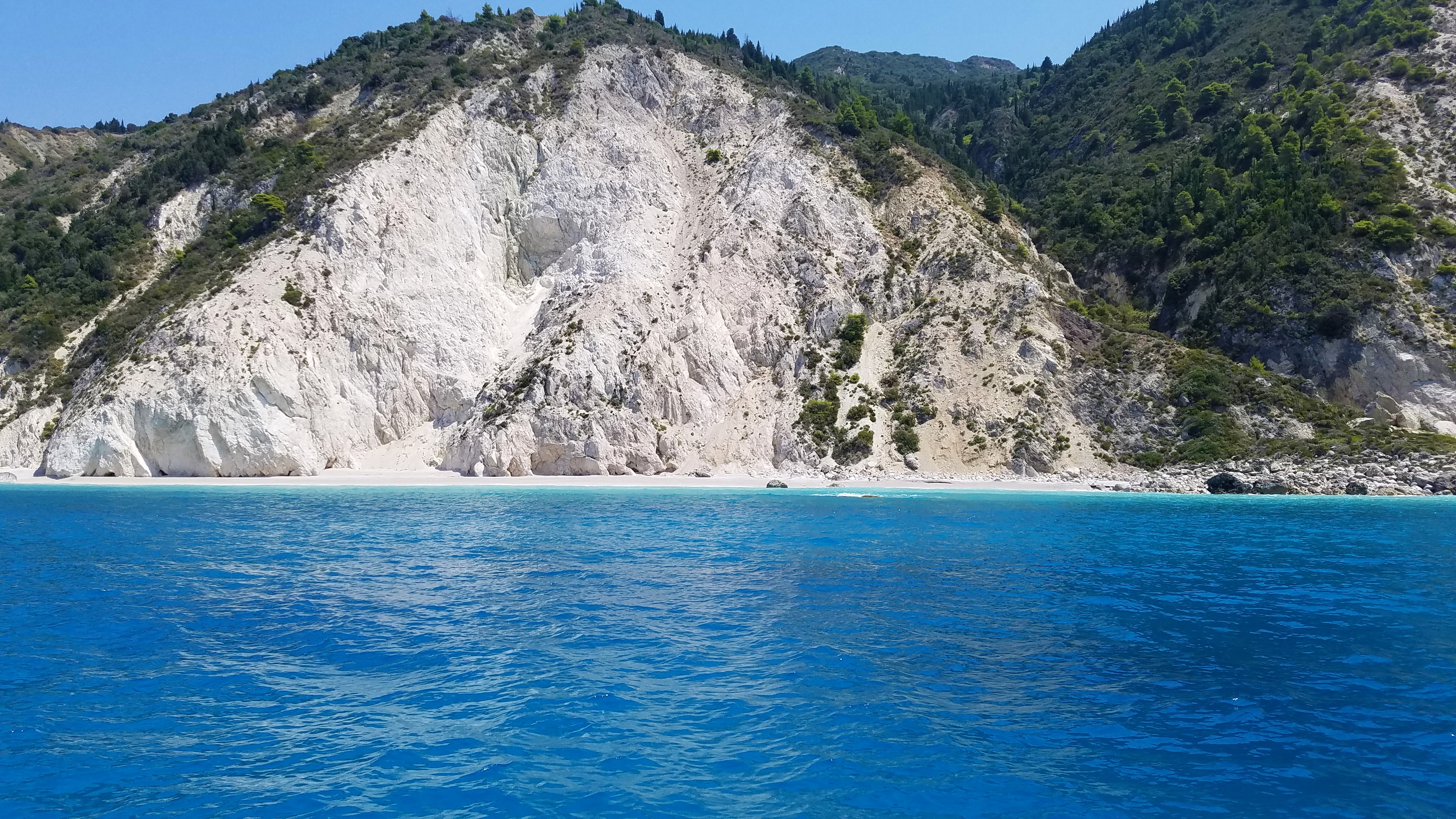 L’éblouissement s’est produit sur tout le versant occidental de l’île appelée Λευκάδα – ΛΕΥΚΑΔΑ (translittéré en : Leukada, ou Lefkada si l’on tient compte du fait que la lettre υ – Υ précède une consonne sourde qui est le κ – Κ). Quelles que soient la graphie et la prononciation utilisées pour la translittération, les fans de l’étymologie n’ont aucun mal à faire le rapprochement avec le mot français « leucocyte », qui signifie « globule blanc ».