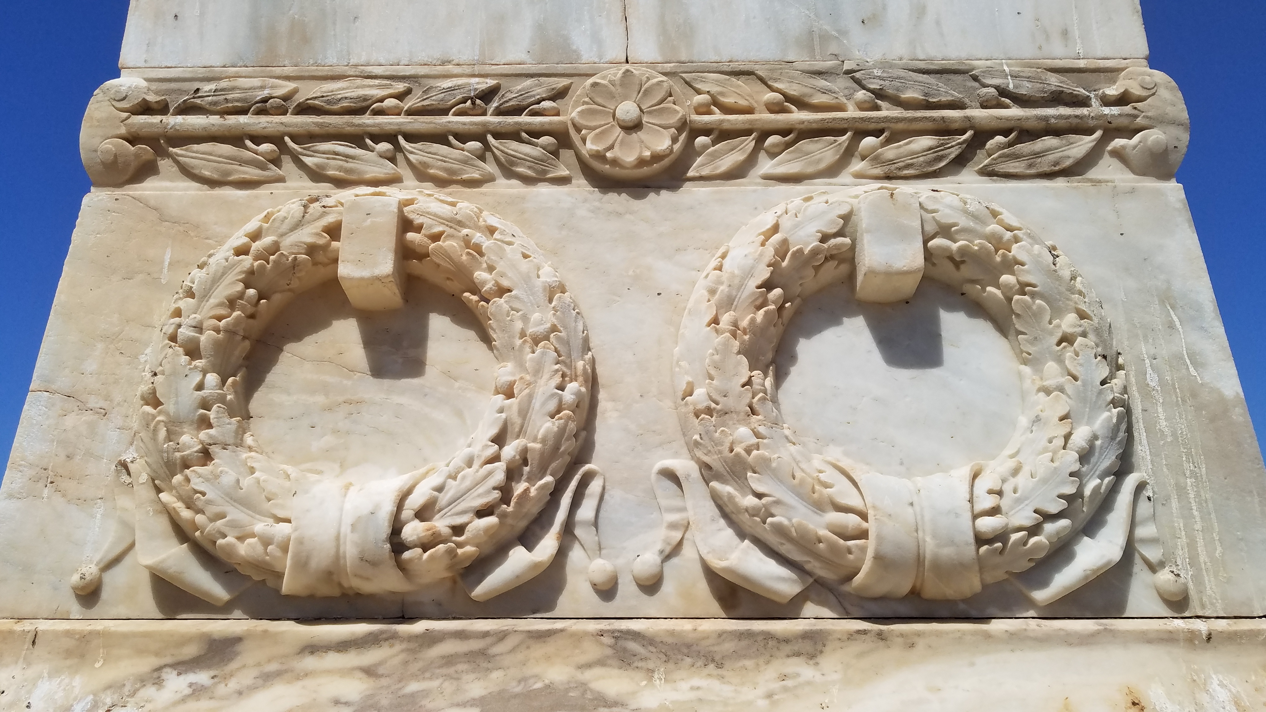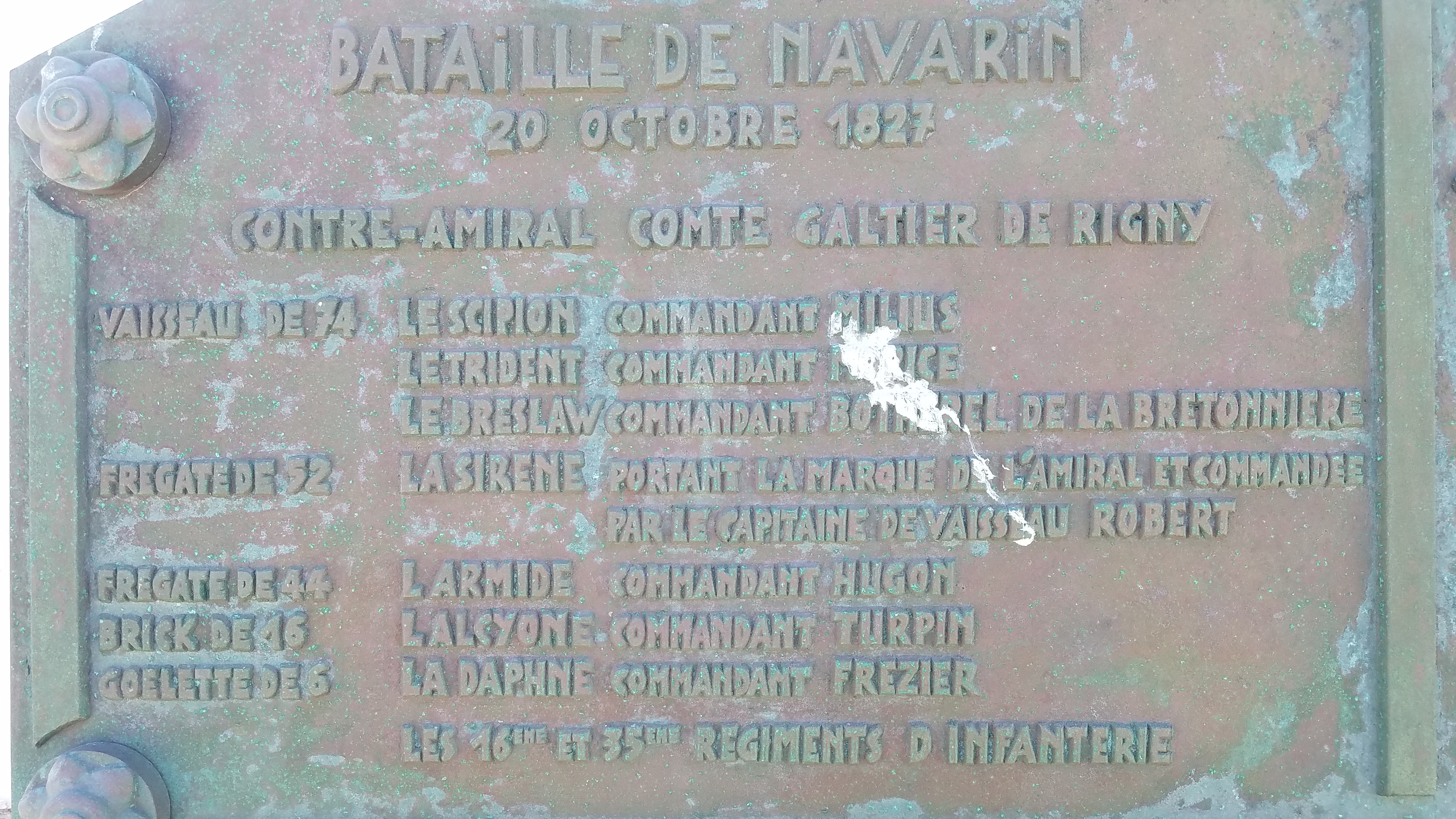 Une palme de bronze, apposée à l'angle Nord-Ouest, au pied de l'obélisque, évoquait la gloire d'une bataille navale qui a fait sombrer définitivement les ambitions de l'ottoman.