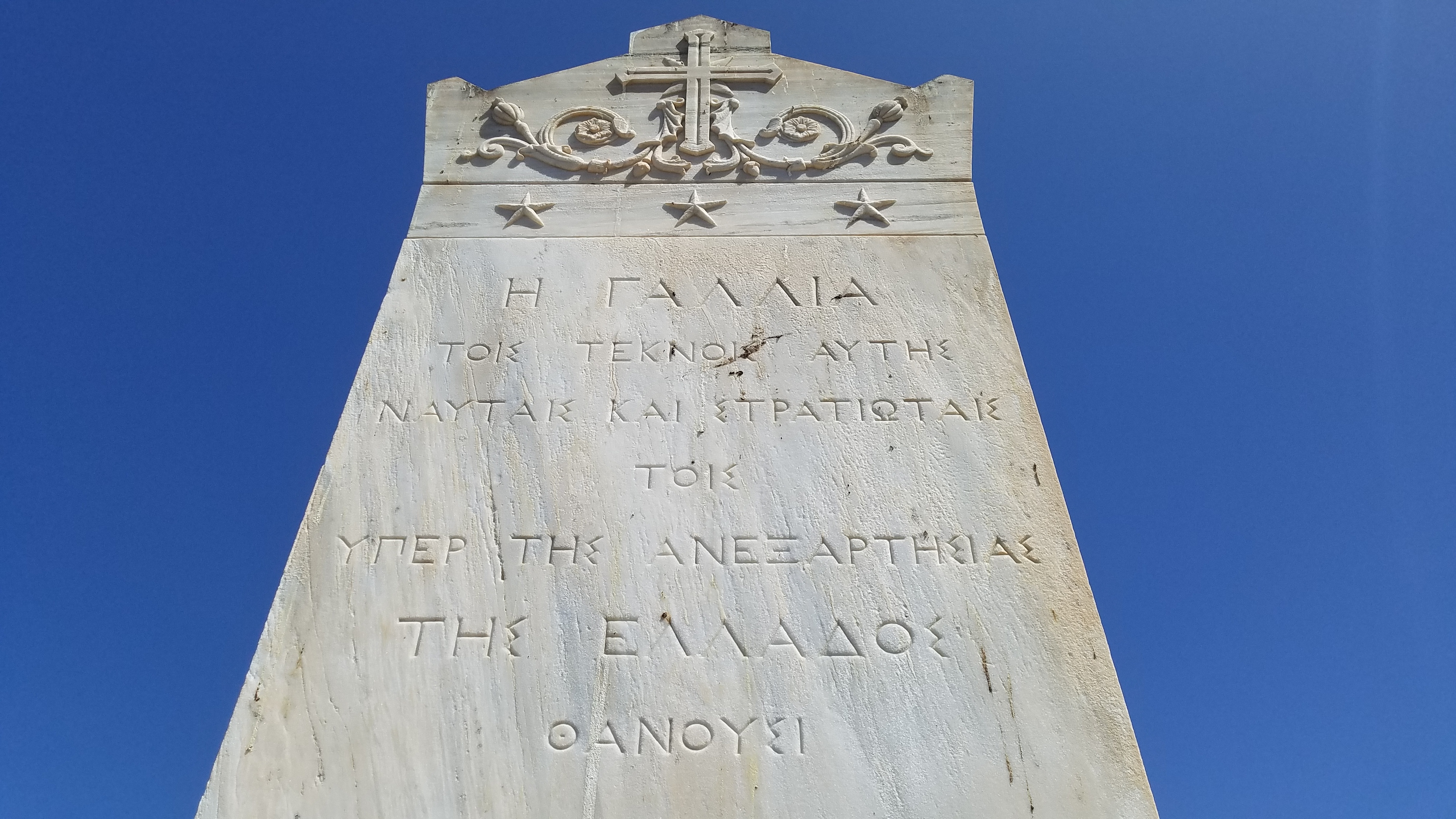 Le spectacle émouvant de la gémellité des deux couronnes est offert par l'obélisque que la Grèce a érigé pour montrer qu'elle n'est pas indifférente à la participation française, qui a grandement contribué à la victoire.
