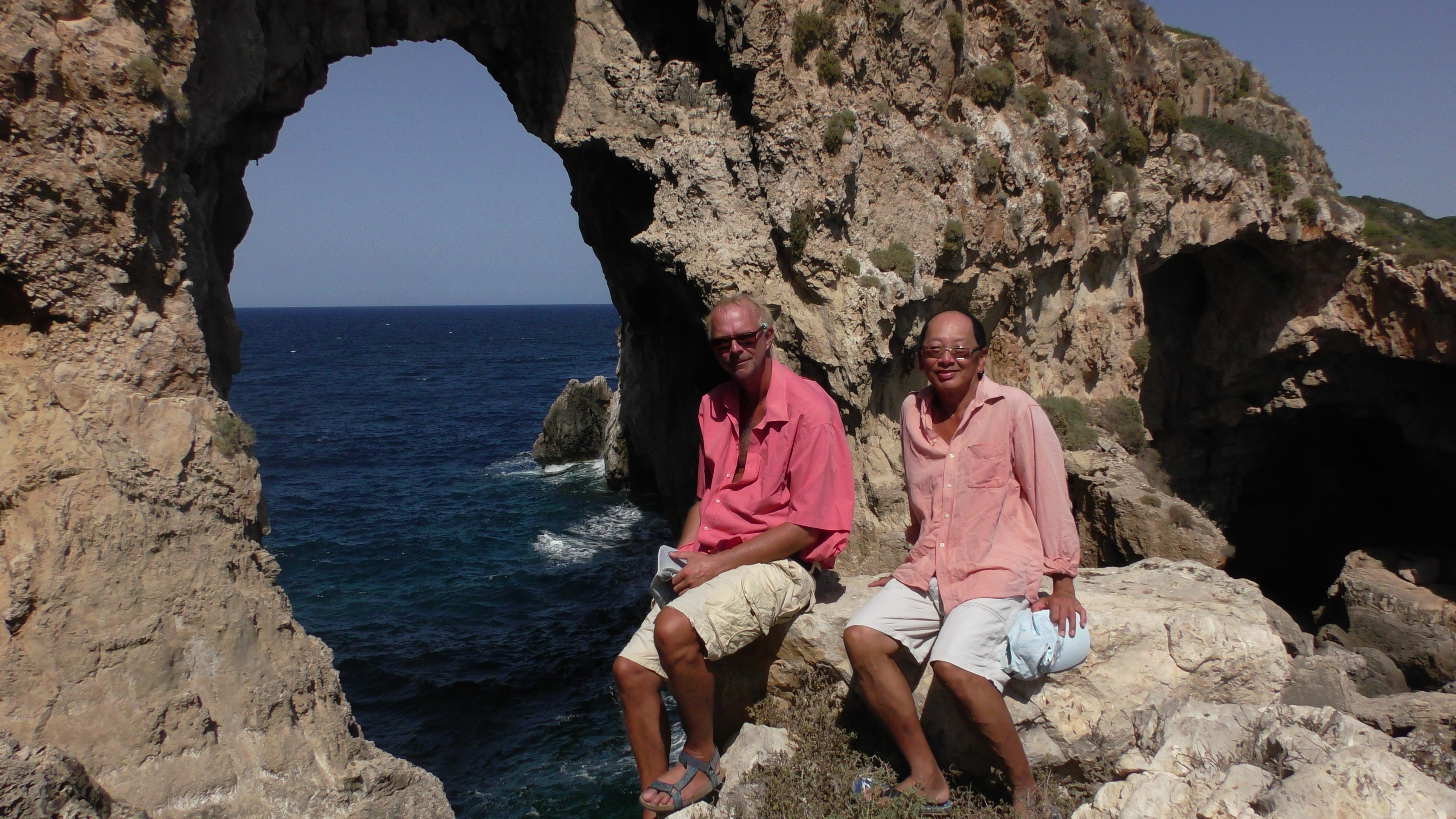 L'itinéraire qu'elles proposent bifurque sur la droite par rapport au tracé de l'escalier triomphant. Laissons-nous tenter et prenons la déviation. Après quelques minutes de marche à flanc de colline, une merveille géologique clôt la route : une immense arche enserre l'azur du ciel et de la mer.