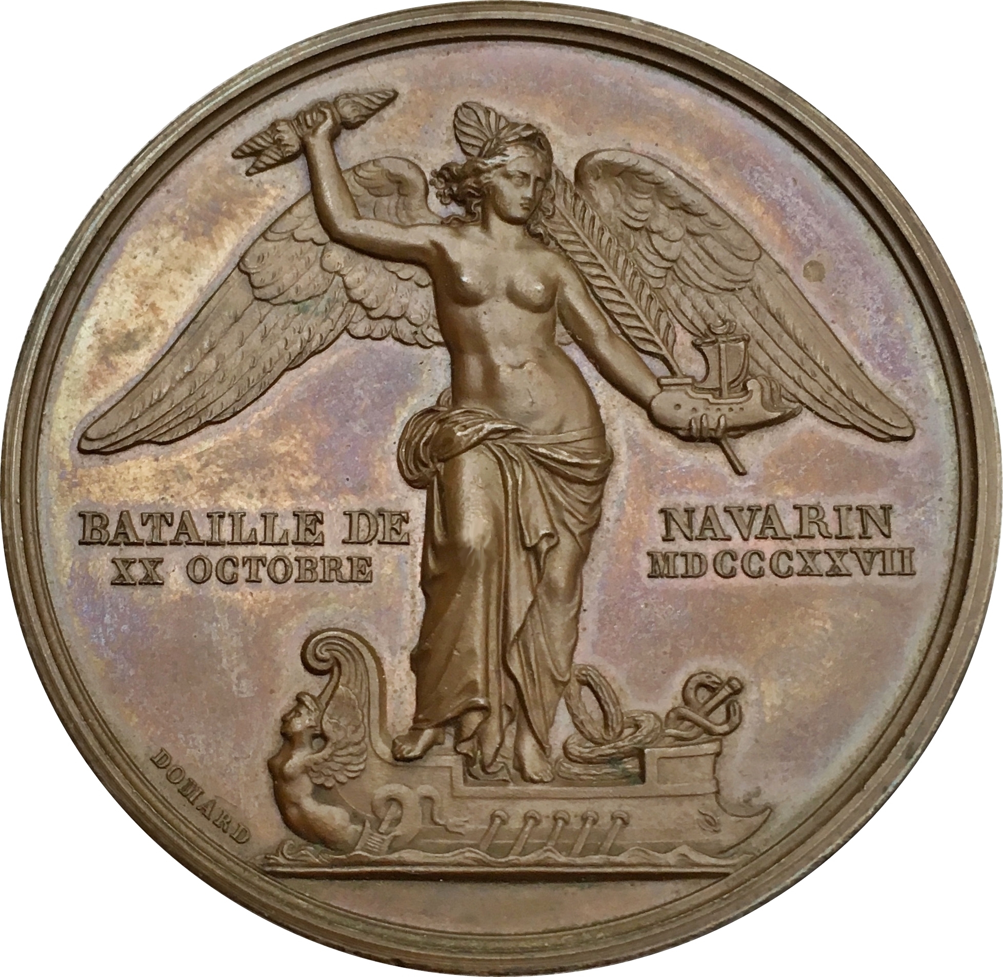 L'avers de cette médaille montre un portrait du contre-amiral, promu vice-amiral après la victoire.
