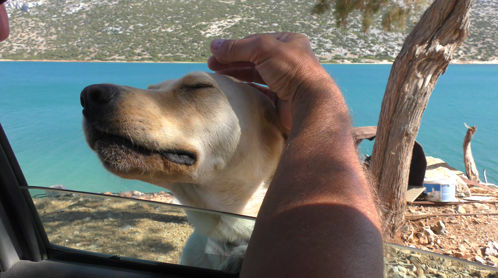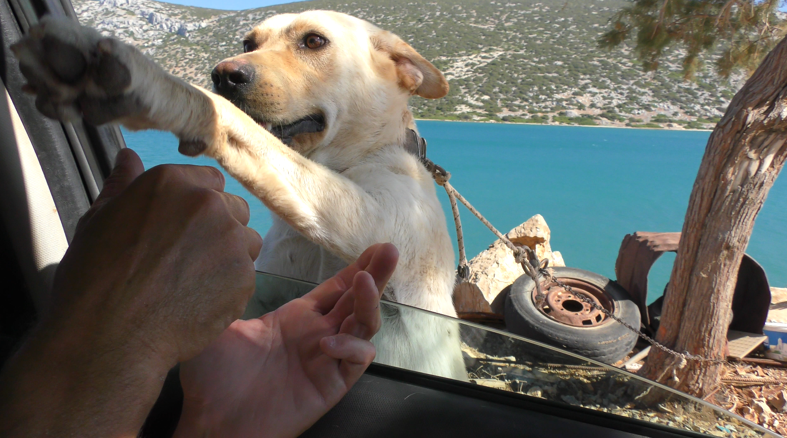 Pressentant l'au revoir, la sentinelle a incurvé son dos, penché sa tête du côté de la main caressante et laissé l'espoir guider ses pattes sur la vitre de la portière.