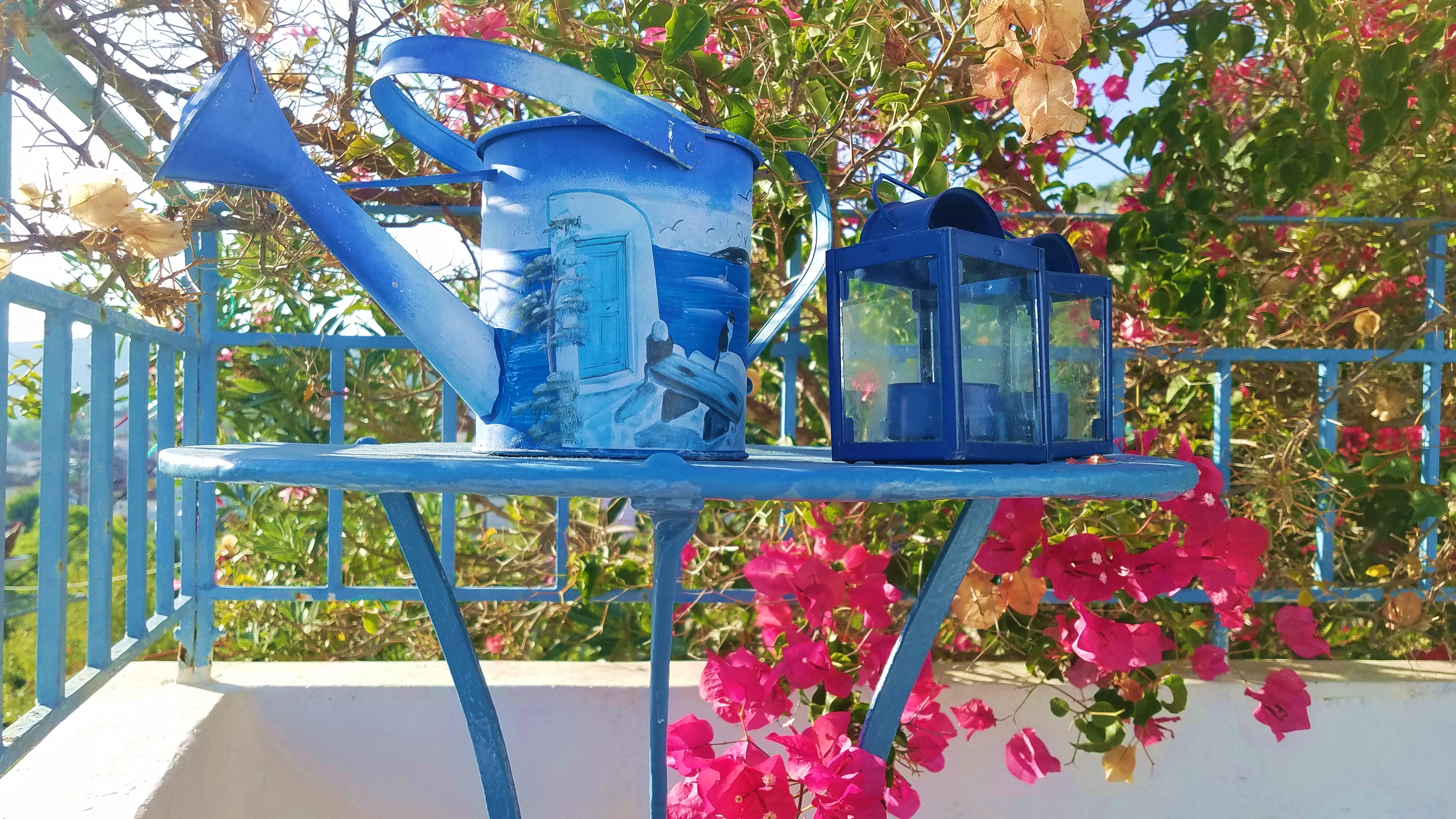 Mais dans cette partie du balcon, ce qui frappait l’œil, c’était l’hégémonie de la teinte bleue. Dans ce microcosme, tout était bleu. Les barreaux de la balustrade, comme de l’autre côté. La table, intégralement. L’arrosoir pour l’eau douce et les deux lanternes.