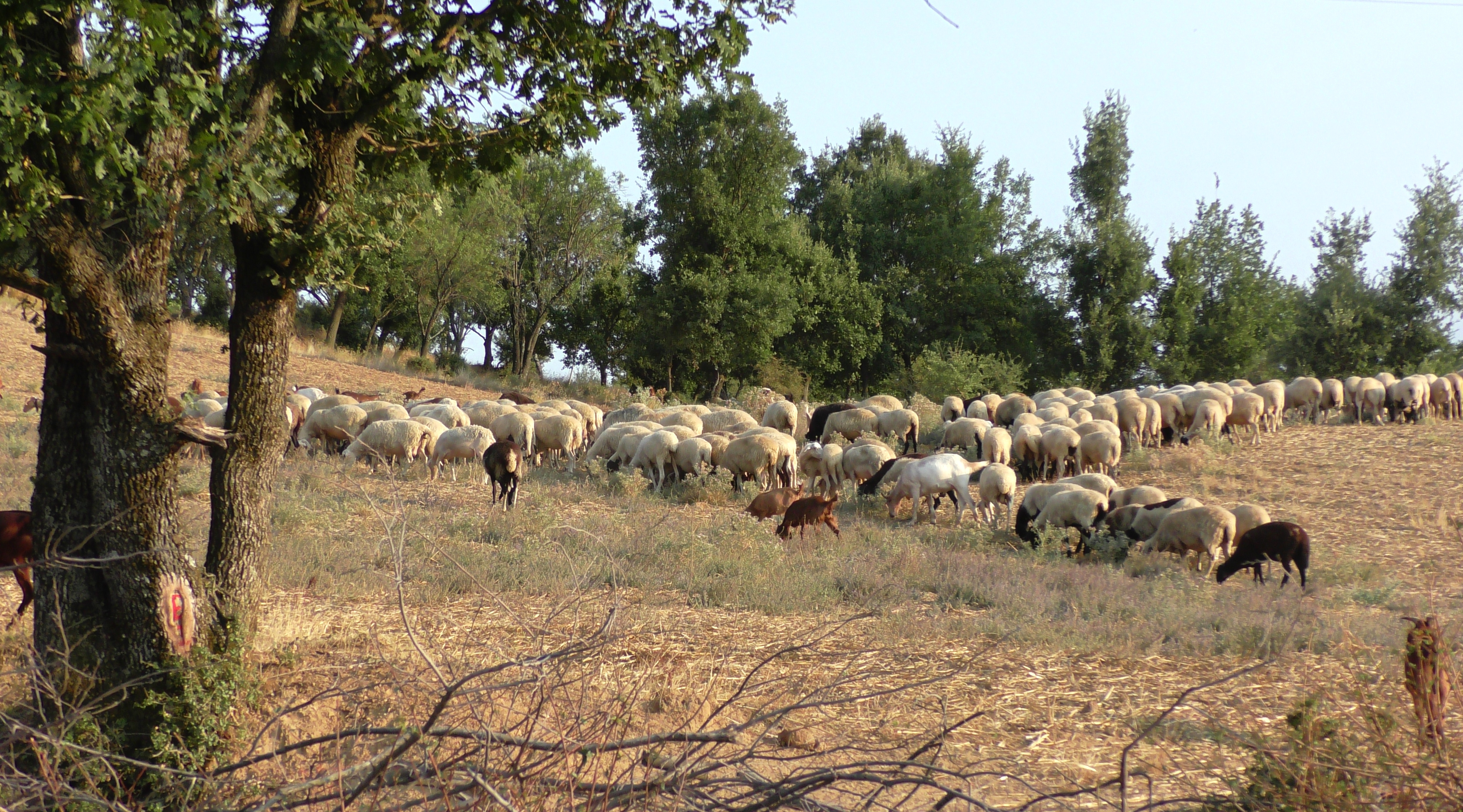 Un troupeau de chèvres et moutons mélangés. Le son des cloches, le sifflement du berger, les couleurs presque automnales, la mer est loin ! Et ça fait du bien, parfois !