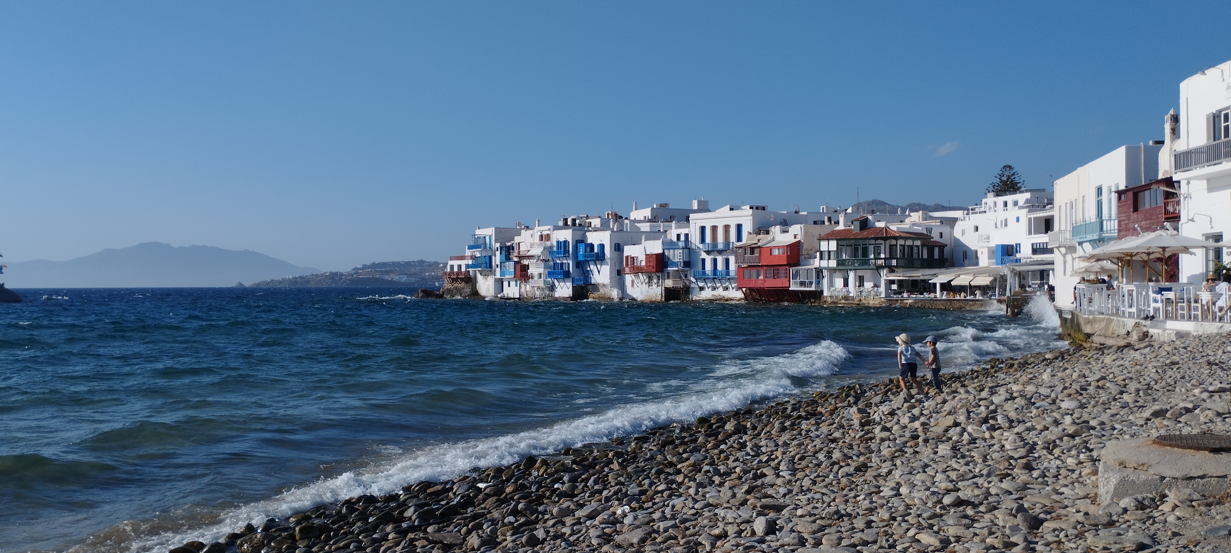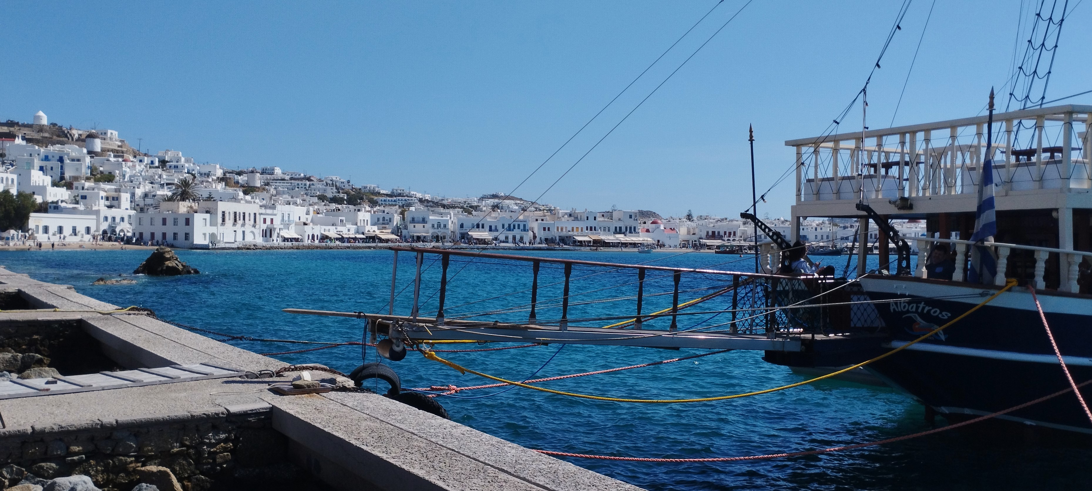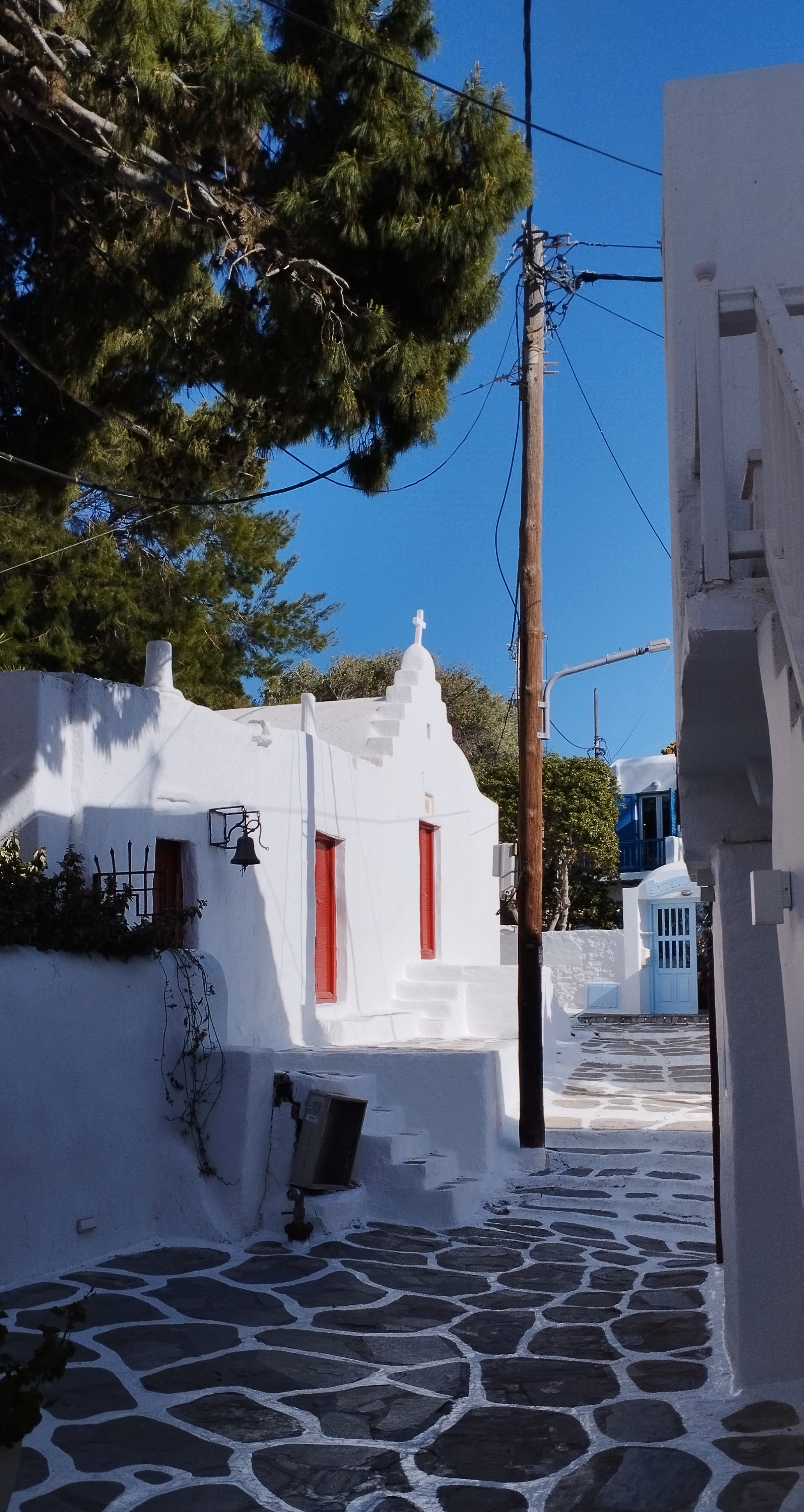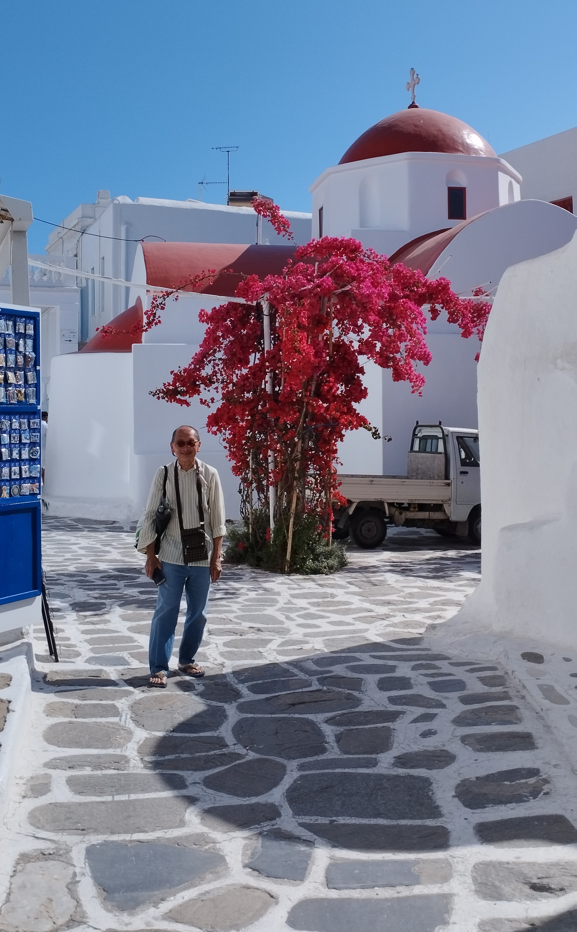 C'est avec un étonnement mêlé d'une certaine satisfaction qu'on redécouvre le village tel il était y'a 30 ans ! Alors bien sûr, il y a plus de boutiques de luxe, plus de bars à cocktail (36 € le cocktail...) et surtout, beaucoup beaucoup plus de monde... Et encore davantage quand, dans la baie, on compte près de 3 navires de croisière qui augmentent le nombre des visiteurs à près de 6000 têtes par bateau... Autant dire que le village ressemble plus à un grand centre commercial en période de soldes qu'un paisible petit village cycladique endormi au soleil égéen !!!