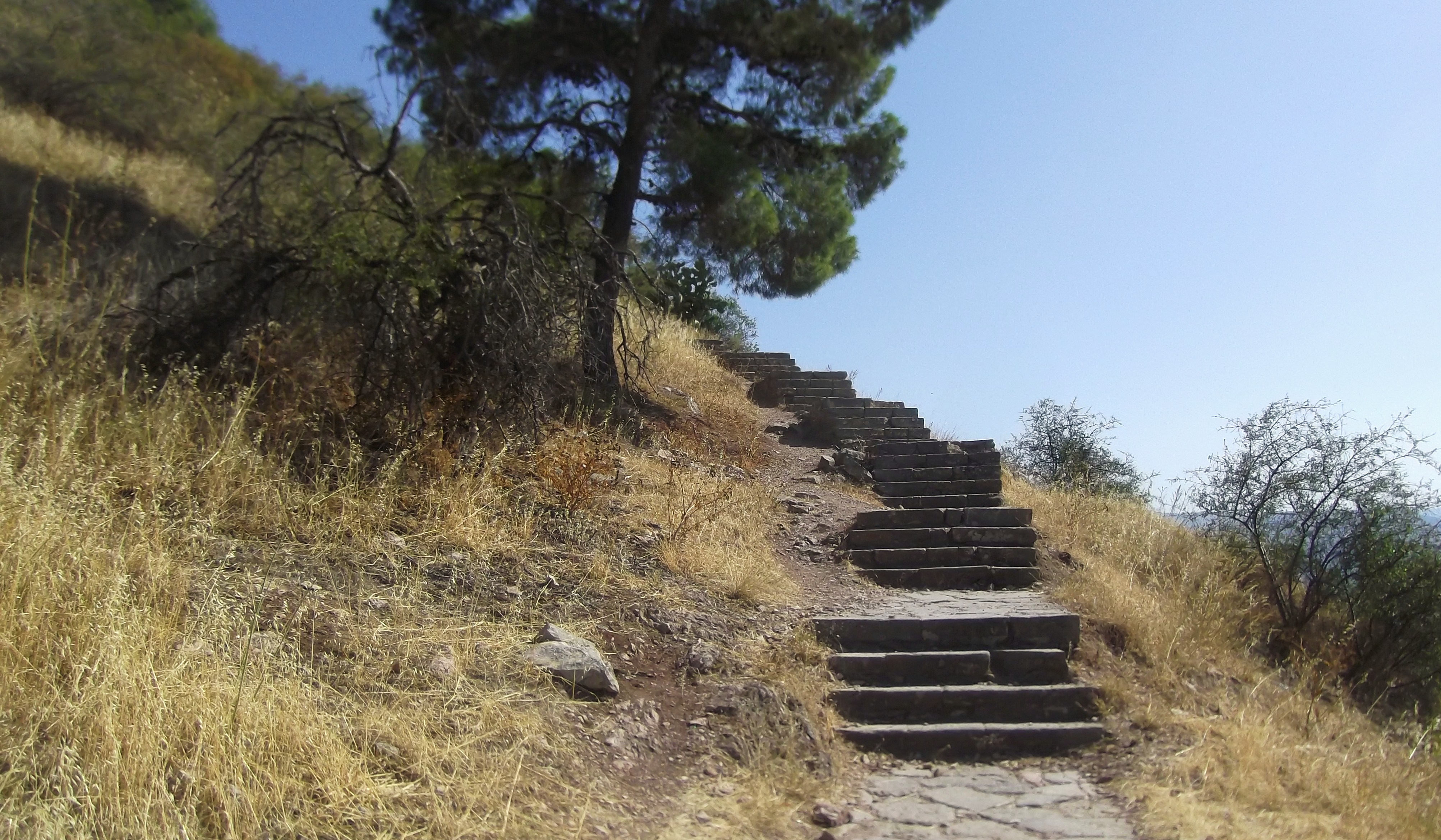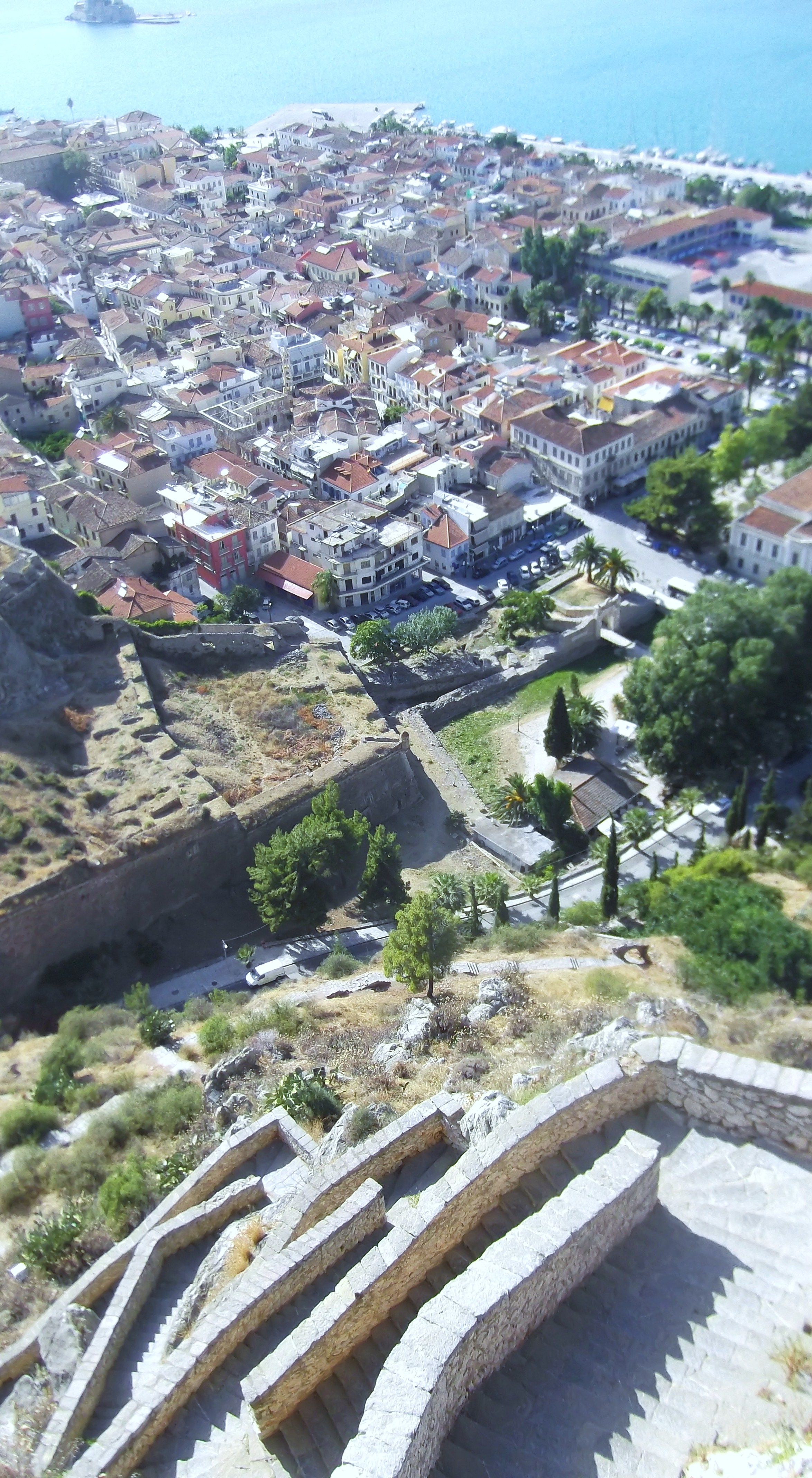 L'escalier de la cité antique. 8 € l'entrée. Alors je suis monté et... redescendu ! Près de 1000 marches quand même. Z'aurait pu me l'offrir l'entrée... J'étais le seul à monter ces marches par ce soleil !... 45°. 35 ° dans le bateau !... Ah, la mer Baltique et sa petite froidure !