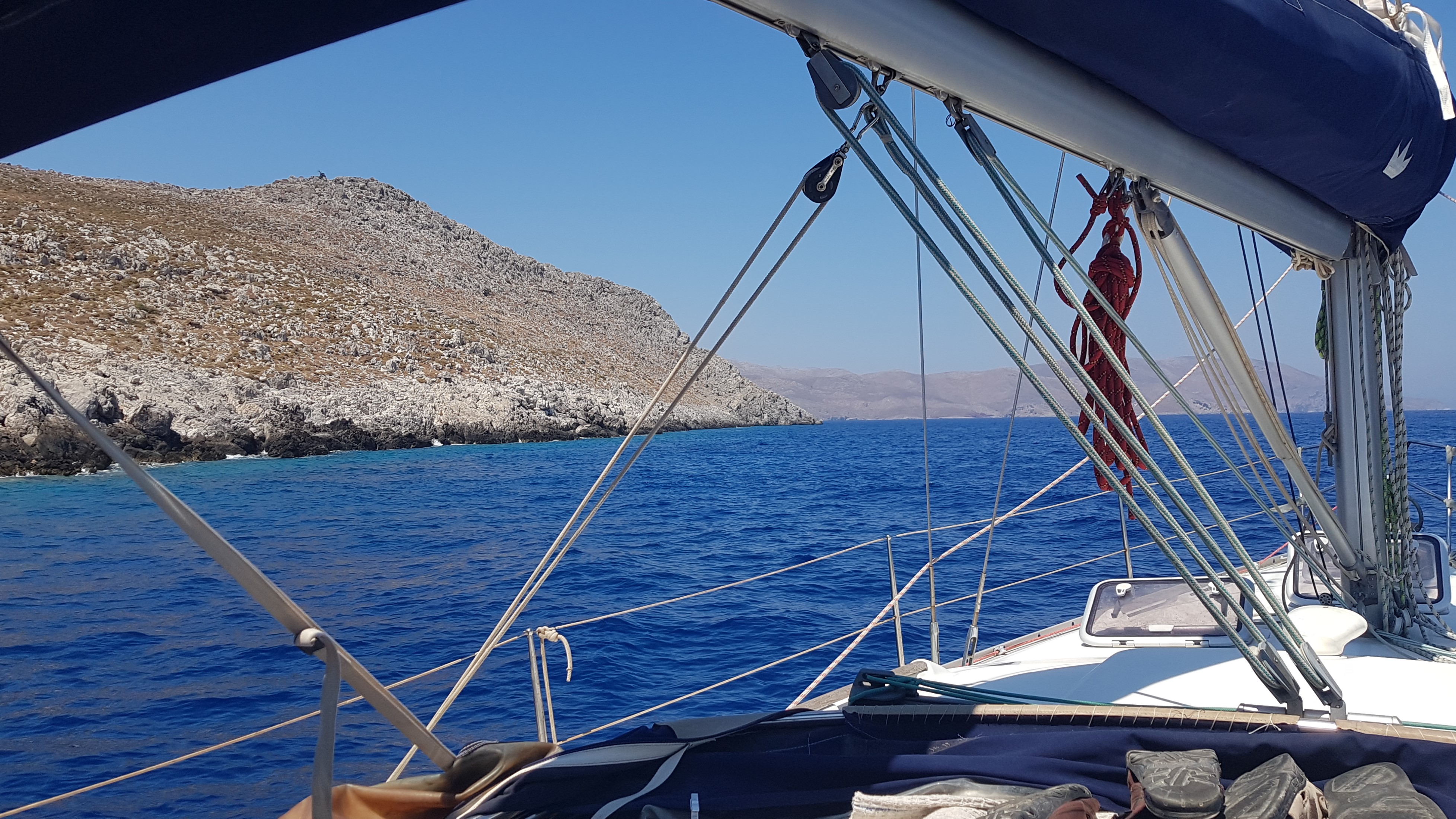 Les îles de ce coin de GRECE sont toutes aussi arides les unes que les autres, à tel point que je ne suis pas en mesure de vous dire si, en ce moment même, on longe les côtes de CHALKI ou celles de TILOS !!!