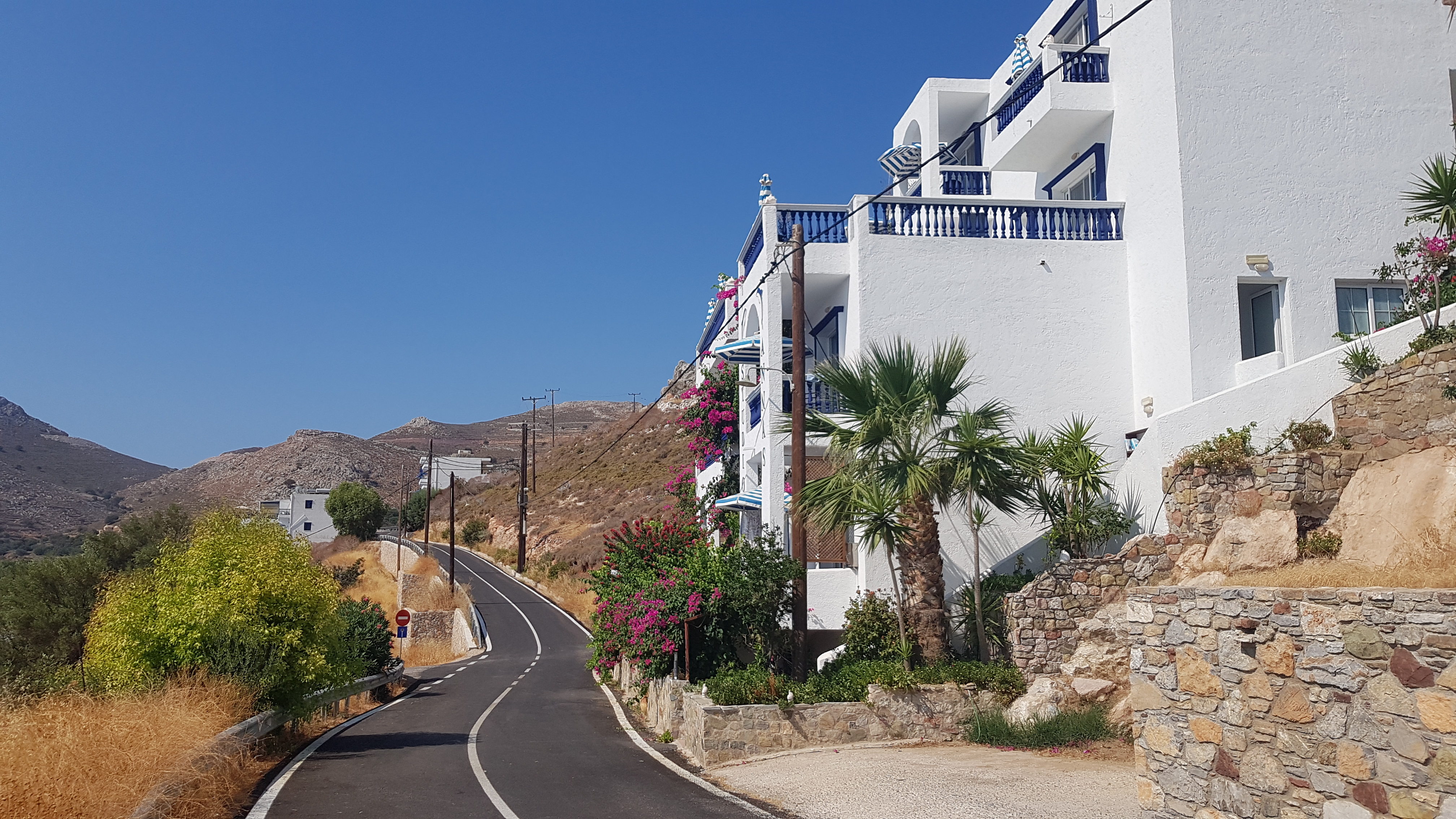 Au dessus du port, quelques bâtisses abondamment fleuries, comme pour donner un peu de couleurs à cet environnement presque monotone !