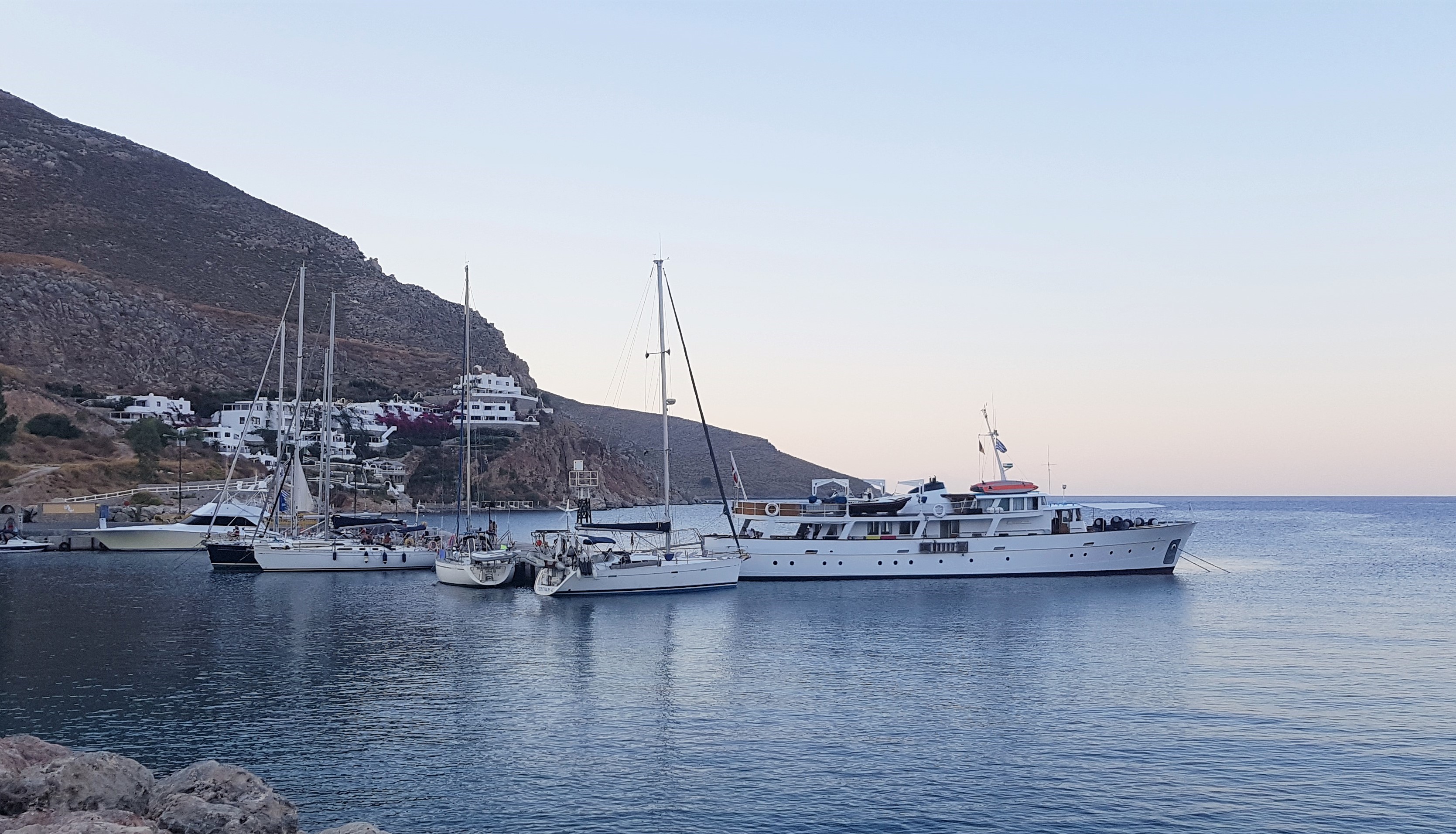 On sera le seul bateau à rester aussi longtemps à TILOS ! Chaque matin, le port se vide quasiment en totalité. Les bateaux qui viennent ici ne restent quasi jamais plus de deux jours. Et pour ceux de location, leur escale ne dure qu'une nuit.
