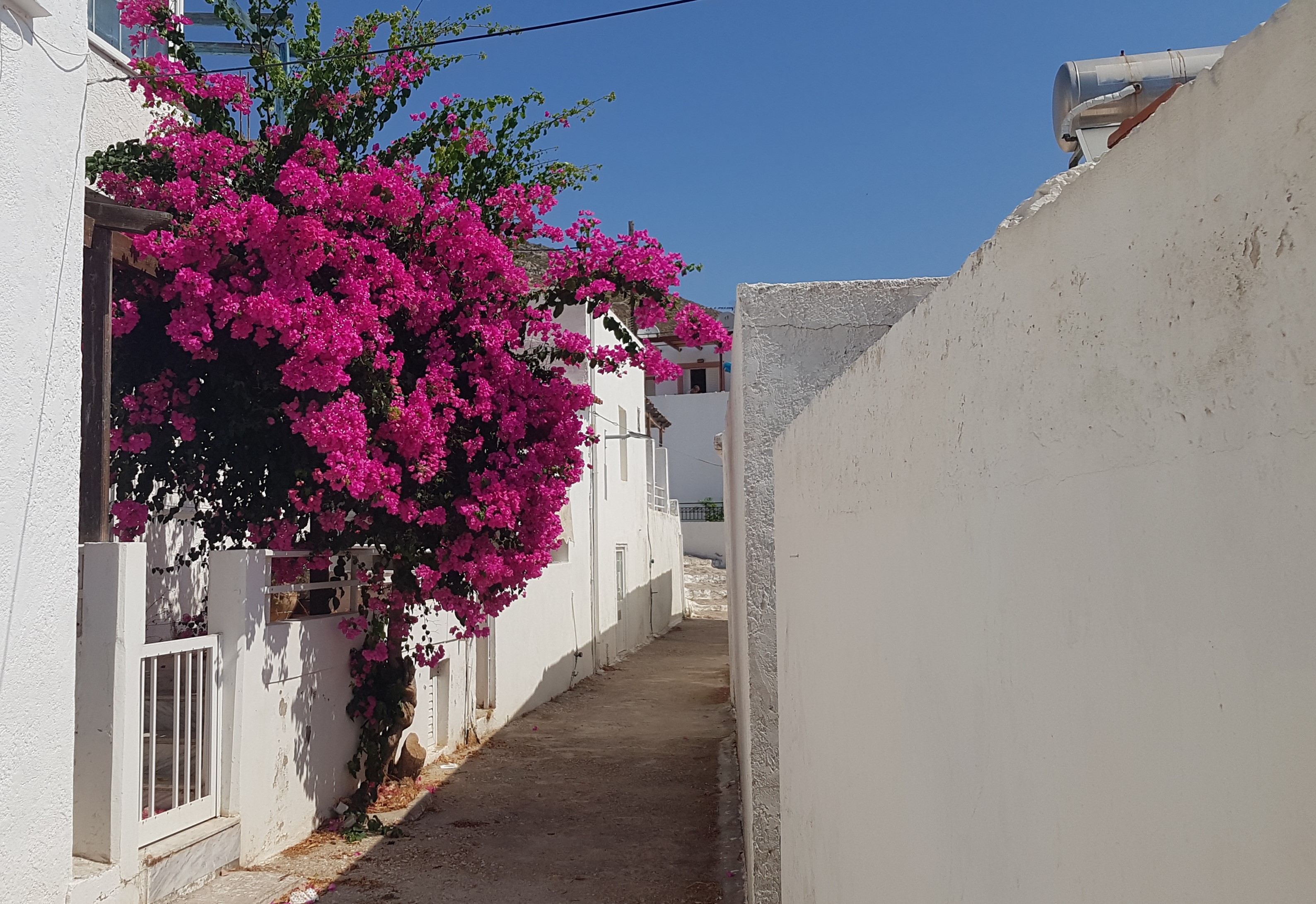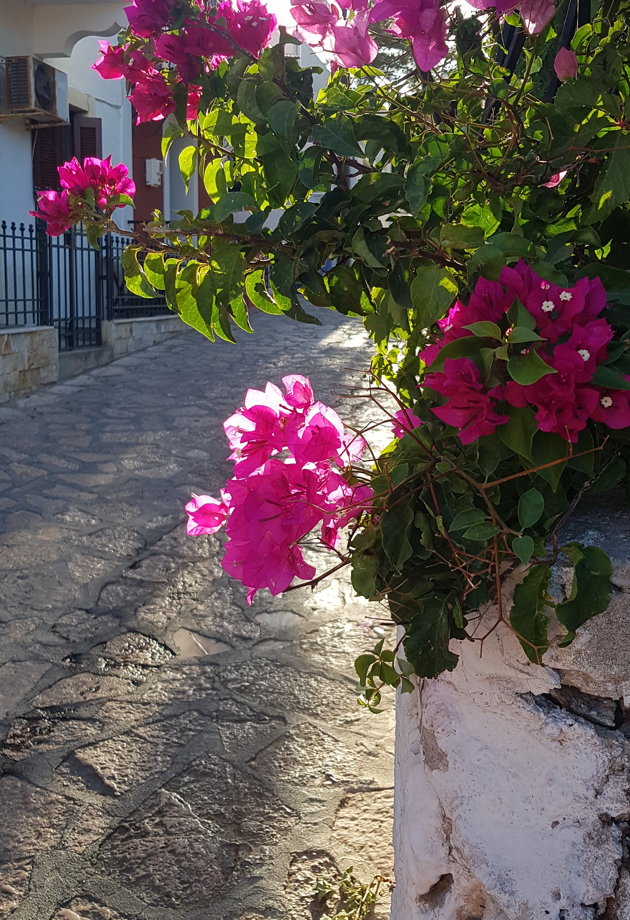 Bougainvillier en contre jour à CHALKI, comme dernière image d'une île qu'on a décidément beaucoup appréciée.