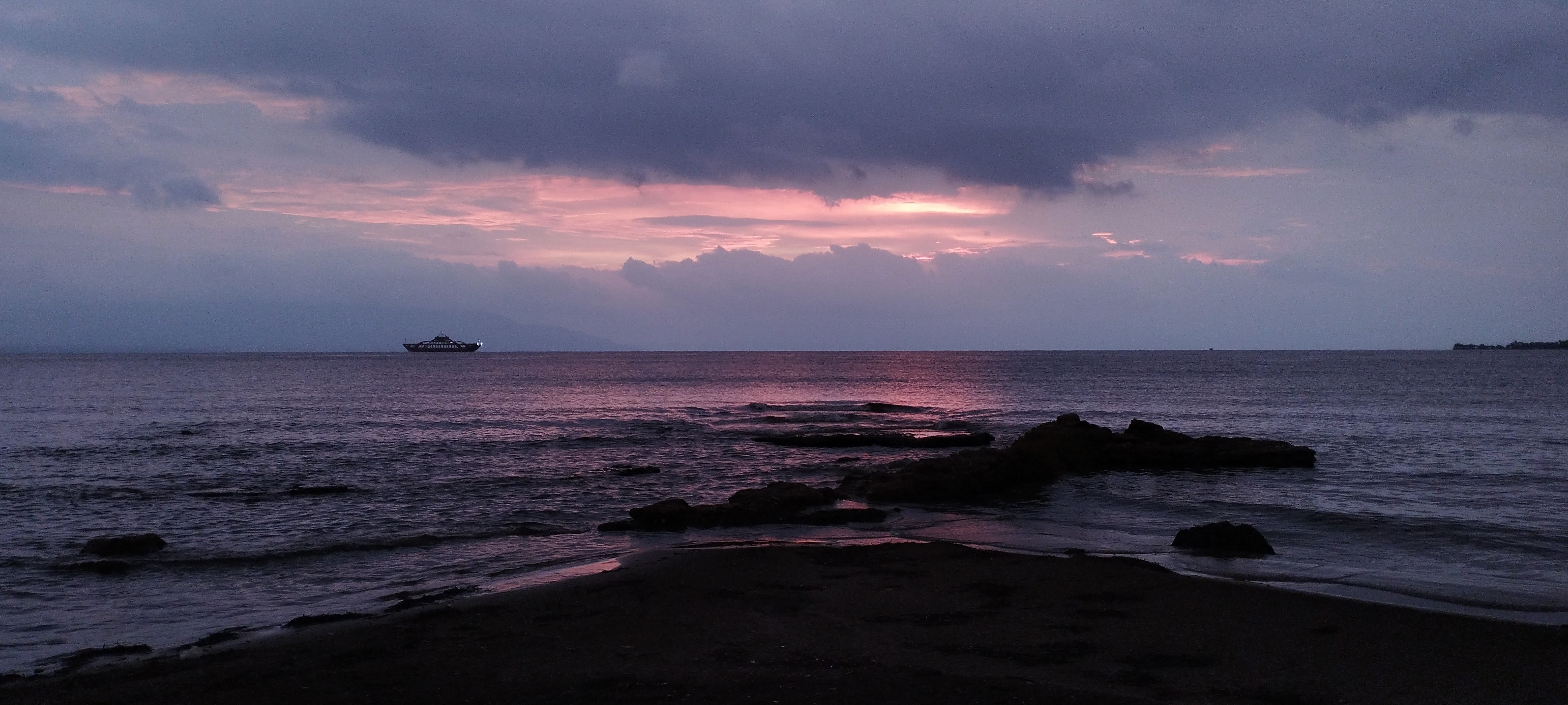 J'viens souvent dans ce petit coin de nature... C'est reposant, la vue est belle, et, au fil des jours, avec les variations de lumière, le paysage change du tout au tout. Et puis j'aime beaucoup cette haute montagne que l'on devine sur l'île d'EUBEE : comme une sorte de FUJIYAMA. Dans les derniers jours d'avril, c'était la seule montagne encore encapuchonnée de neige.