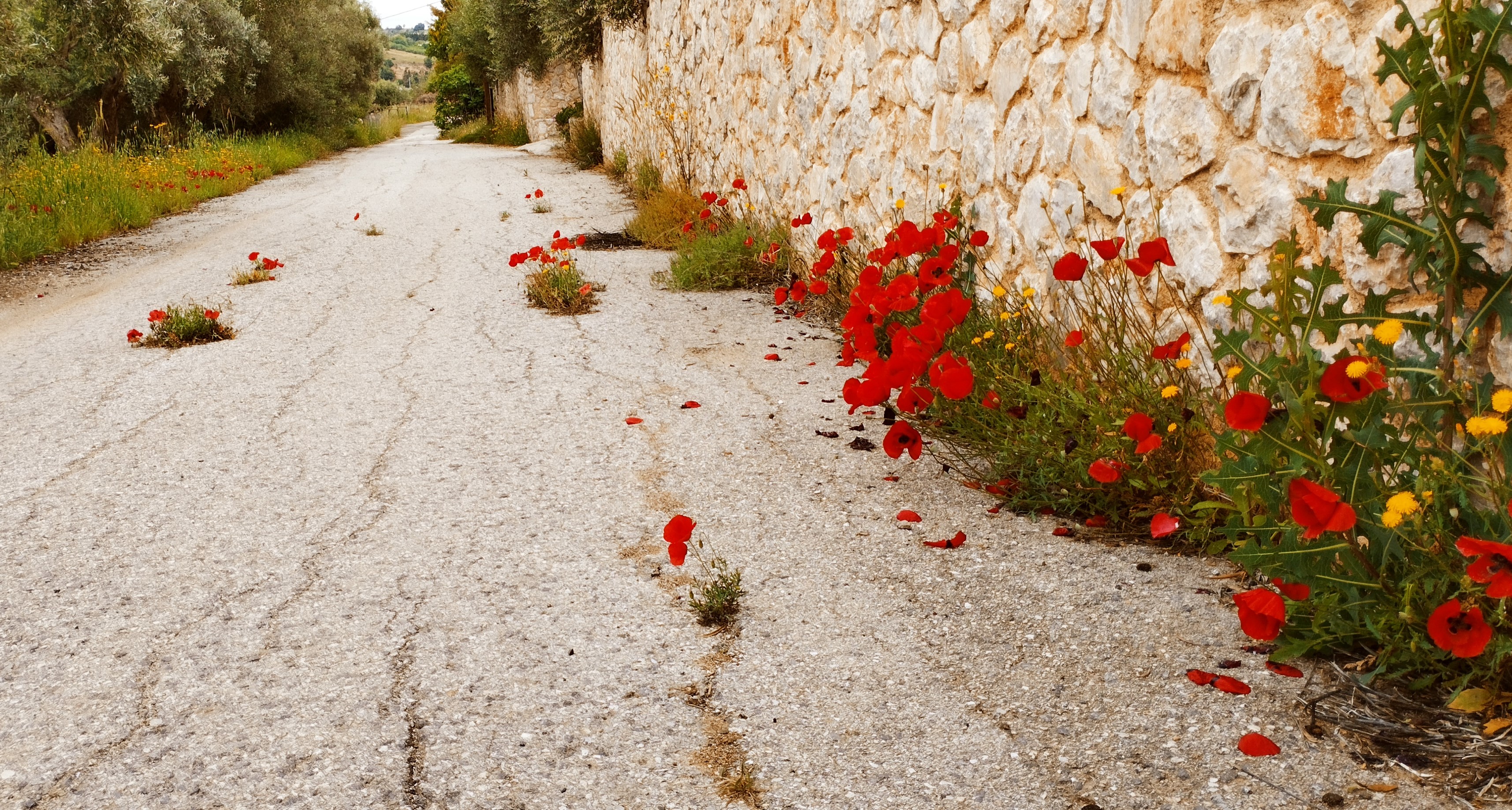 Les coquelicots, qui patiemment, s'ouvrent des chemins de pousse au travers des fissures du goudron !