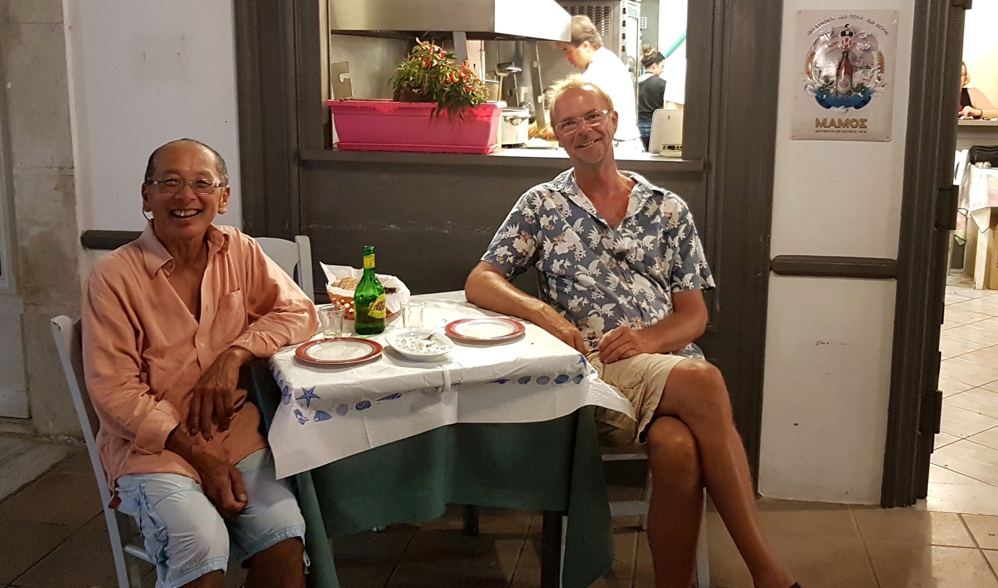 Quand à la ville elle-même, elle est pleine de surprises ! Du petit marché en plein centre, jusqu'à la boutique du Chinois qui nous a vendu des superbes tongs en cuir imitation skaï à 3 €, et qui ont tenu royalement une dizaine d'heures !!! Et puis aussi, dans une ruelle toute en escalier, cette incroyable brocante, vide-grenier, avec des objets autant improbables que rares, voire très rares ! Et puis ces marchands de gaz qui nous ont vendu une recharge de 3 KG pour 7,5 € alors que ça coûte, en France, plus du triple ! Bon. Je n'ai pas testé la recharge... Si ça s'trouve, elle ne contient que de l'eau !!! Bref. On se sent bien à KIPARISSIA !