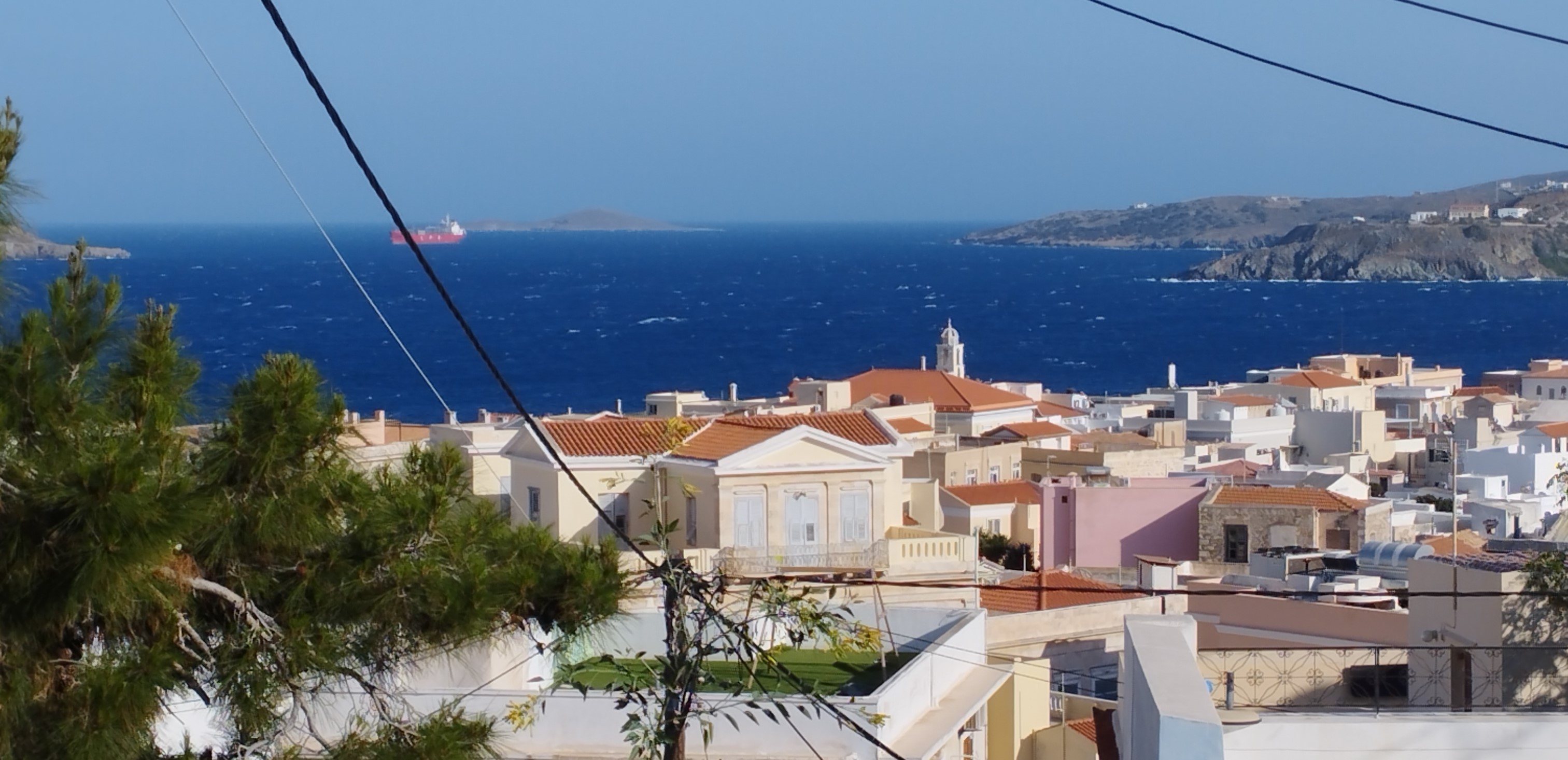 Alors ici, y'a pas d'électricité (mais on en a à foison avec nos panneaux solaires et notre éolienne), y'a pas d'eau (mais on en trouve quand même un peu quand les robinets à carte buggent, ou sinon, faut marcher un peu autour du port et on finit par trouver !), on est loin de tout (mais on a de bonnes tongs...), les quais sont aspergés de l'eau de mer (on s'en fout, on sait nager !), le chantier voisin nous envoie tout un tas de saloperies grasses (on s'en fout aussi... A la prochaine escale, tu laves tout et le bateau est encore plus propre qu'avant d'être arrivé à SYROS), mais y'a l'essentiel : une bonne protection, le soleil du matin jusqu'au soir et un amarrage along side pour éviter les salades d'ancres. Alors... C'est-y pas le rêve, ça ?